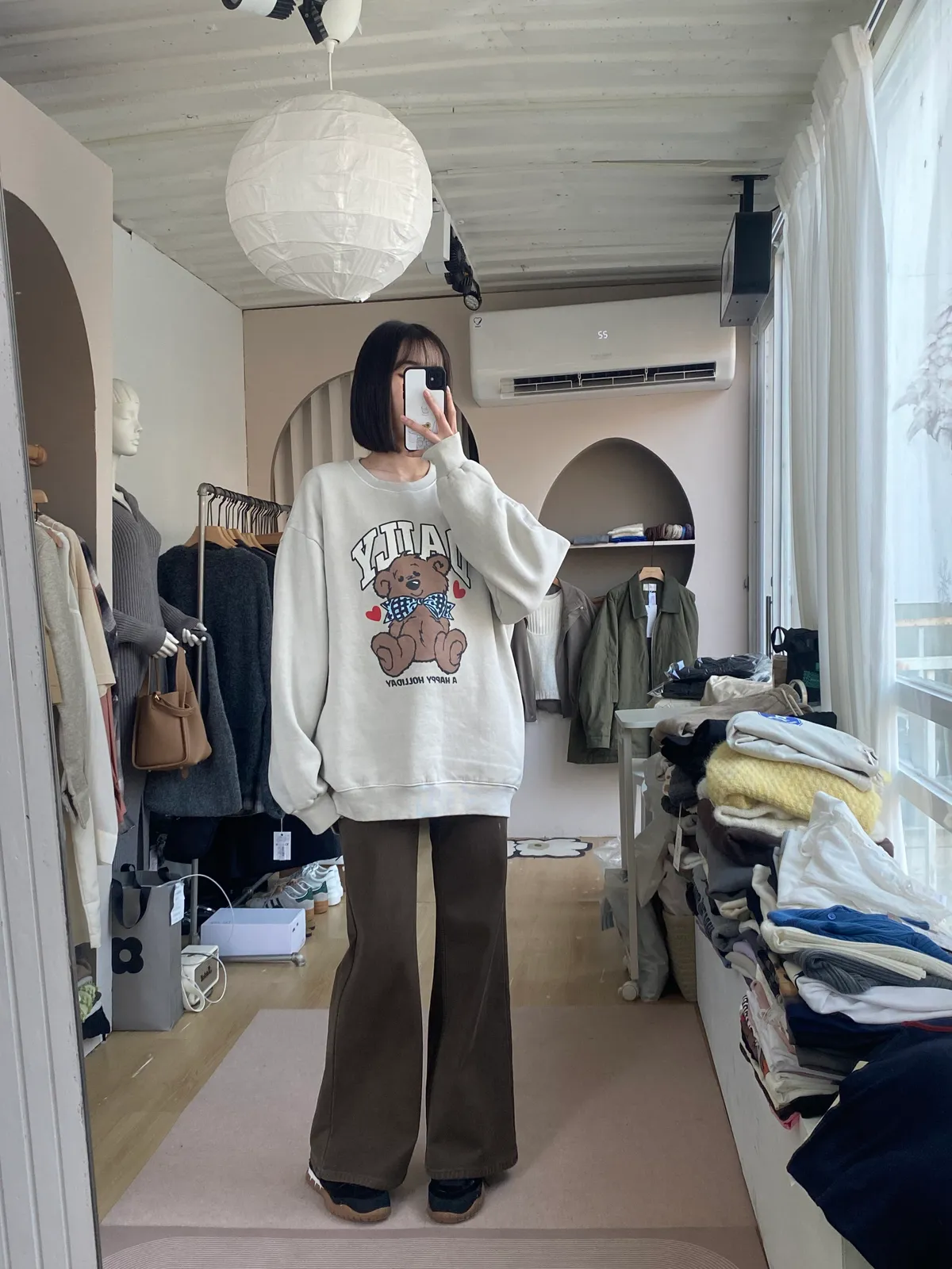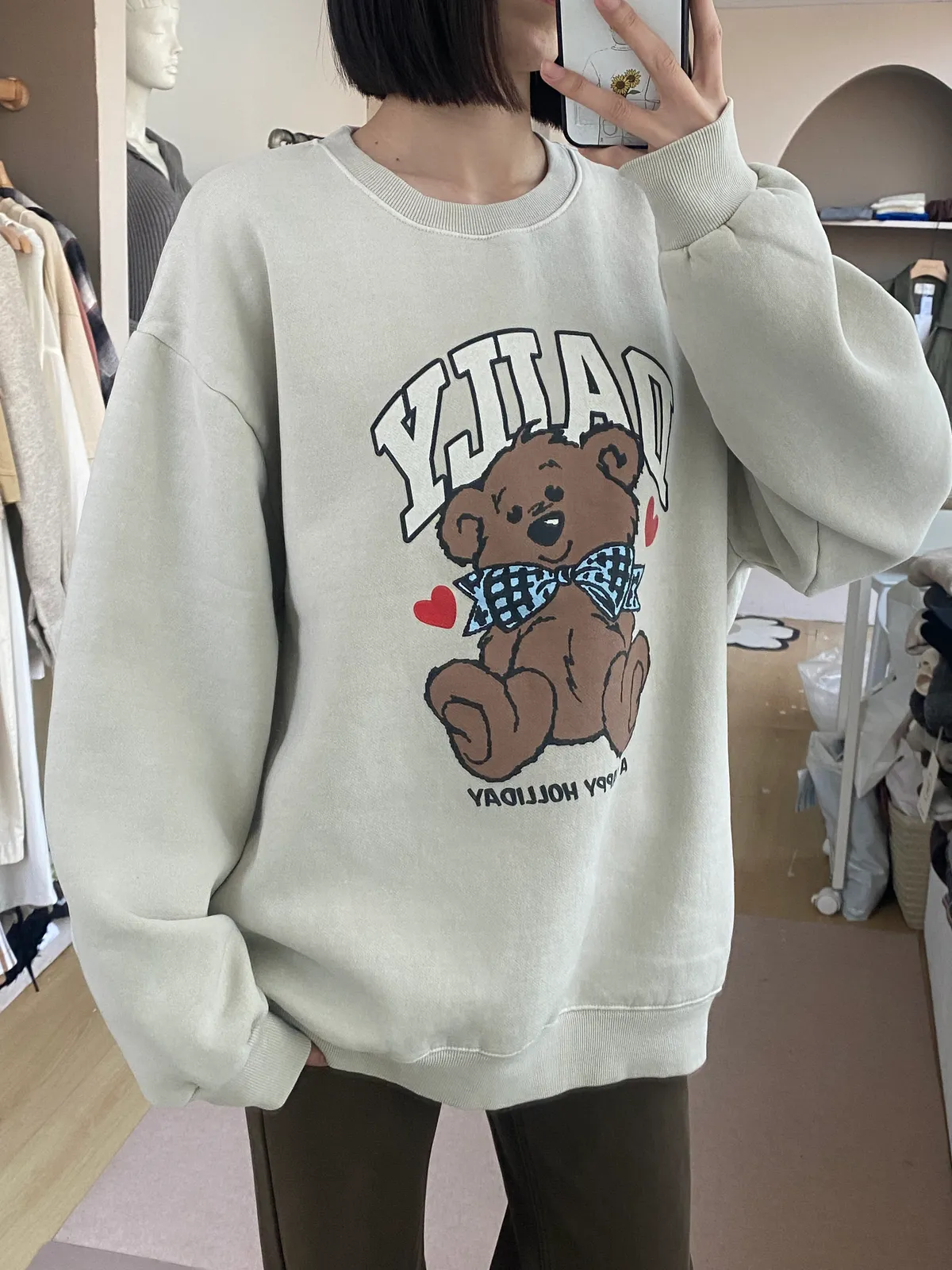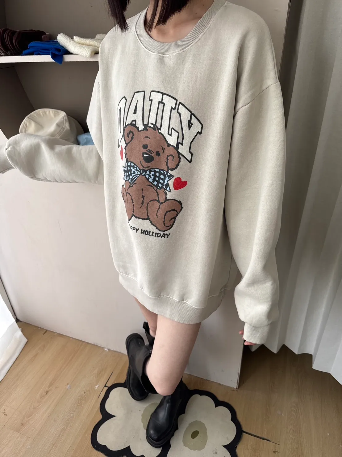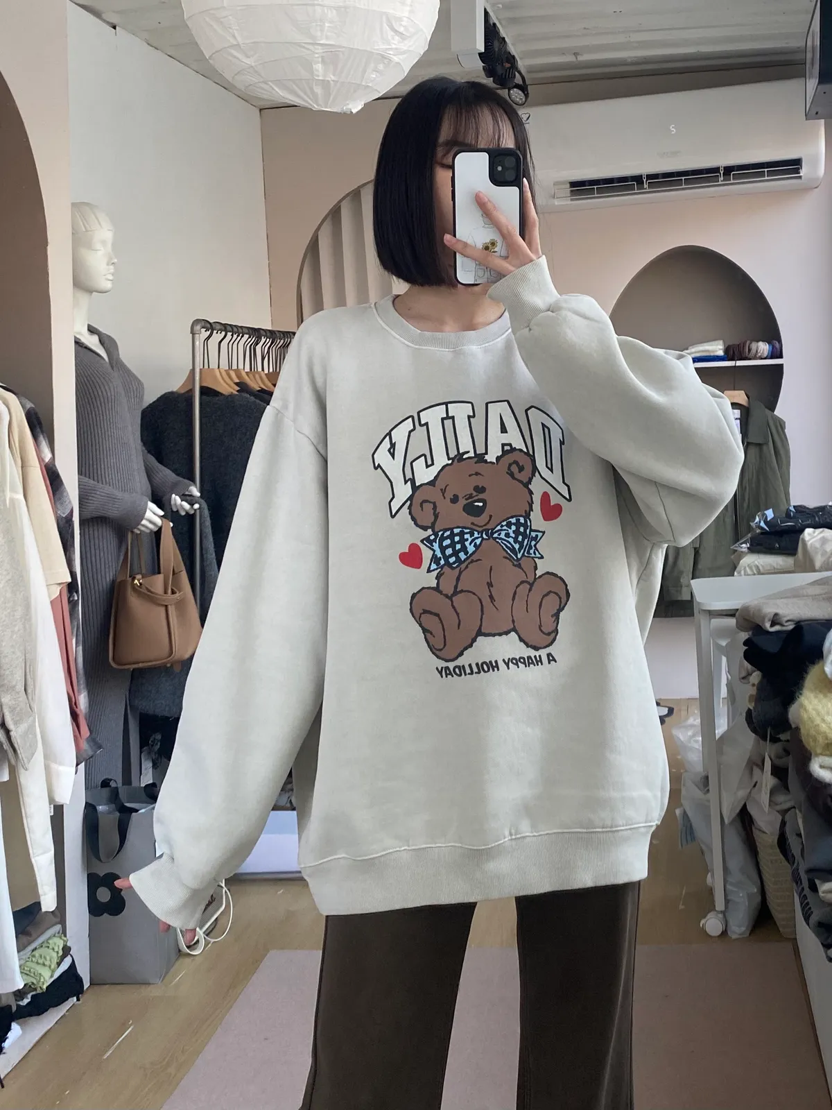 小熊圖案不幼稚,是那種「溫柔中帶一點童趣」的可愛。