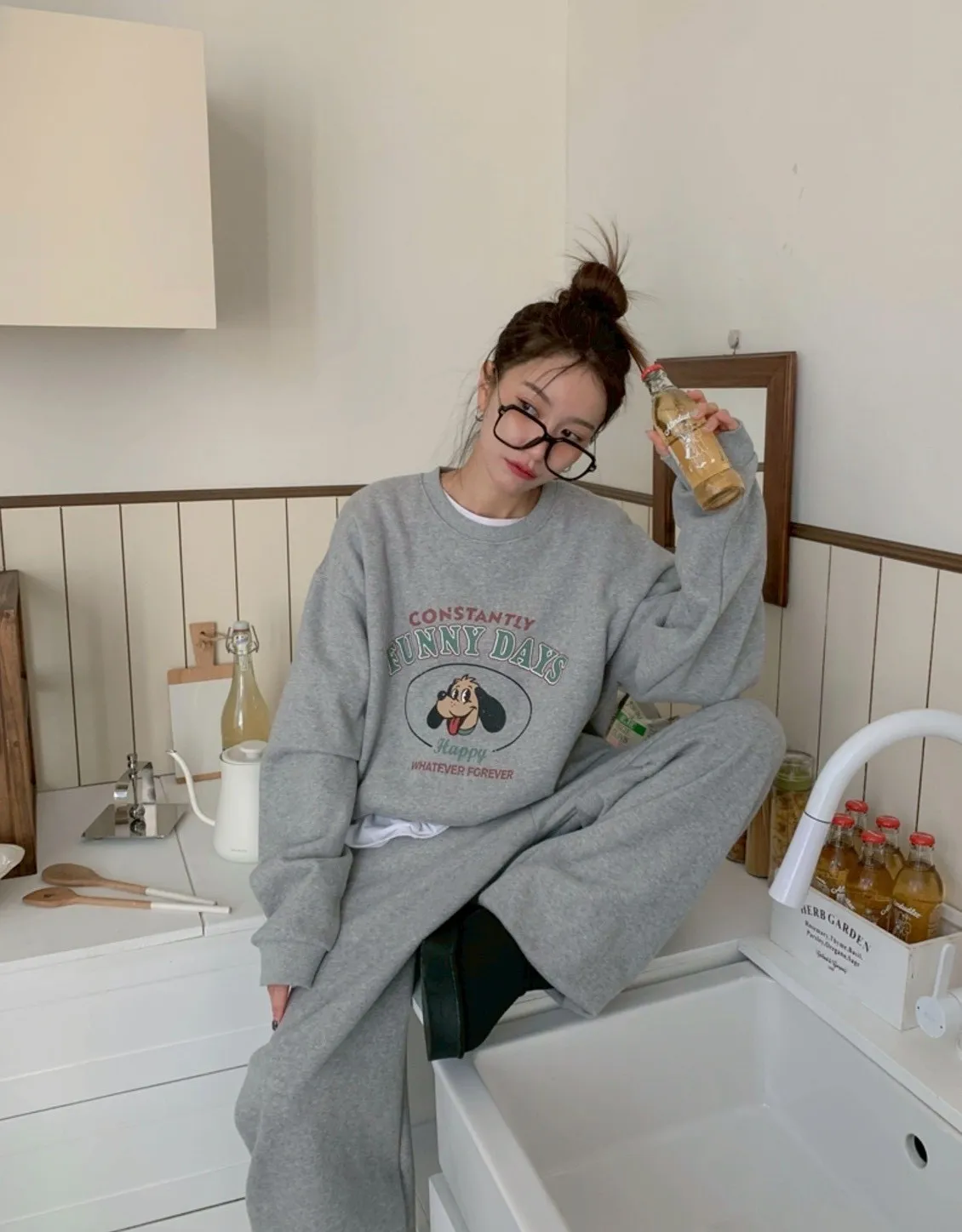 整套穿起來就是「今天不想努力,但還是想可愛一下」。