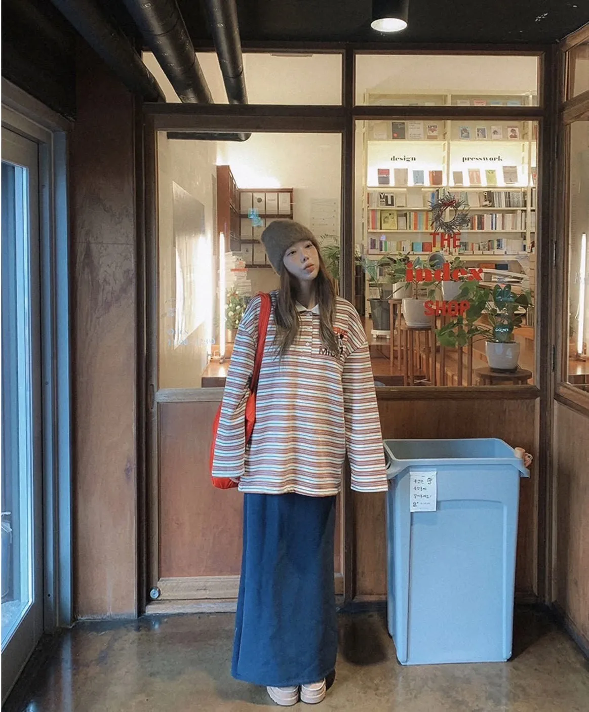 搭條紋上衣、針織、帽T都不違和,