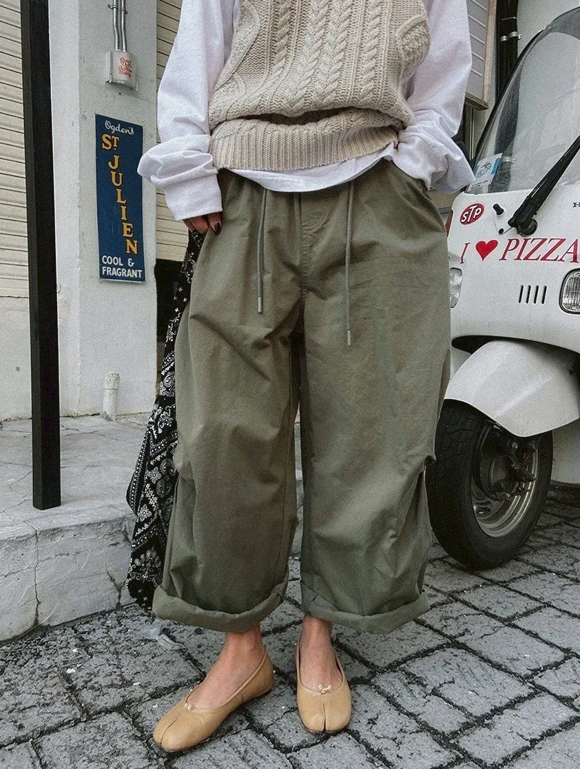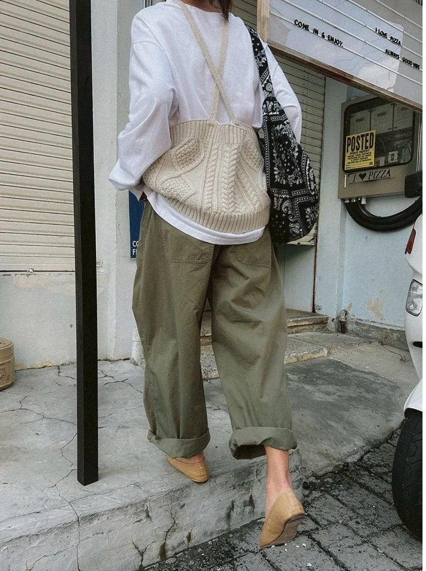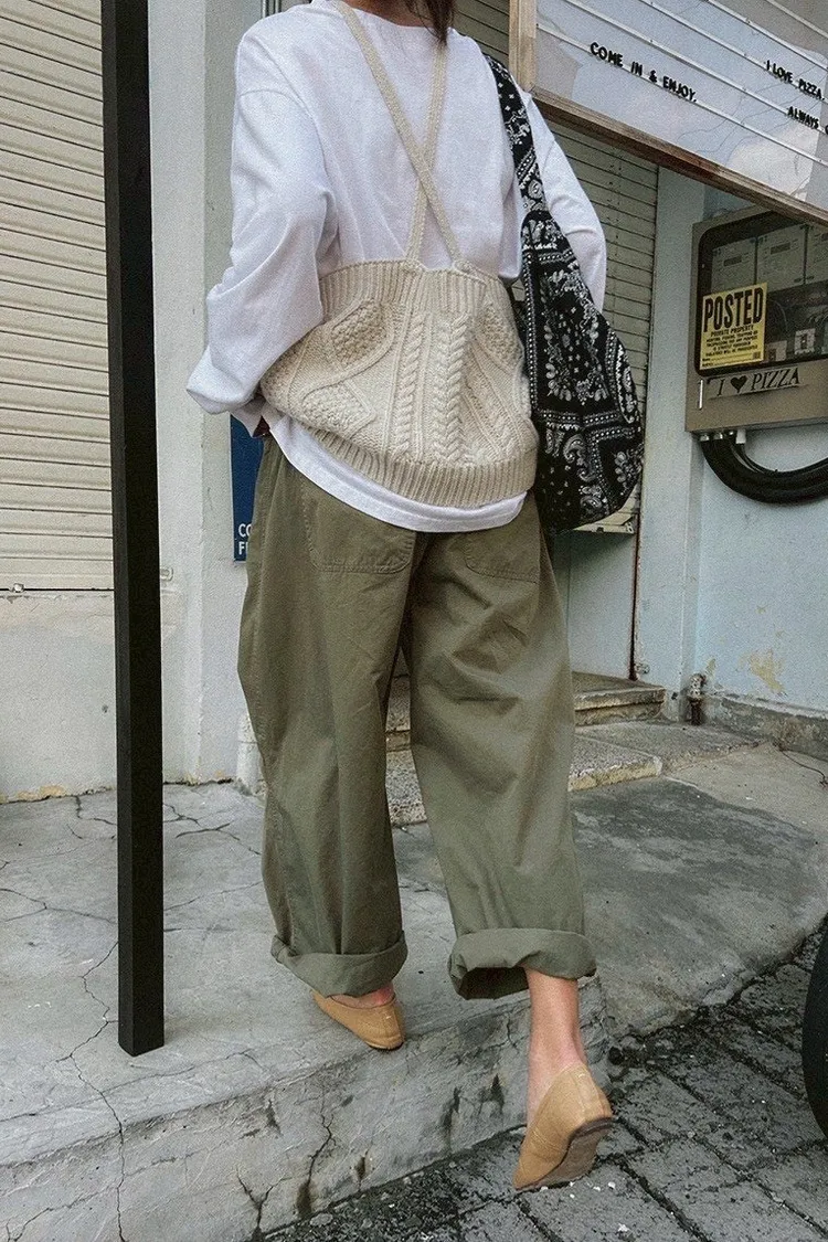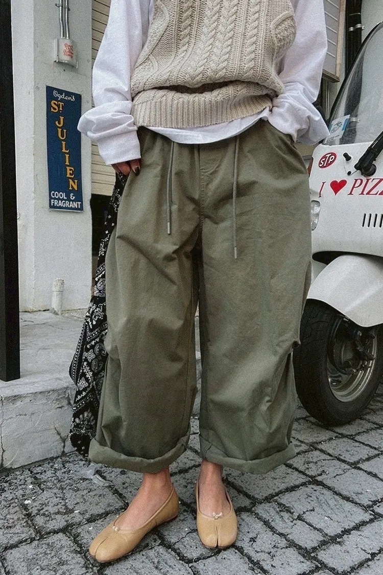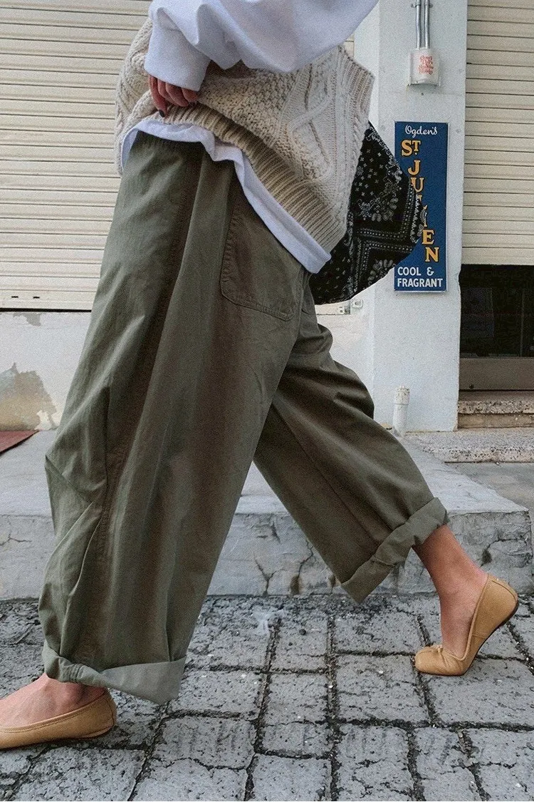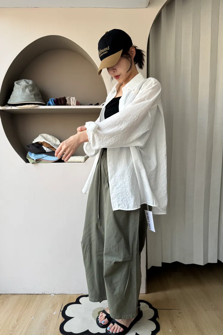 寬鬆剪裁+立體布料,穿起來很有份量感,隨便捲個褲管就很時髦。