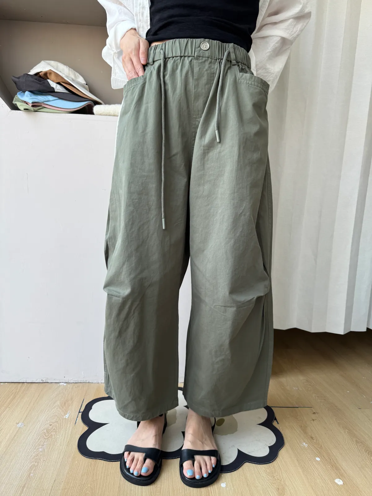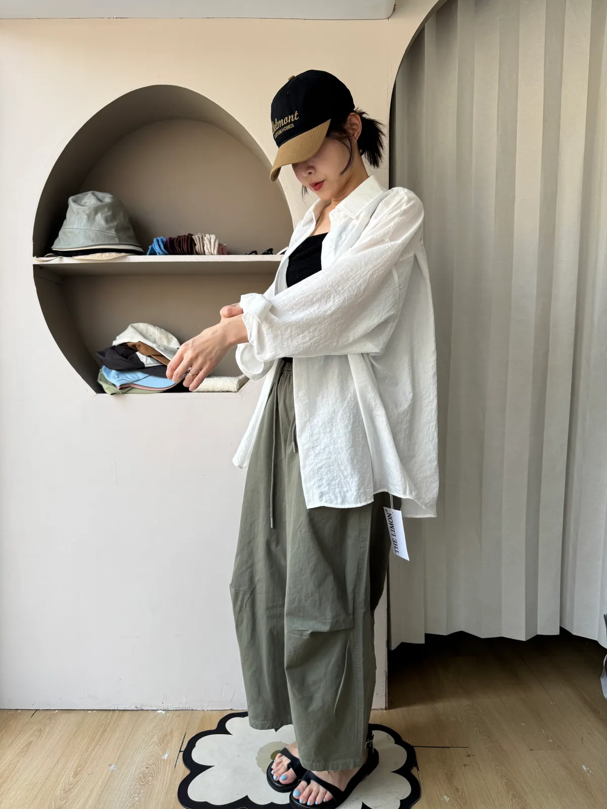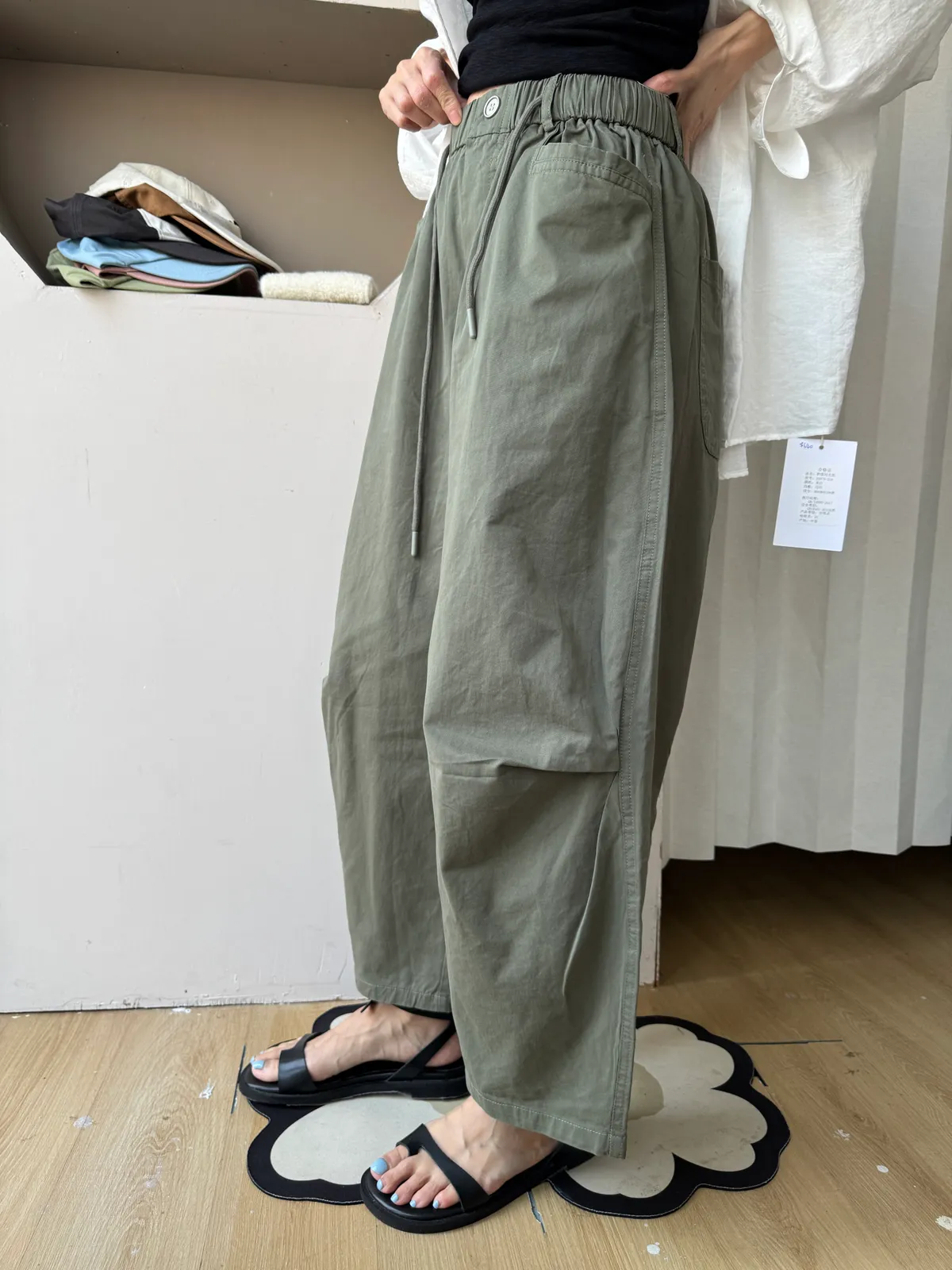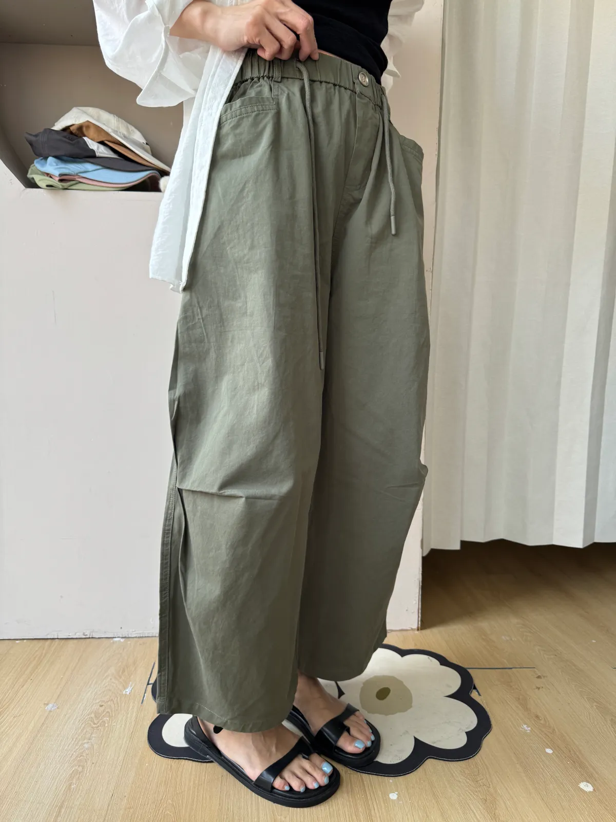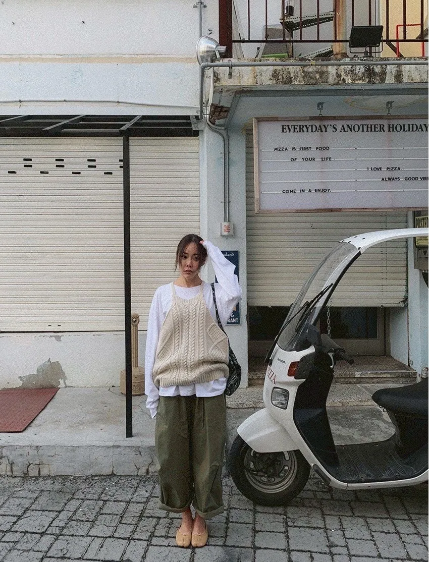 寬鬆剪裁+立體布料,穿起來很有份量感,隨便捲個褲管就很時髦。