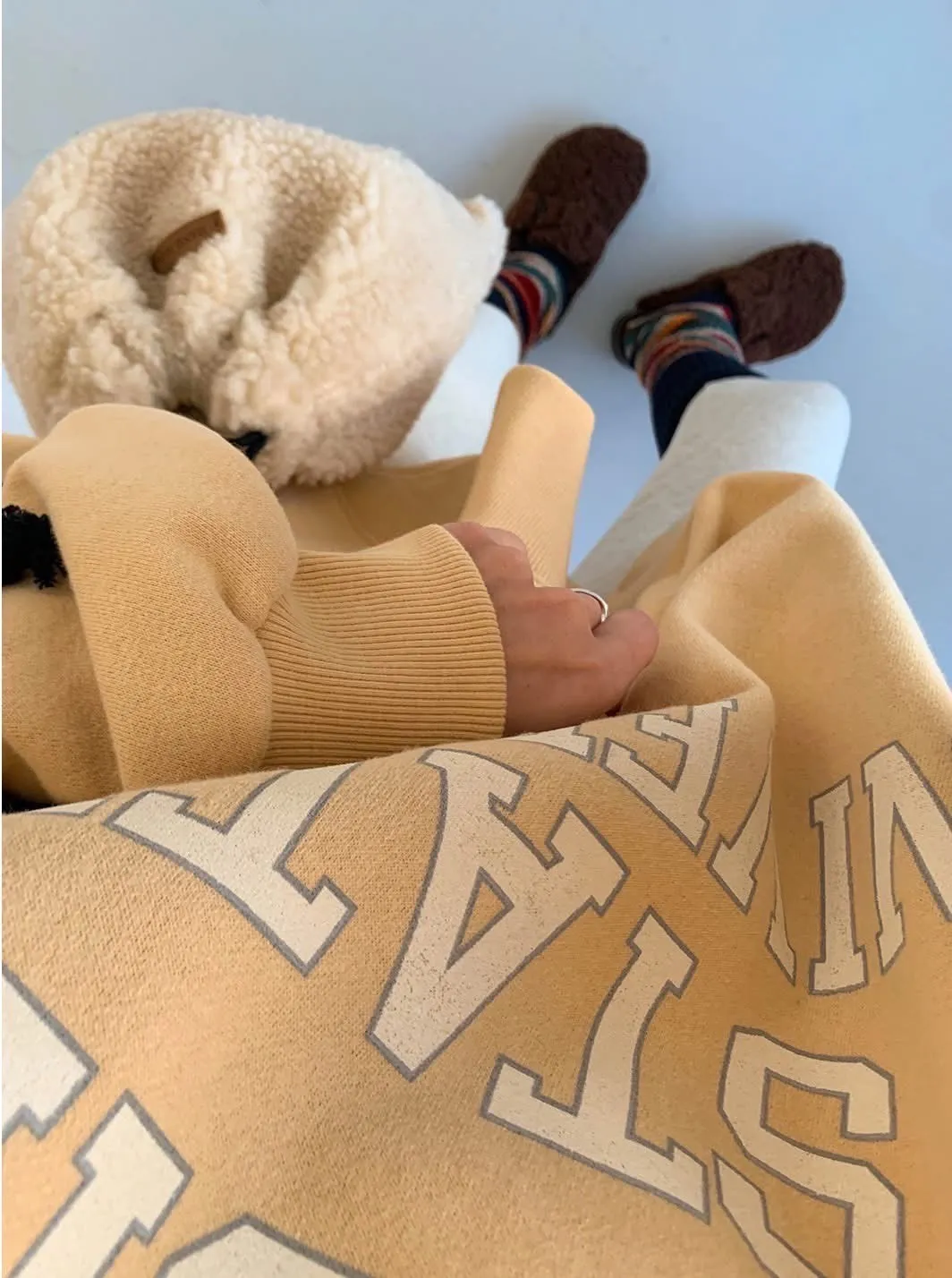 布料偏厚,版型寬寬大大,刷毛內裡暖到不行。