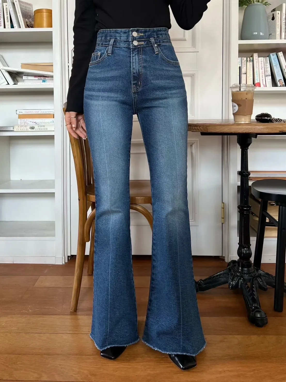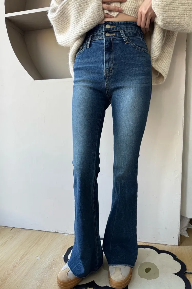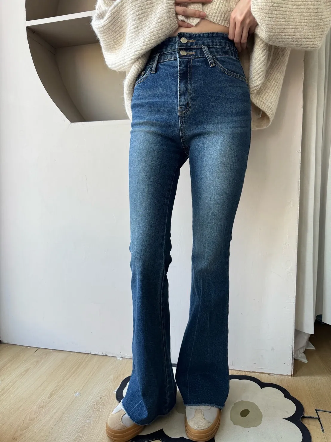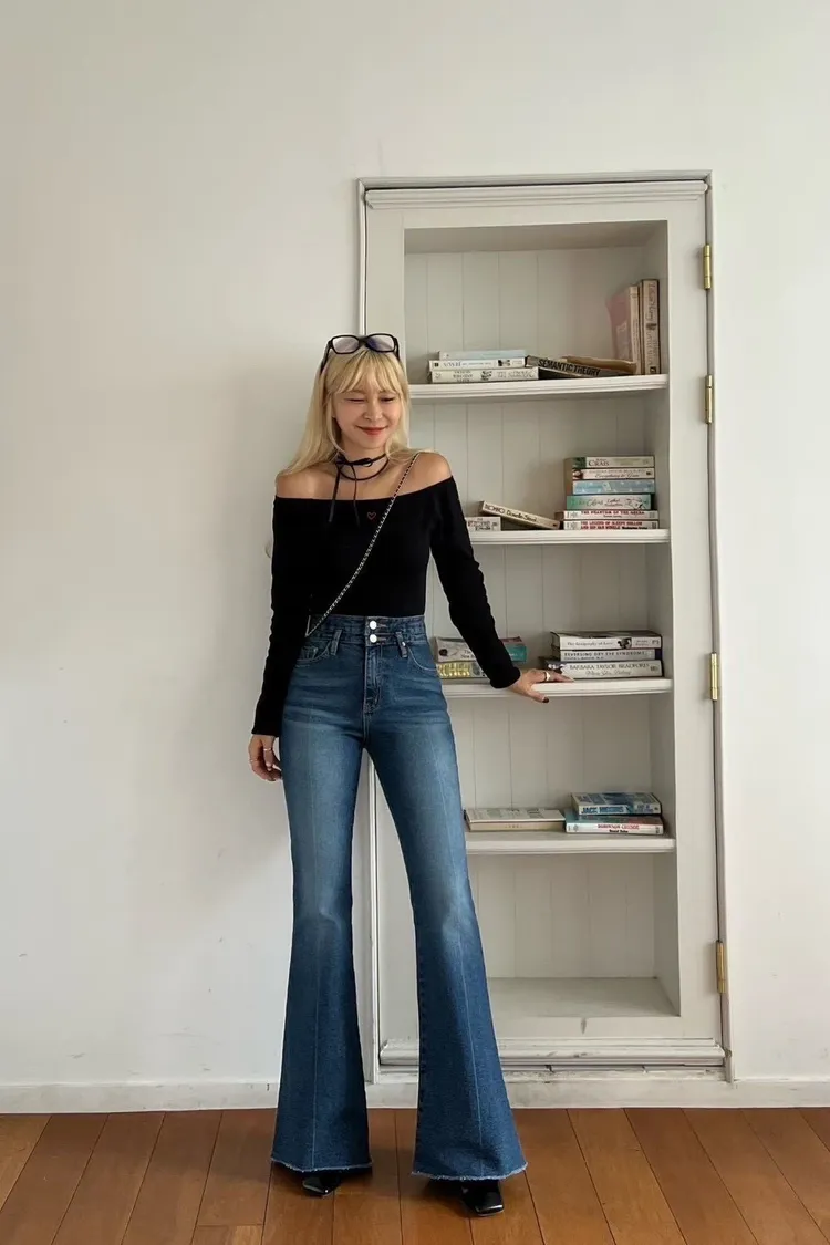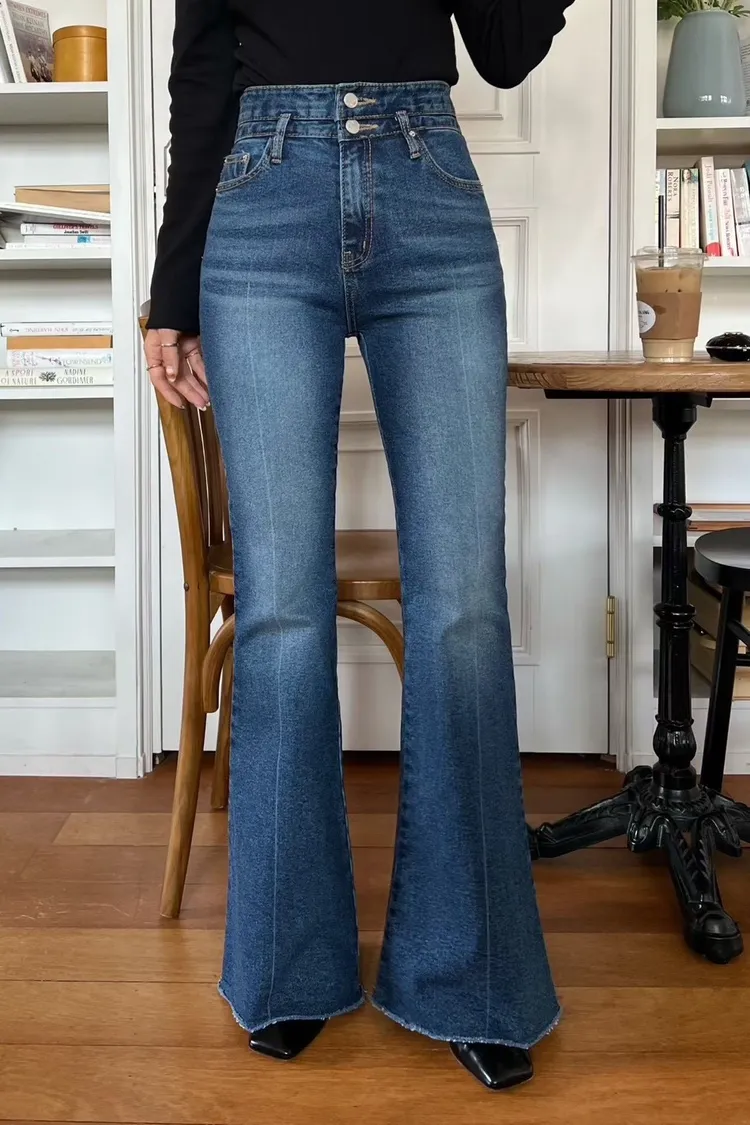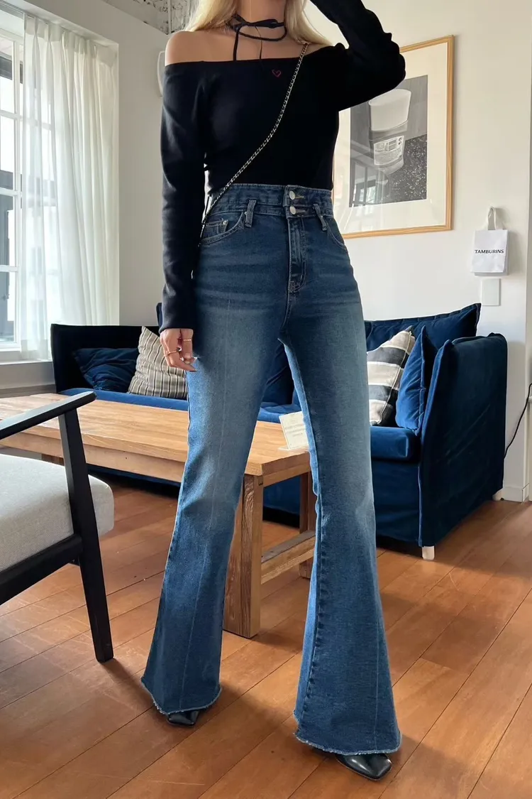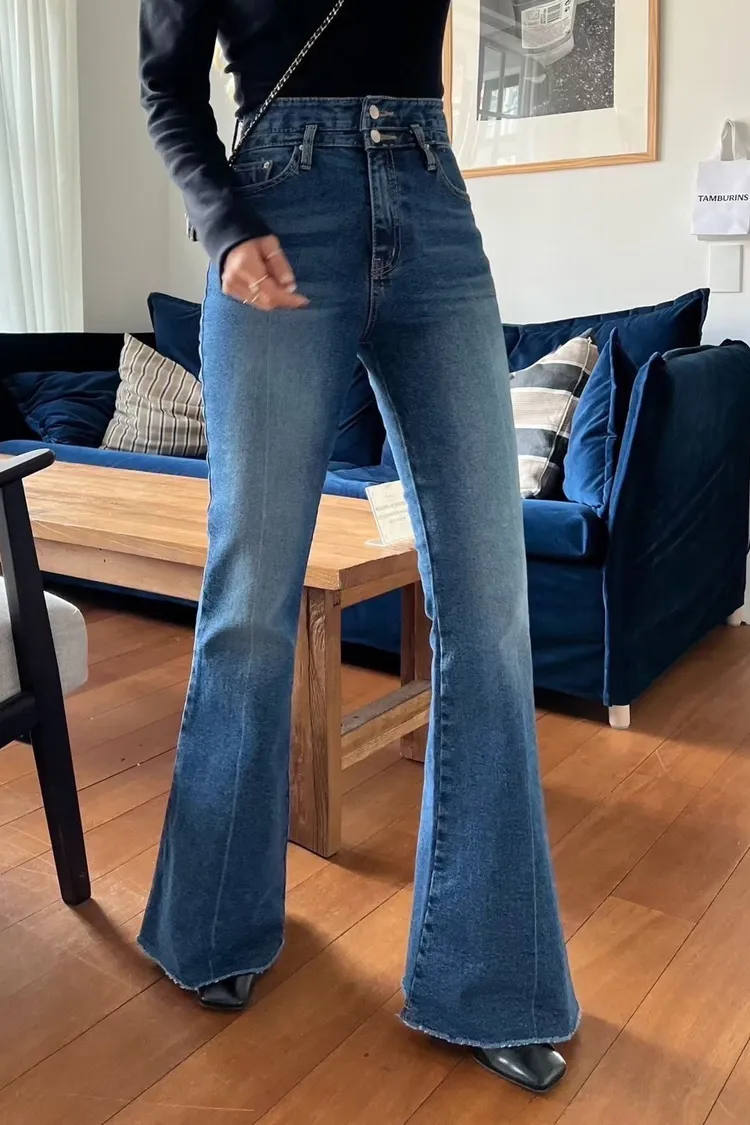 褲管是自然喇叭,不會太誇張,但腿直接拉超長。