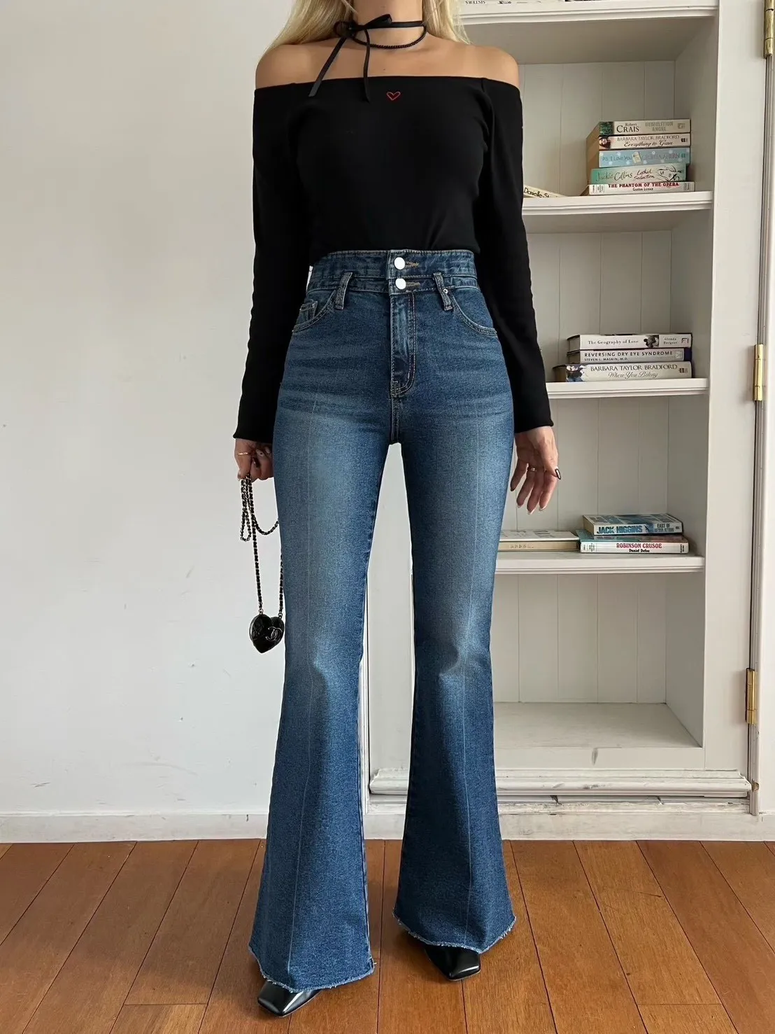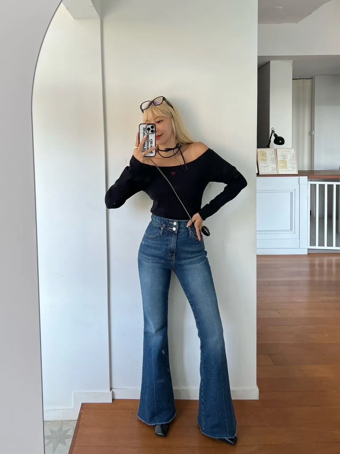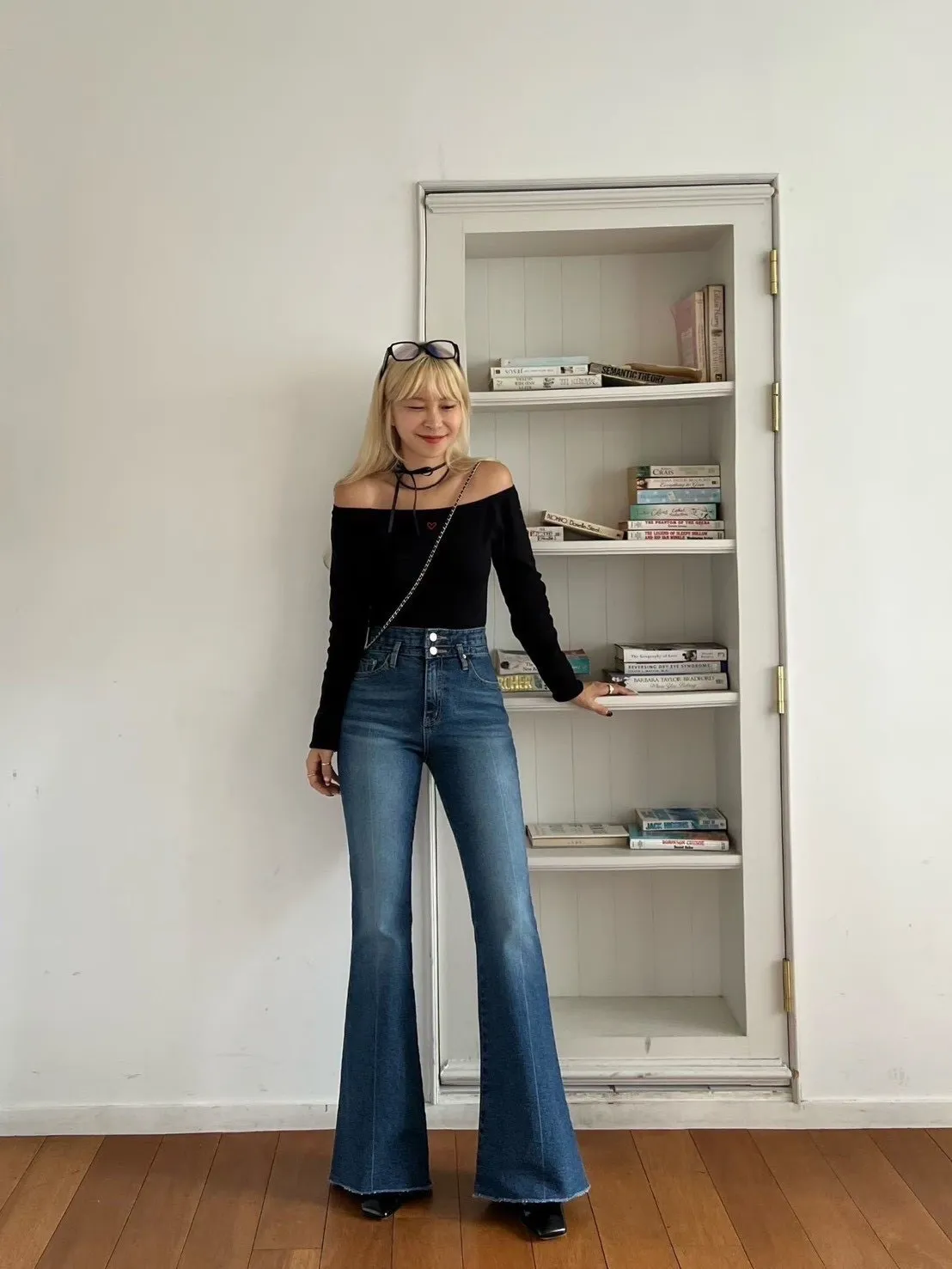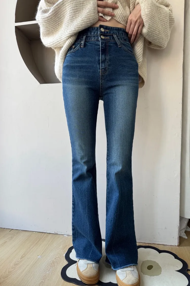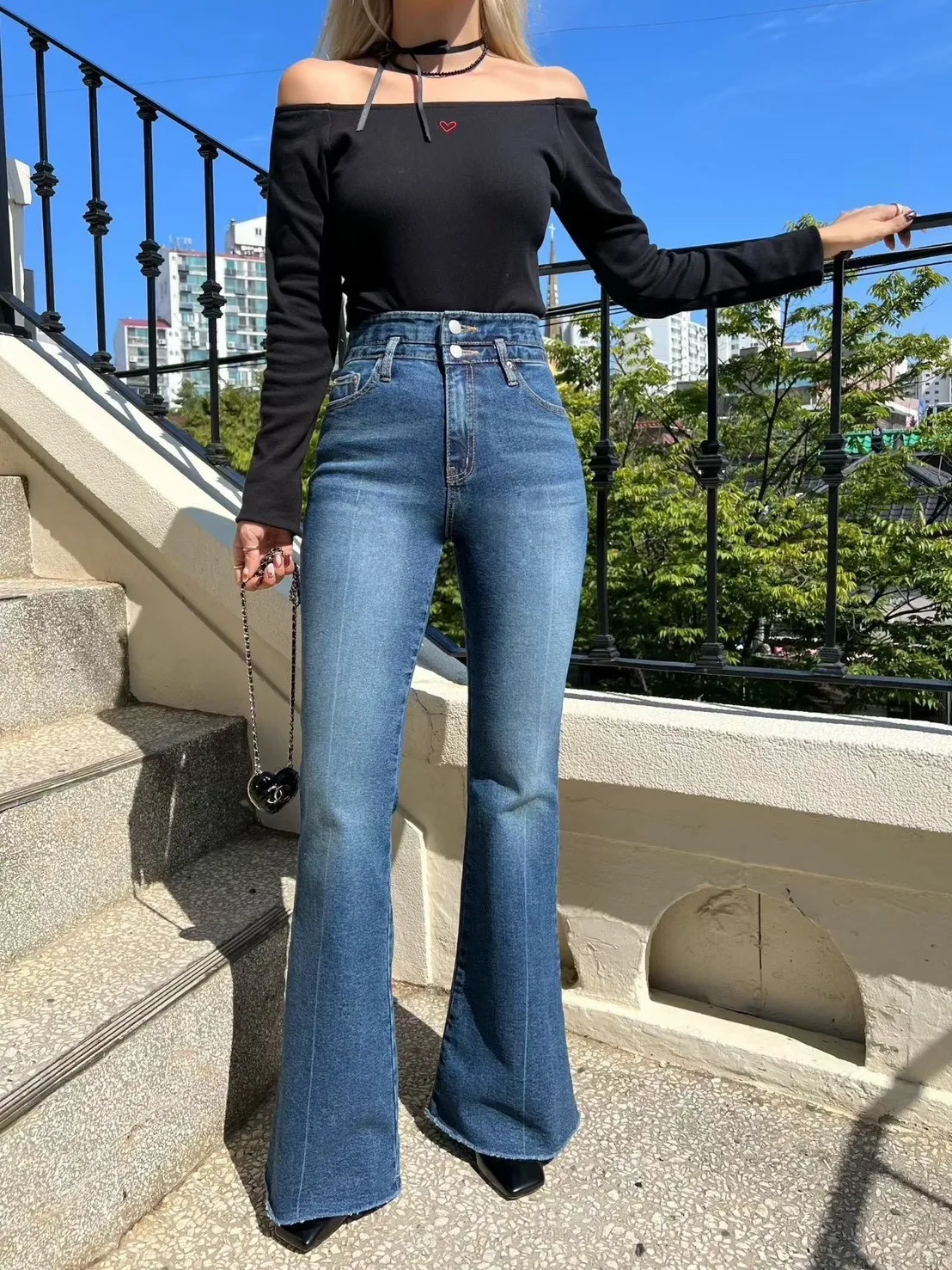褲管是自然喇叭,不會太誇張,但腿直接拉超長。