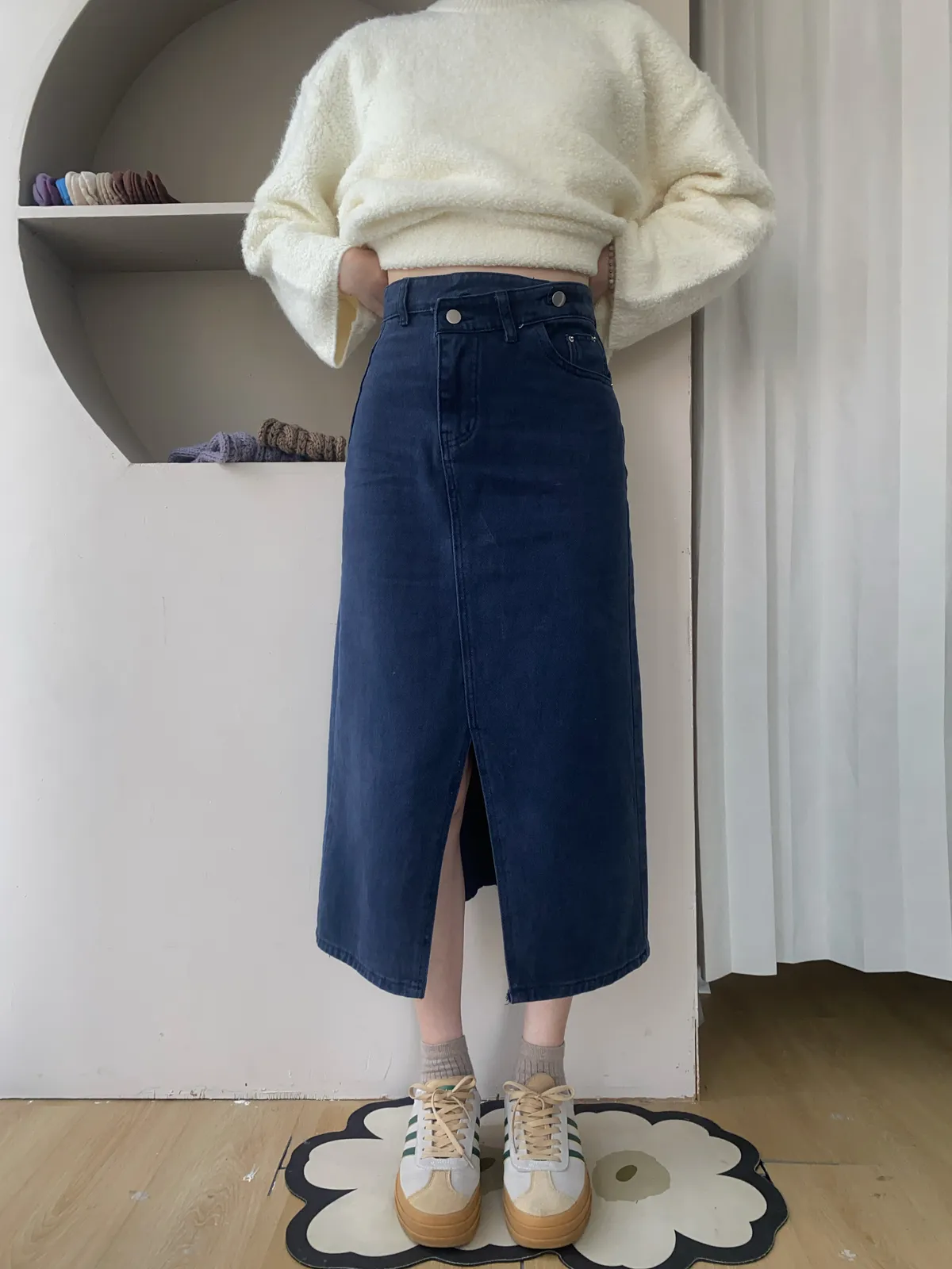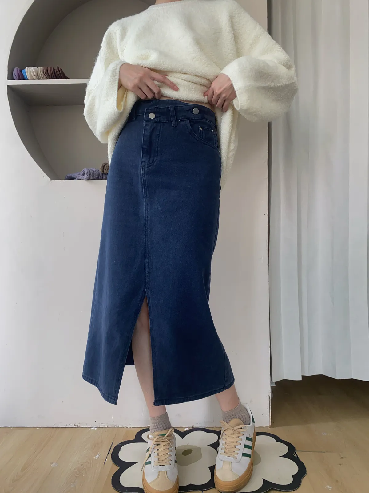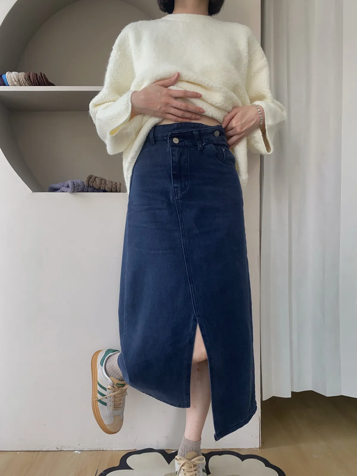 ✔ 丹寧挺度剛好,不貼腿、不顯胯
