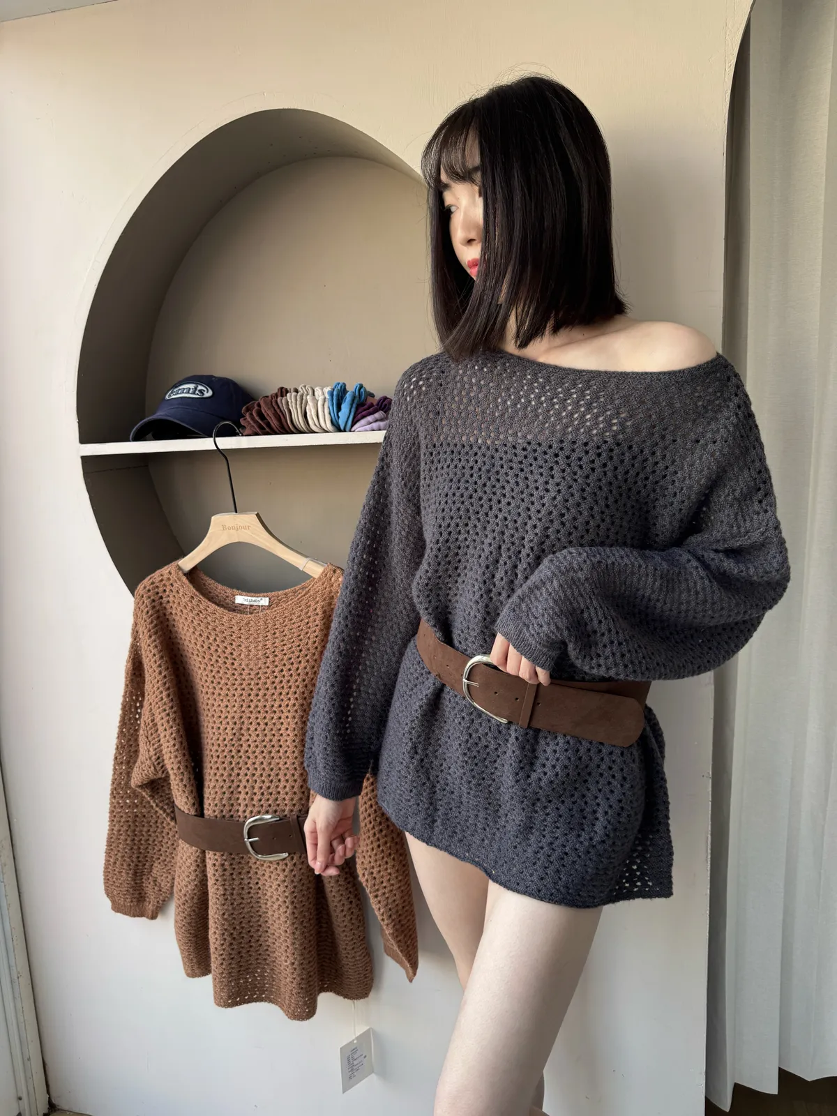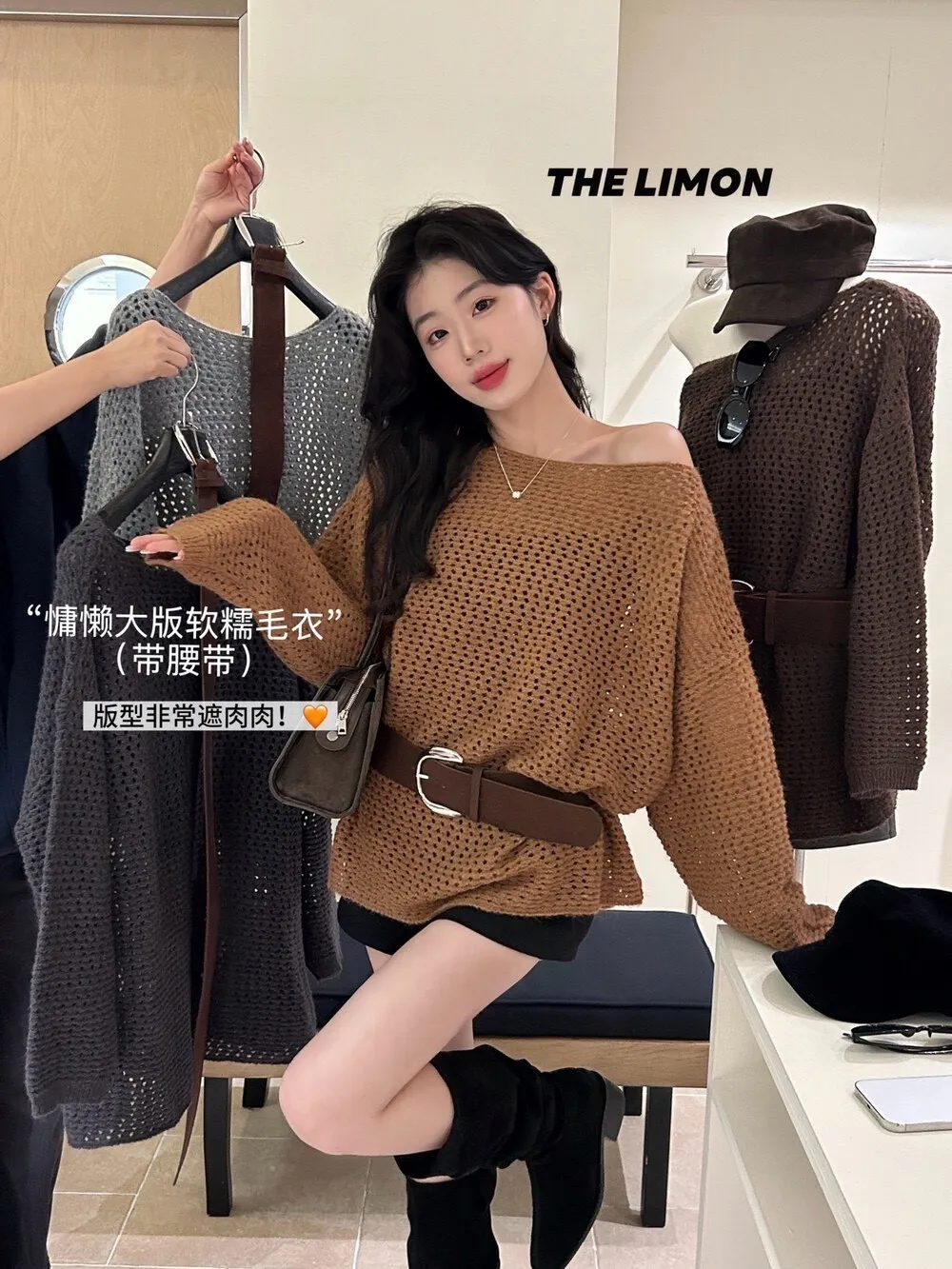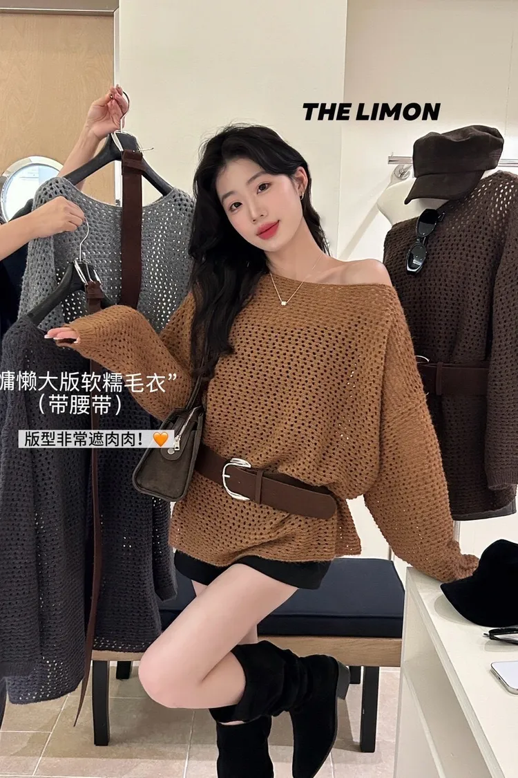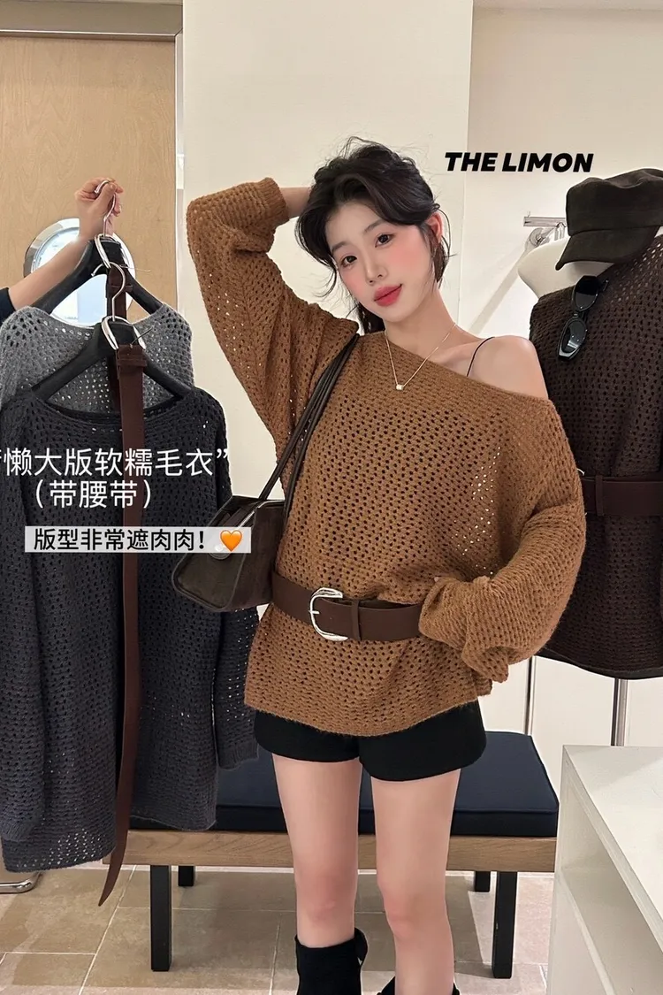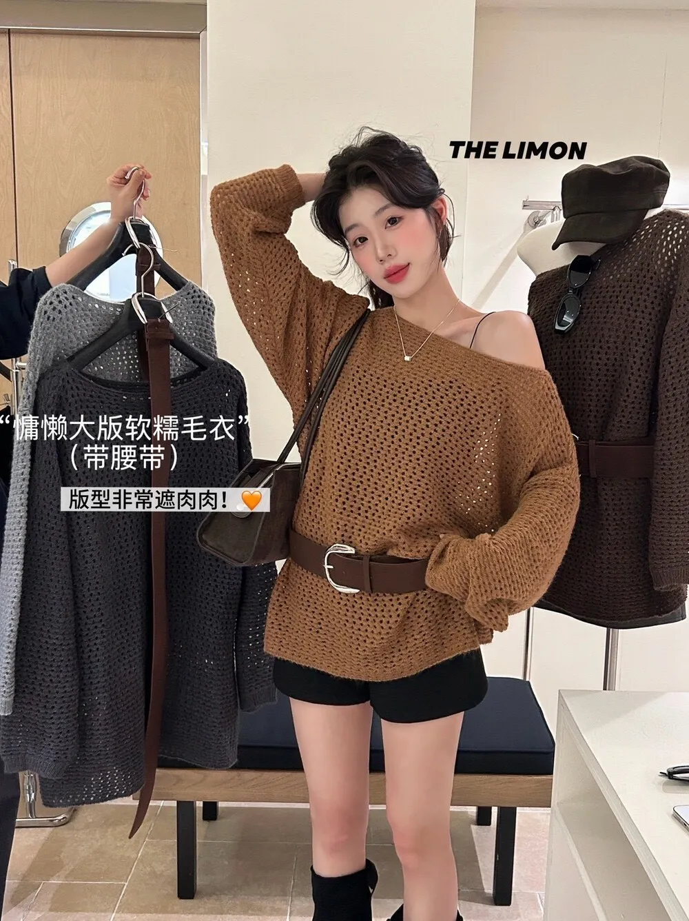 時髦焦點慵懶大版軟糯保暖毛衣(配腰帶)
