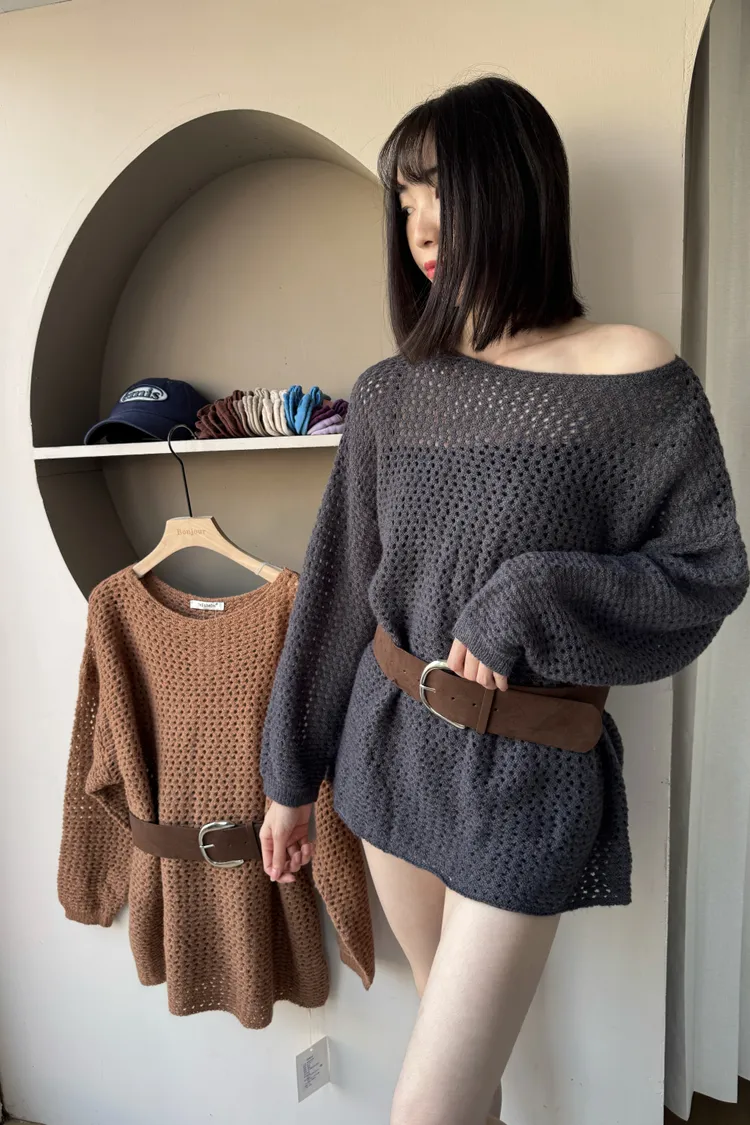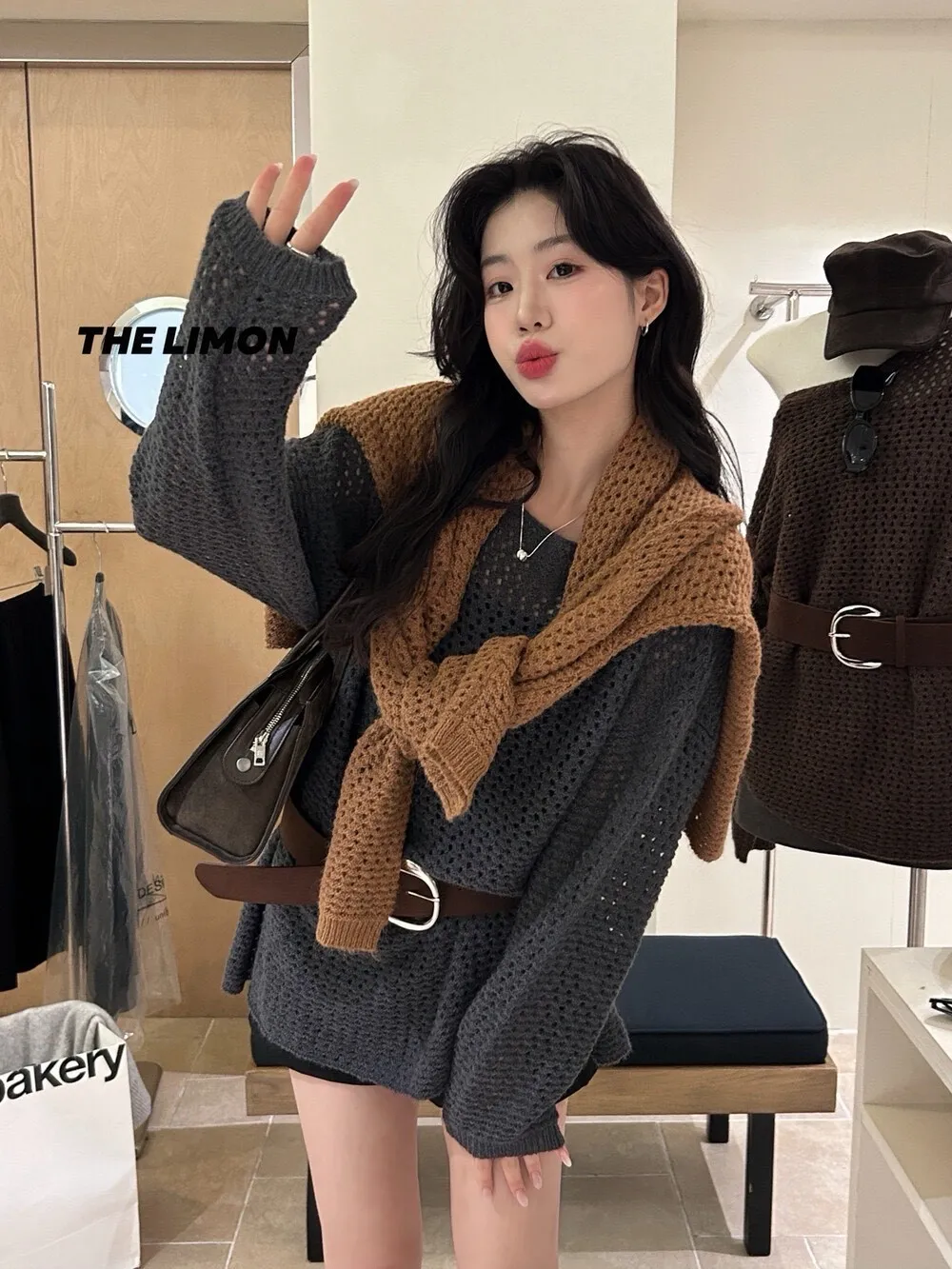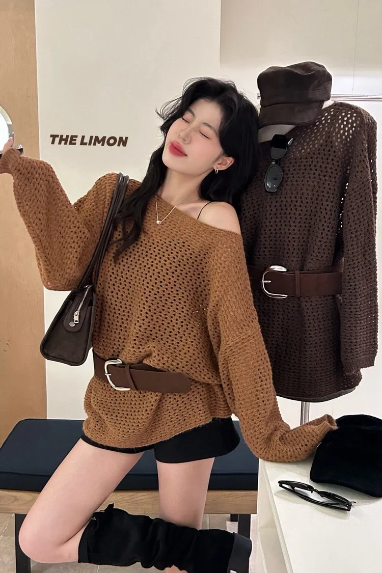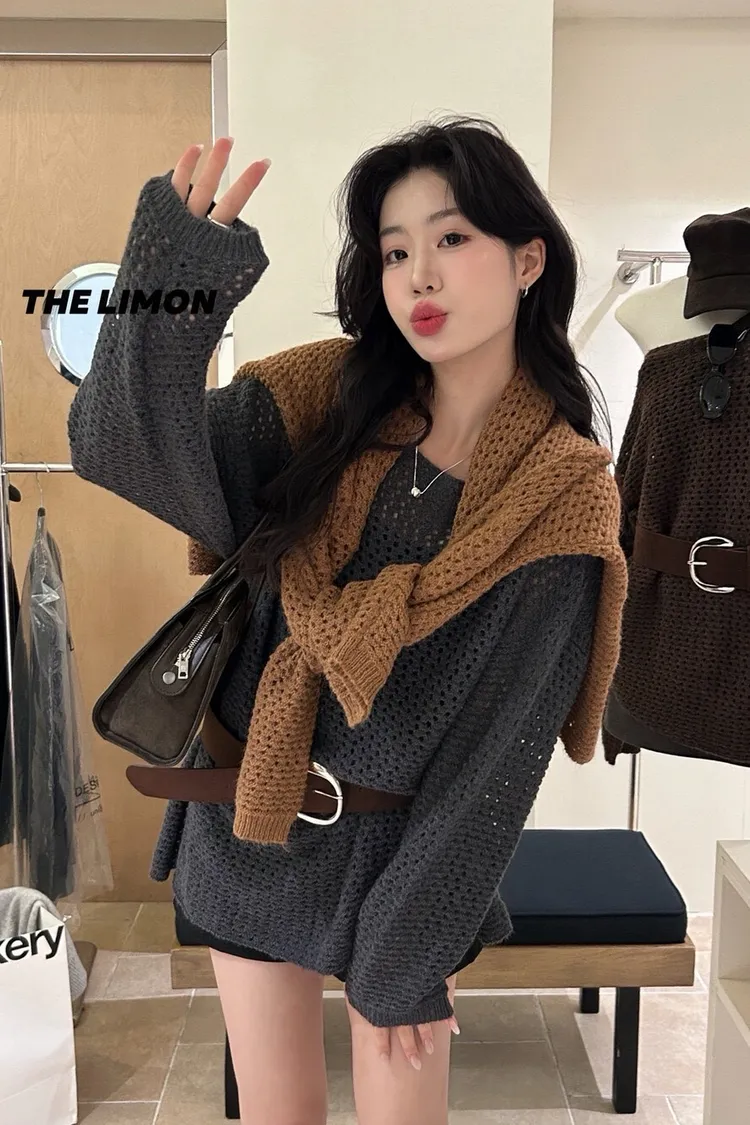 時髦焦點慵懶大版軟糯保暖毛衣(配腰帶)