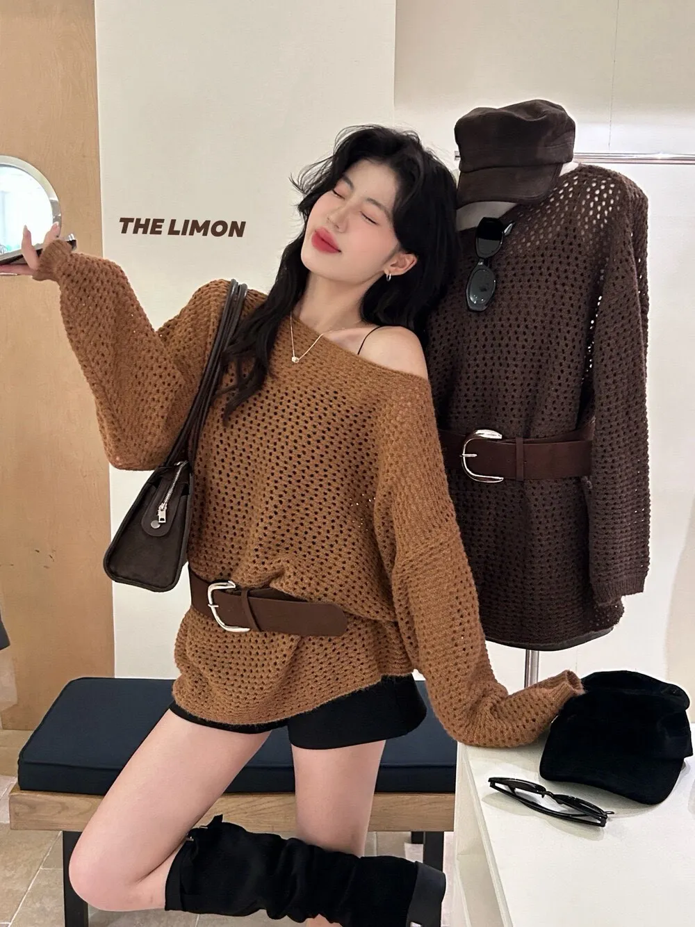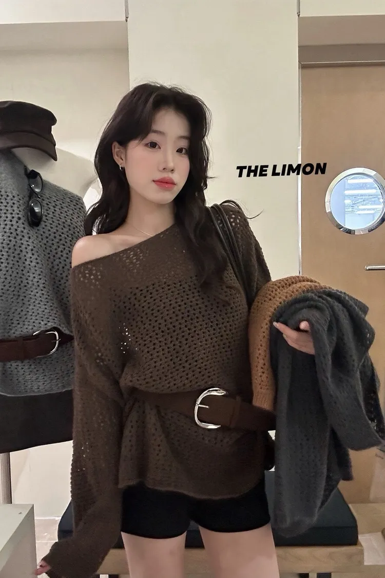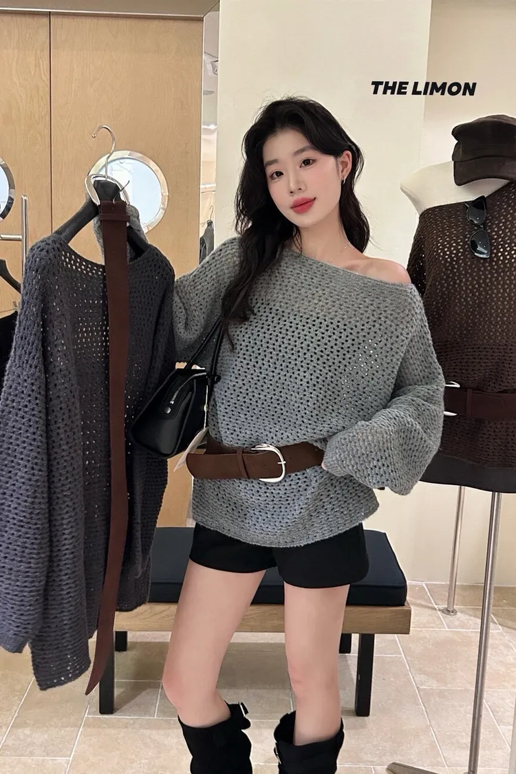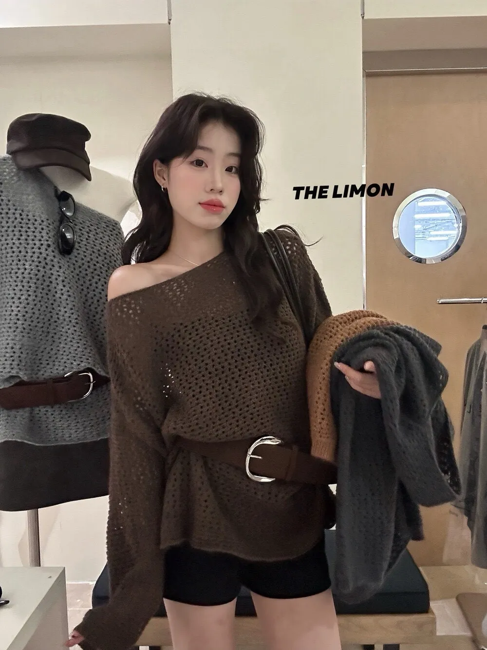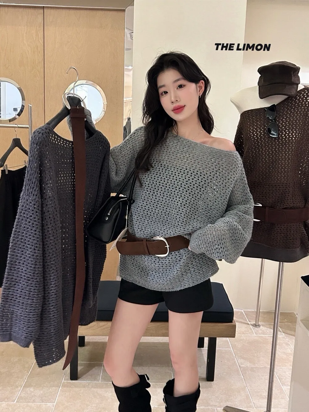 時髦焦點慵懶大版軟糯保暖毛衣(配腰帶)