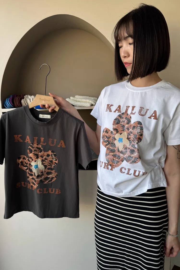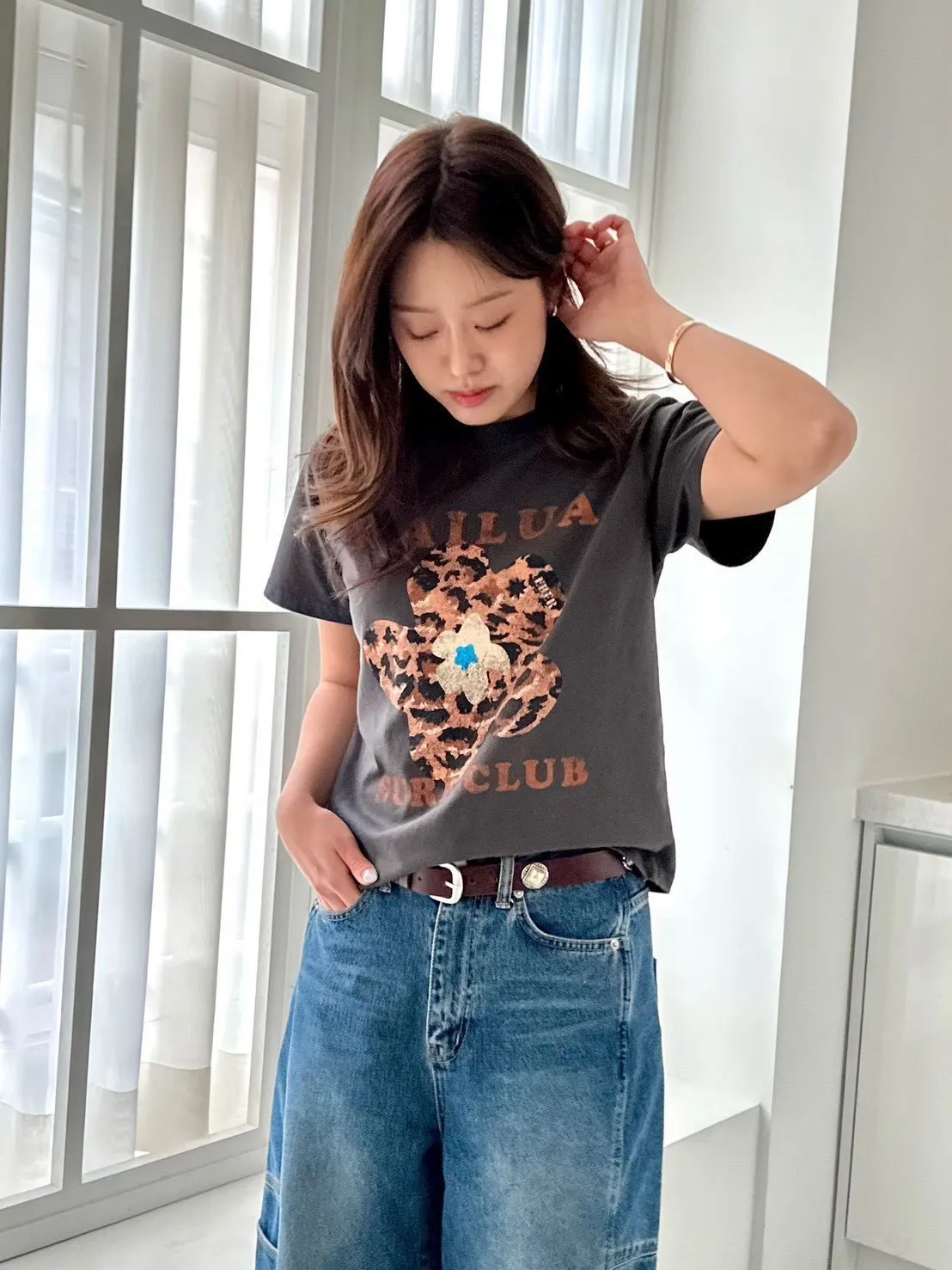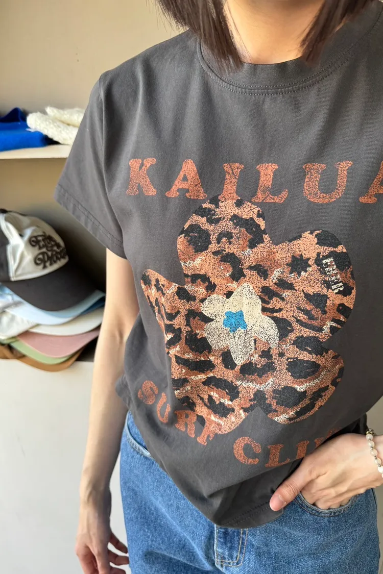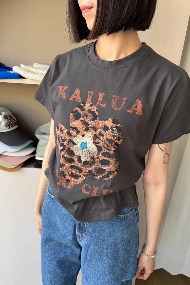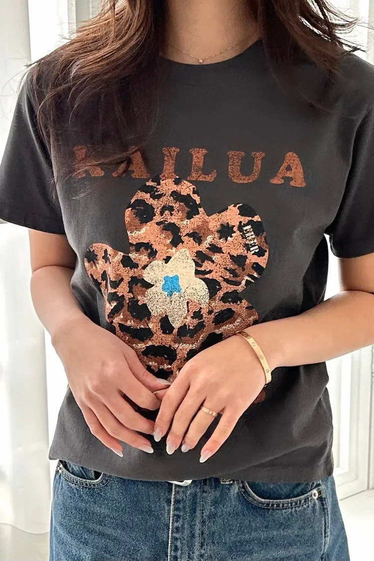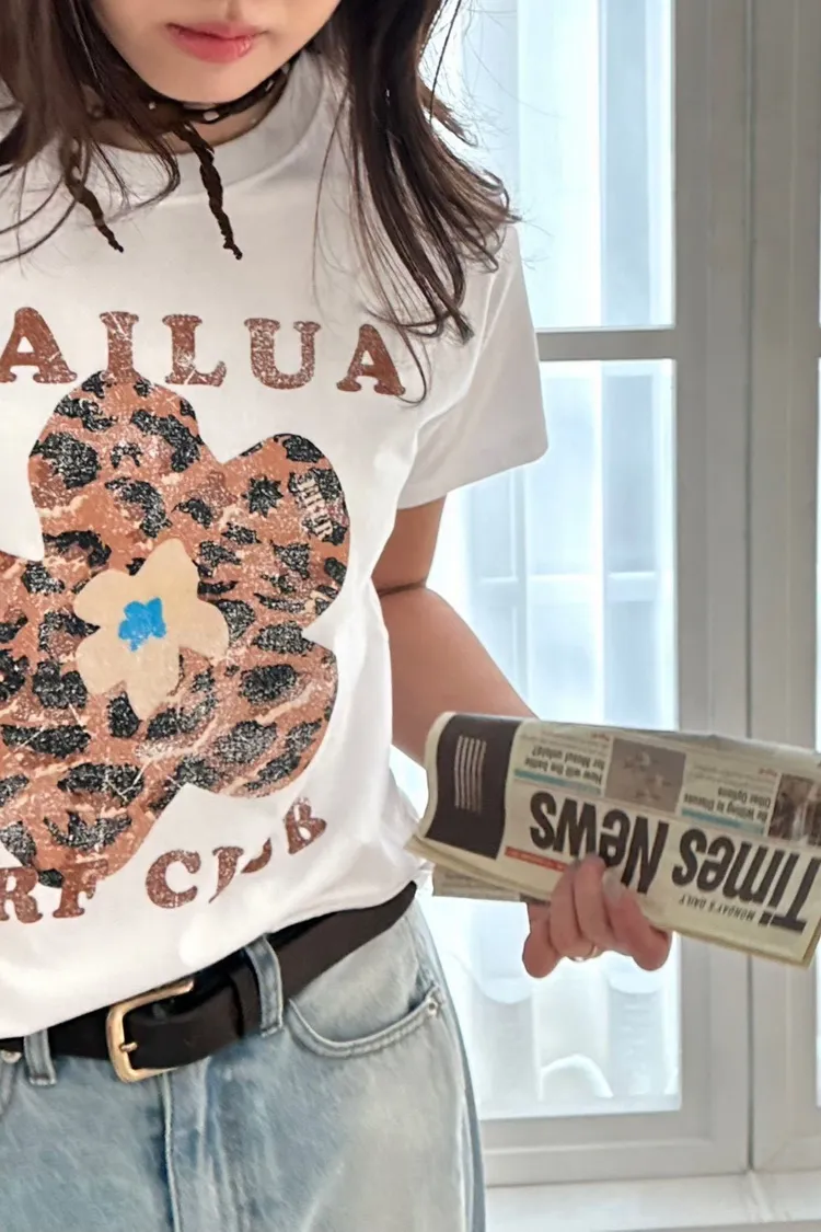 正韓花朵豹紋T