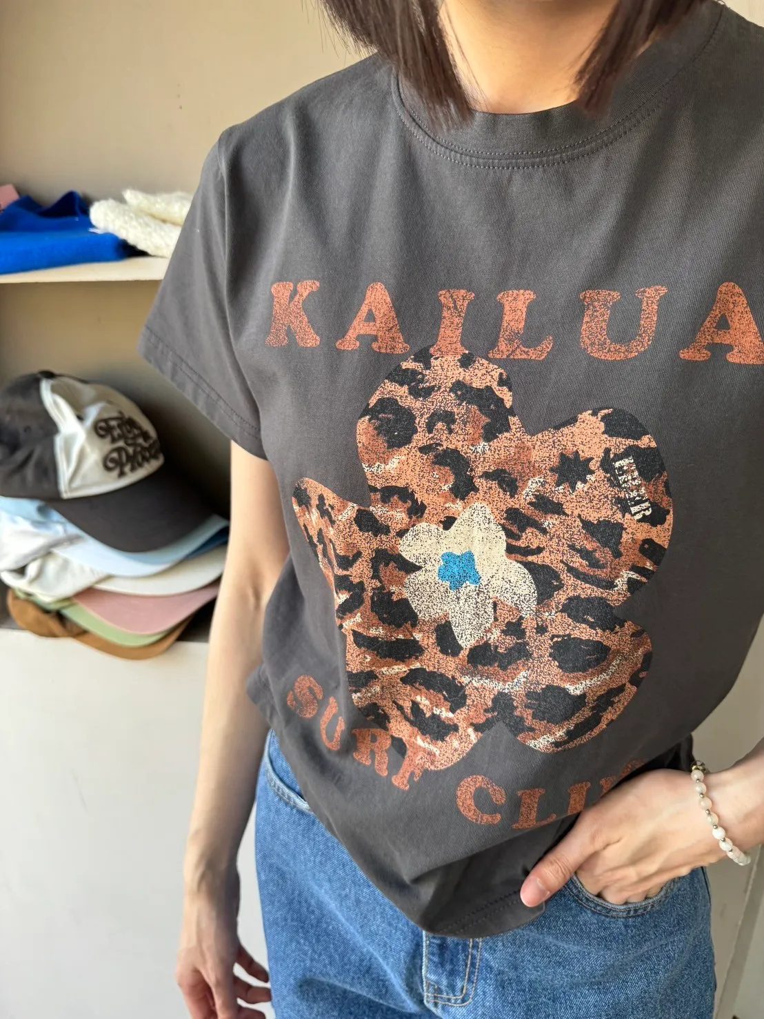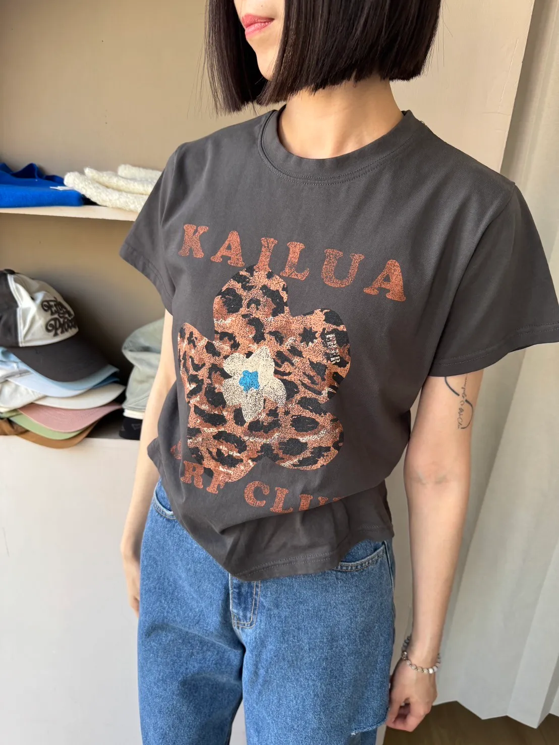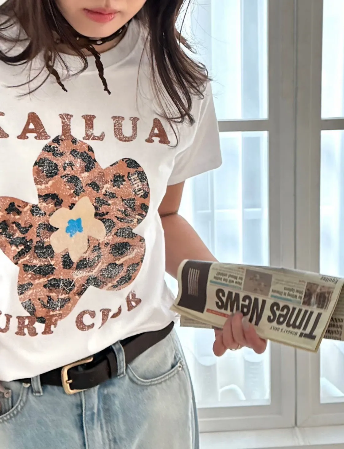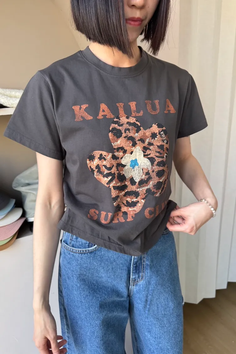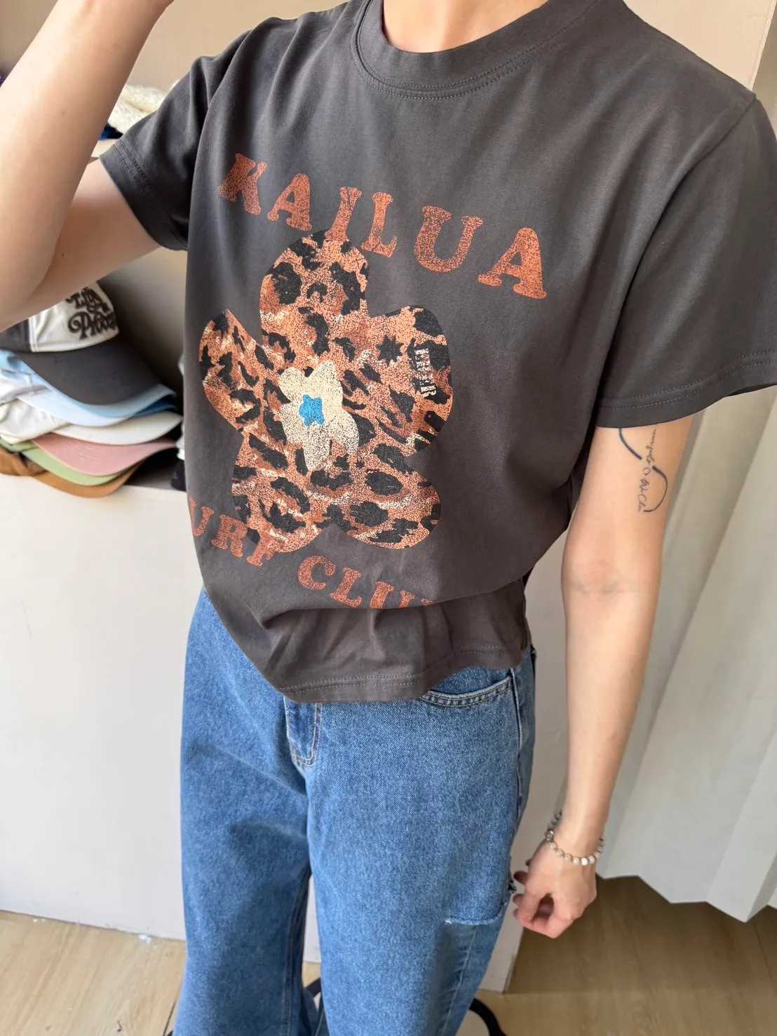 正韓花朵豹紋T