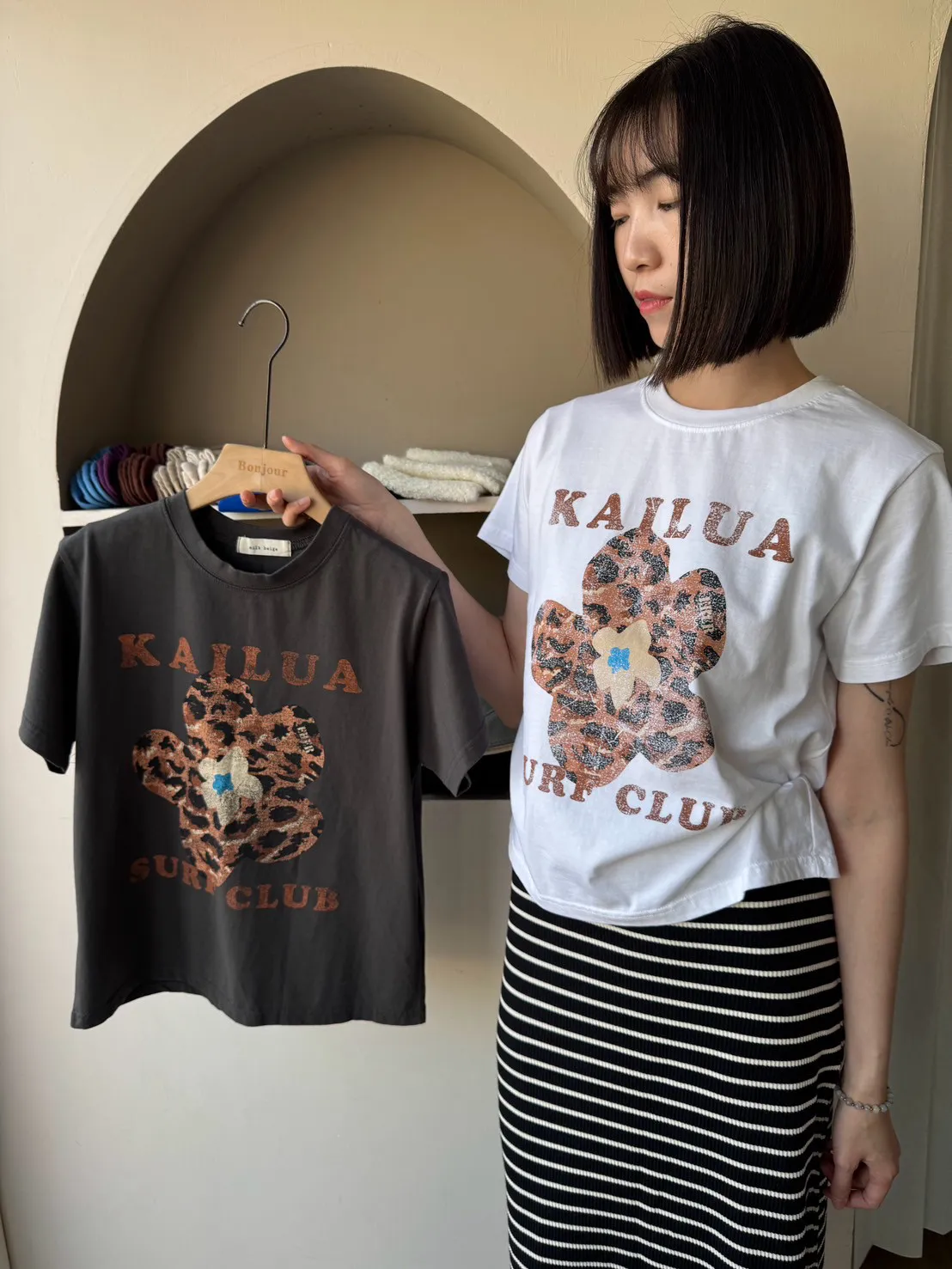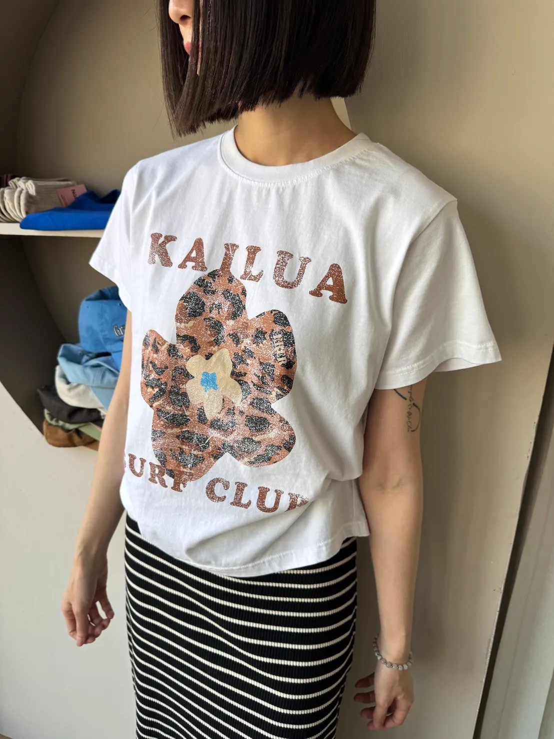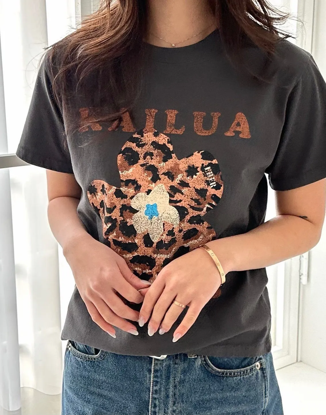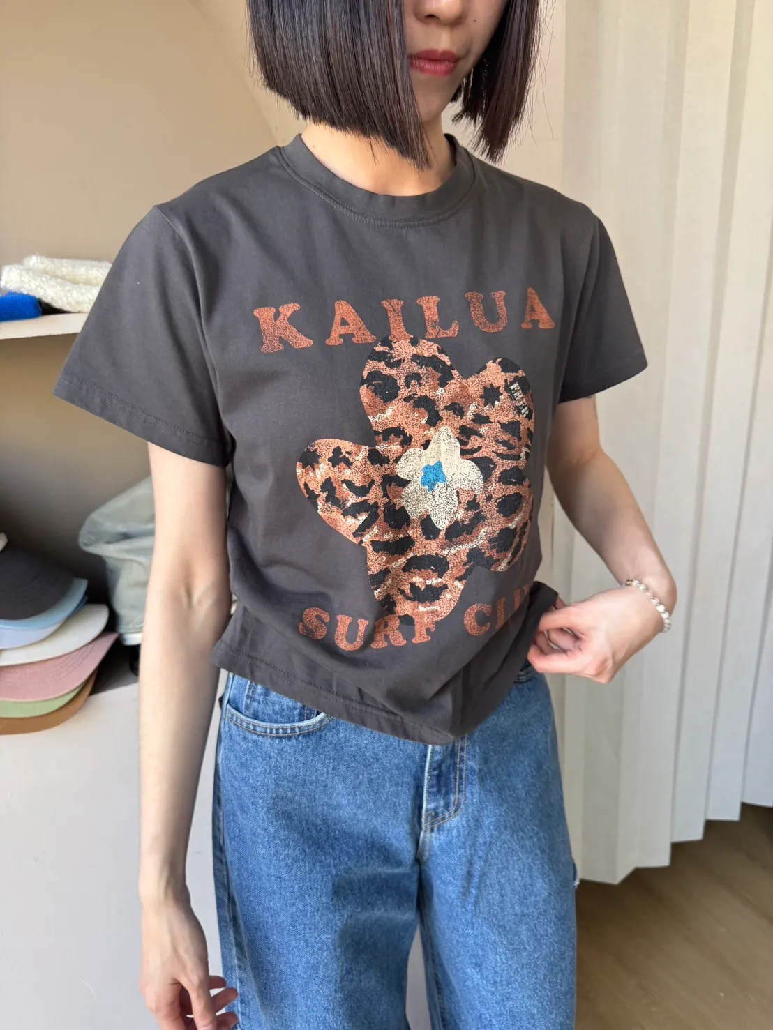 正韓花朵豹紋T
