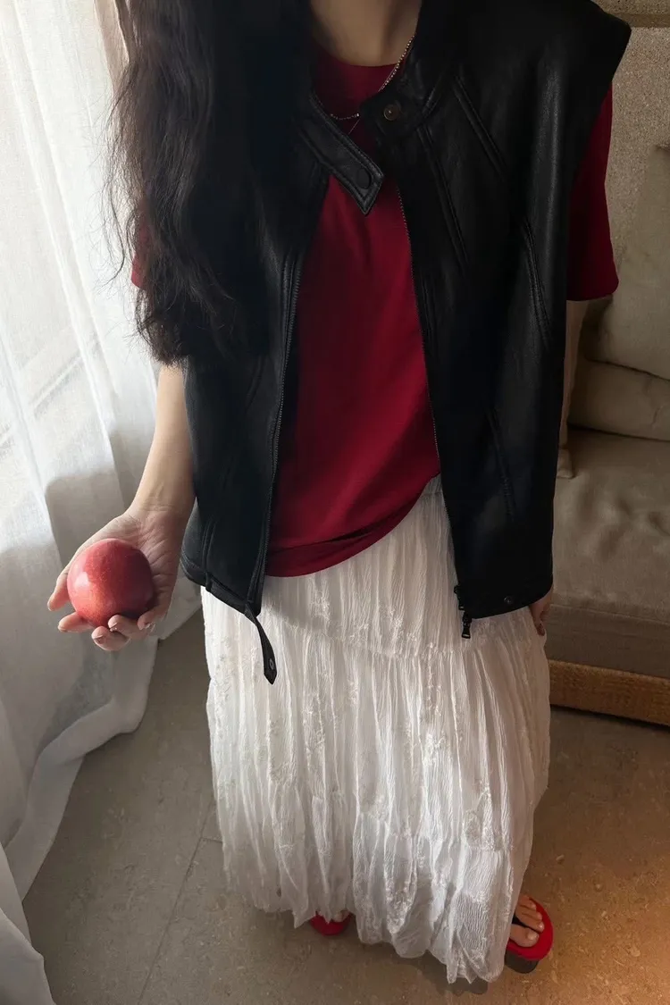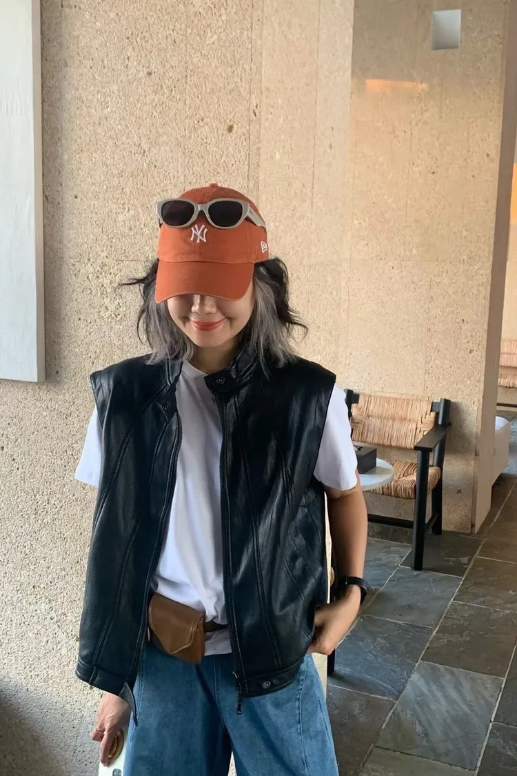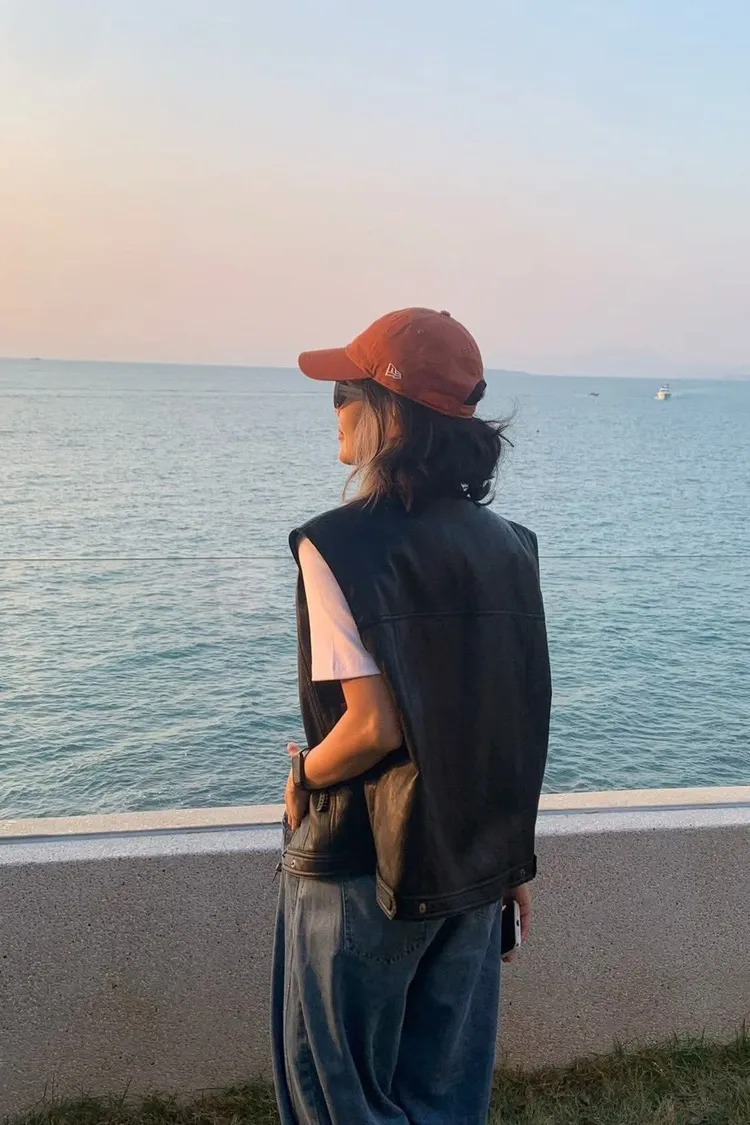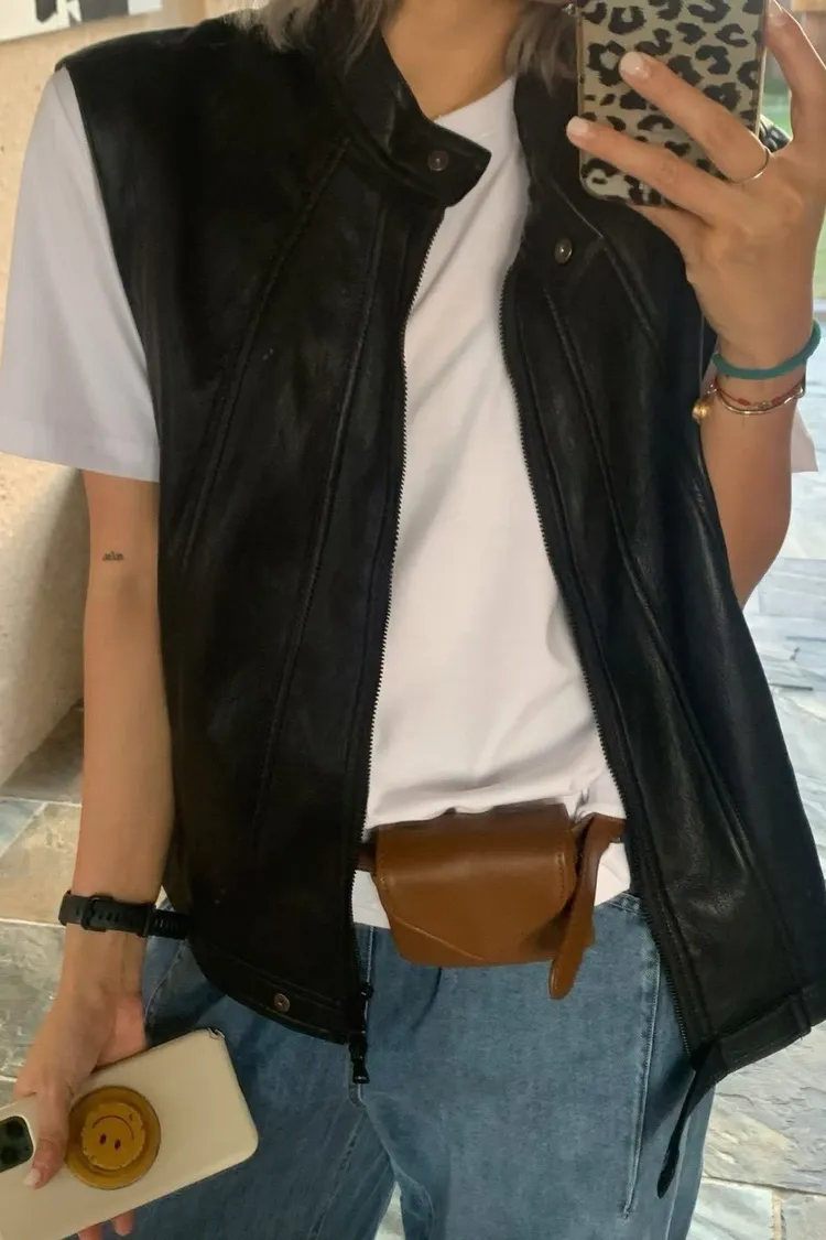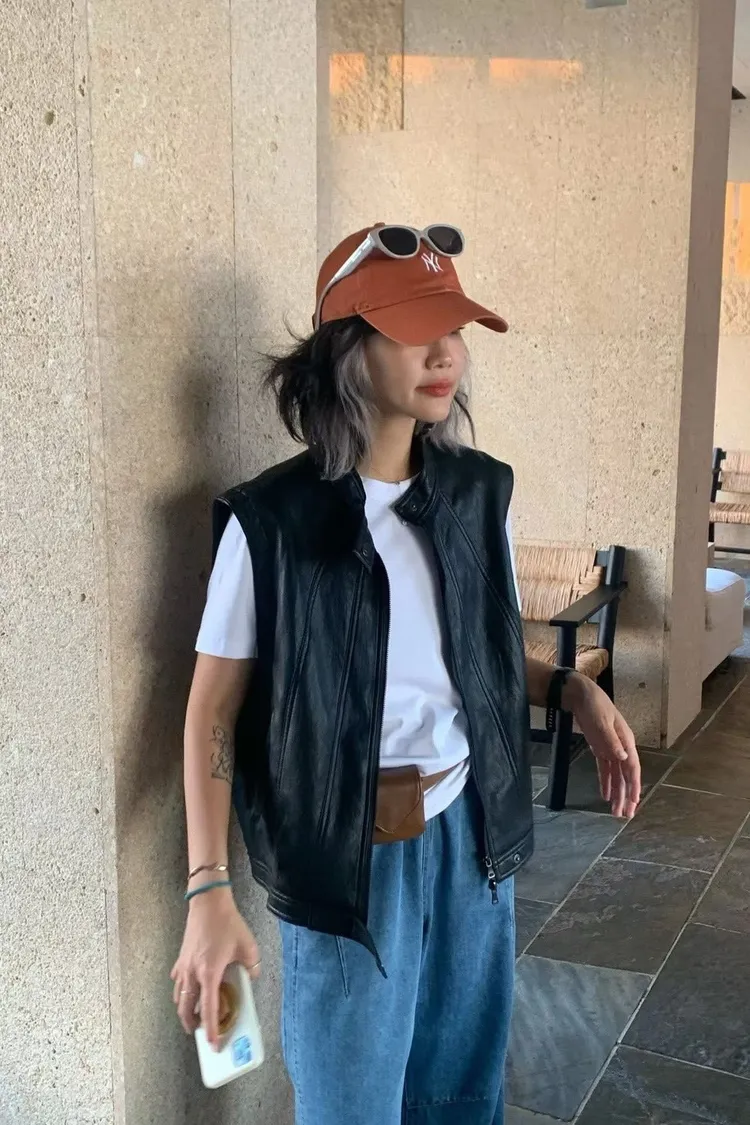 正韓法式隨性感皮革背心