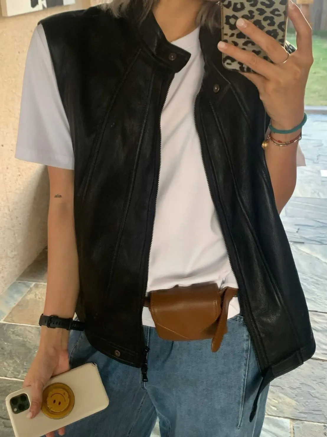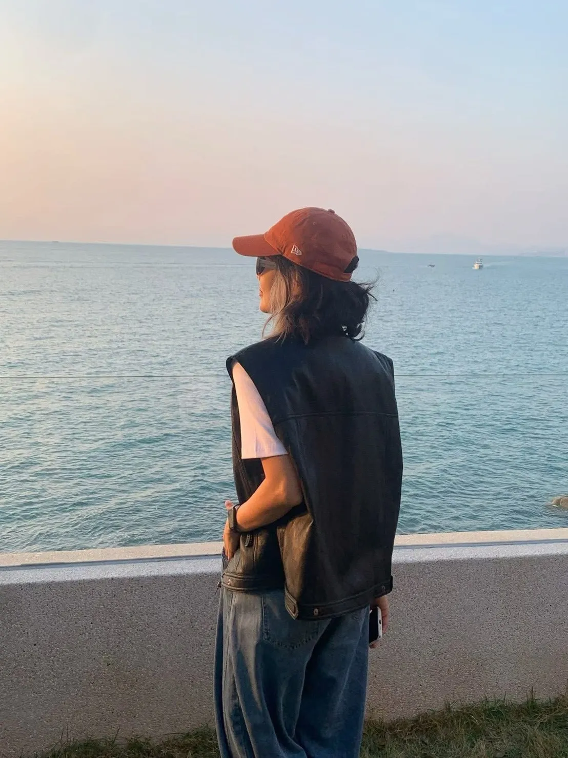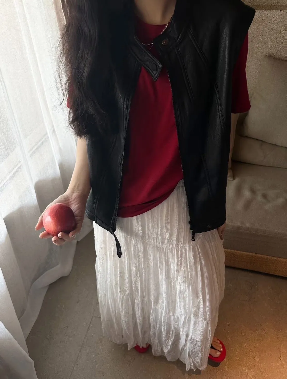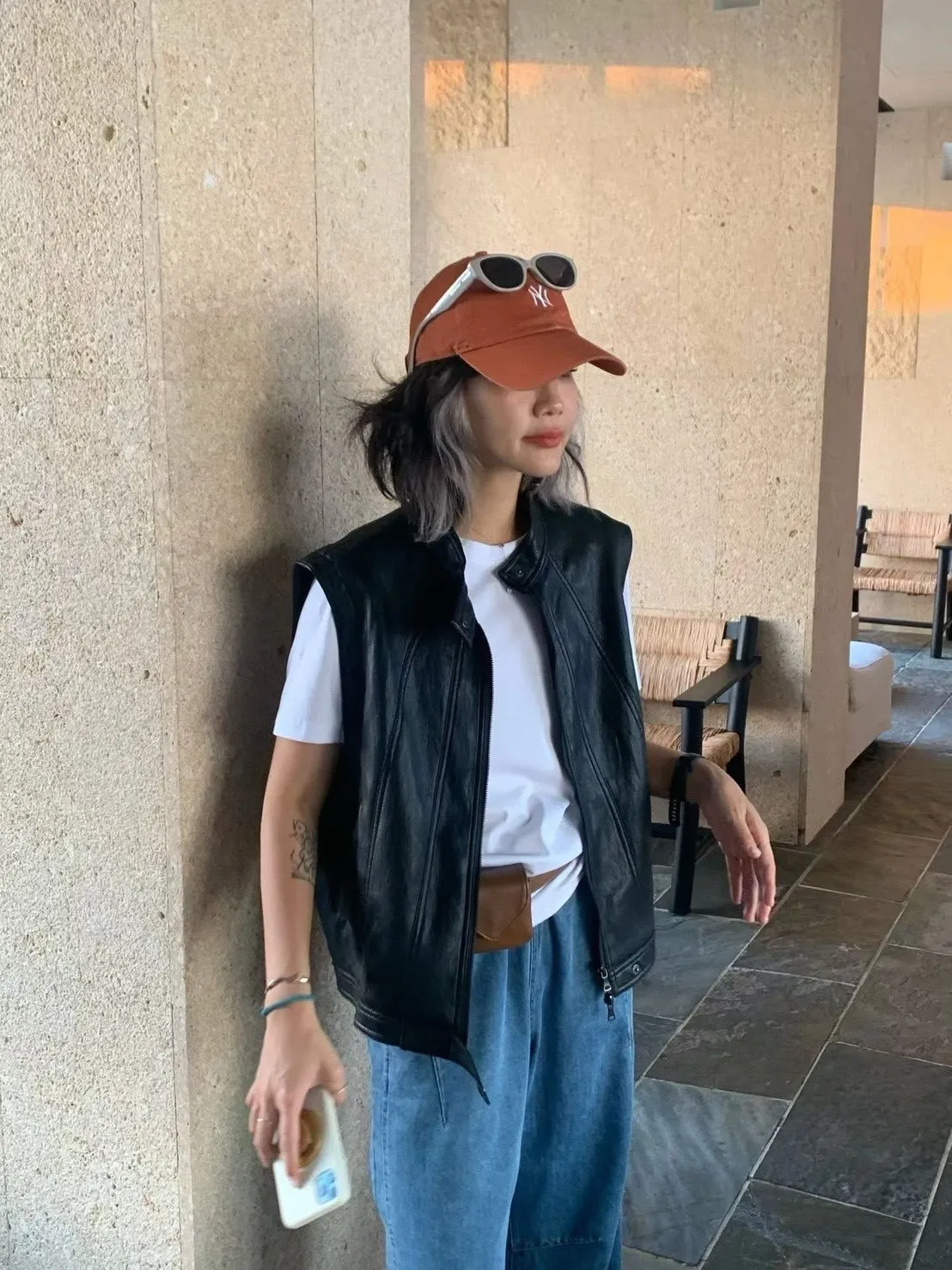 正韓法式隨性感皮革背心