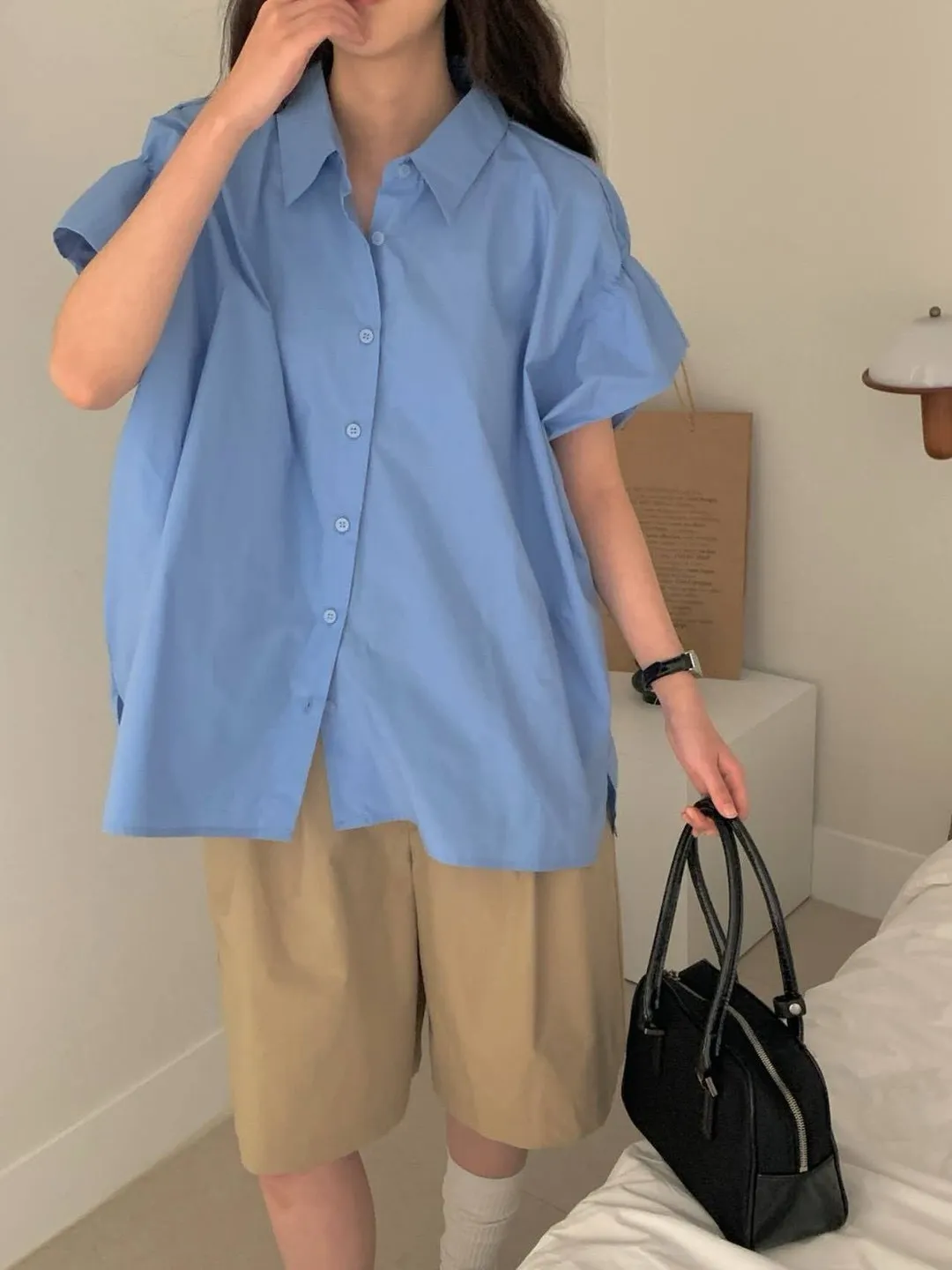 為了讓大家可以參考不同身形穿搭起來的感覺,本站會有實品拍攝及廠商照 如無法接受網路購物皆會有少許色差請自行衡量再做下單謝謝!! ●選擇店取的客人,務必下單後主動截圖訂單到官方LINE聯繫我們,這樣我們才可以到貨通知您來店取貨唷。 下單前須確實詳讀 本文內容 及 訂購須知(請點進去詳閱唷) 可接受者再下單,如下單即為同意以上需知!! 商品特色 喜歡正韓質感襯衫的 真的要看看這款 空氣感的蓬鬆度+好看的袖子細節 保證你滿意