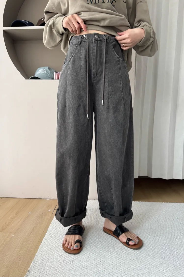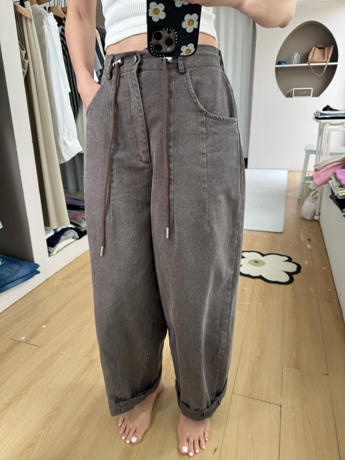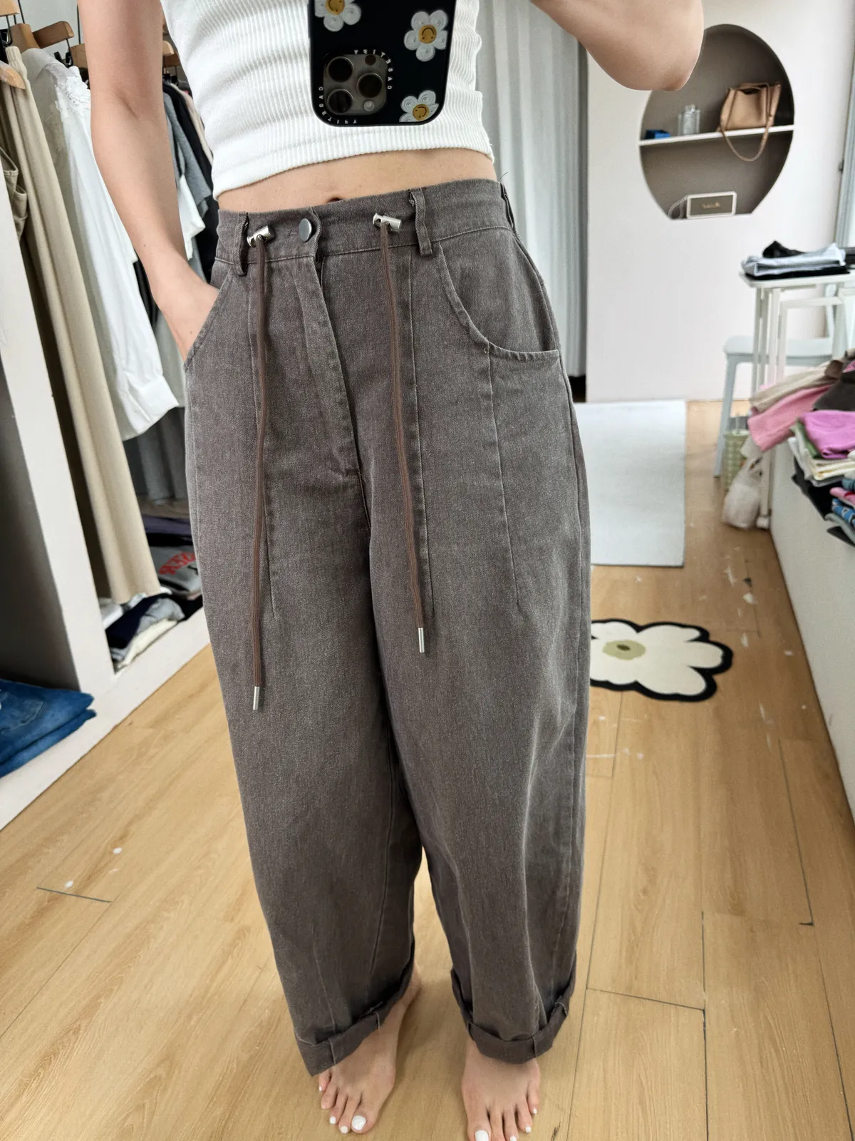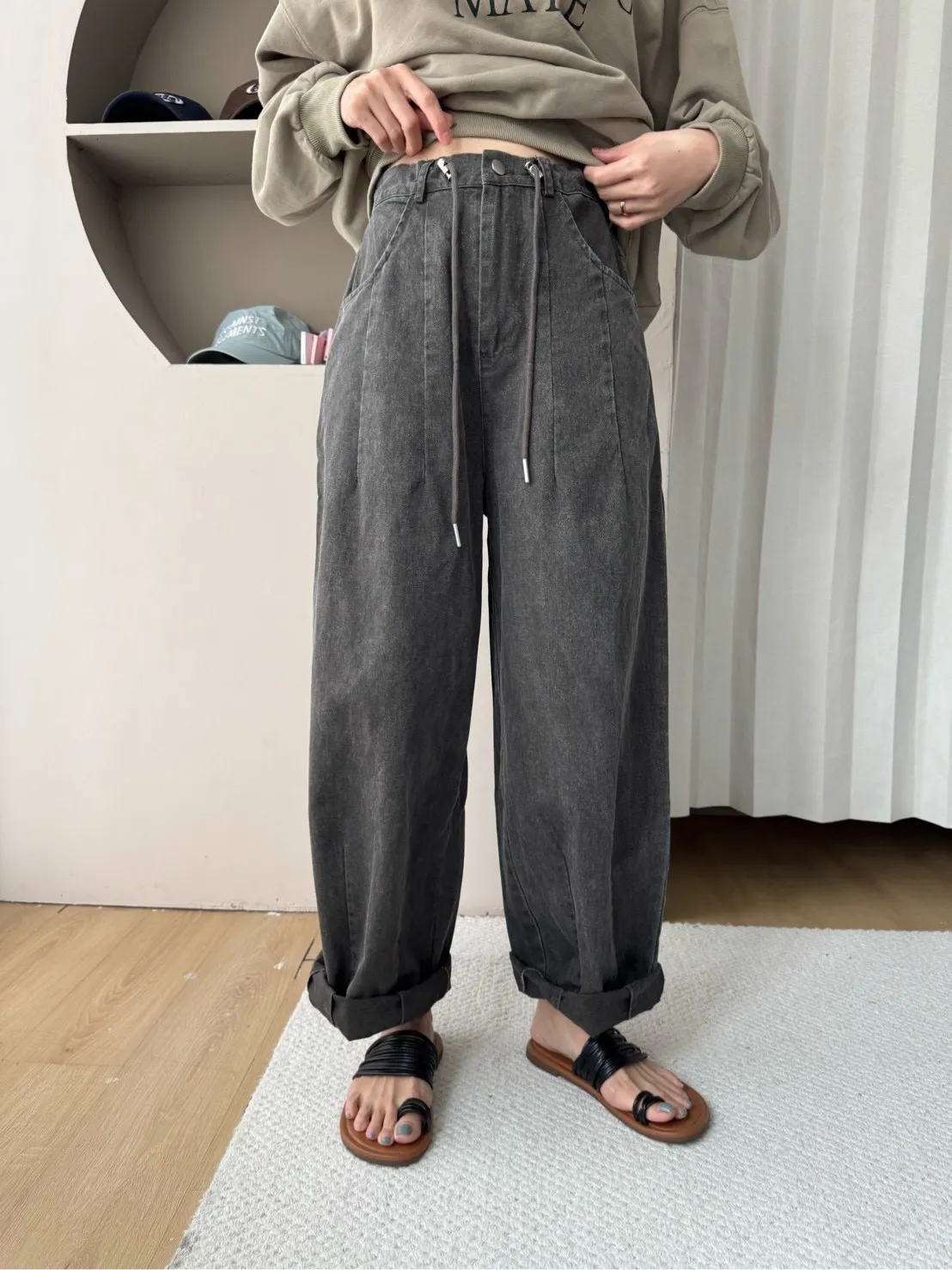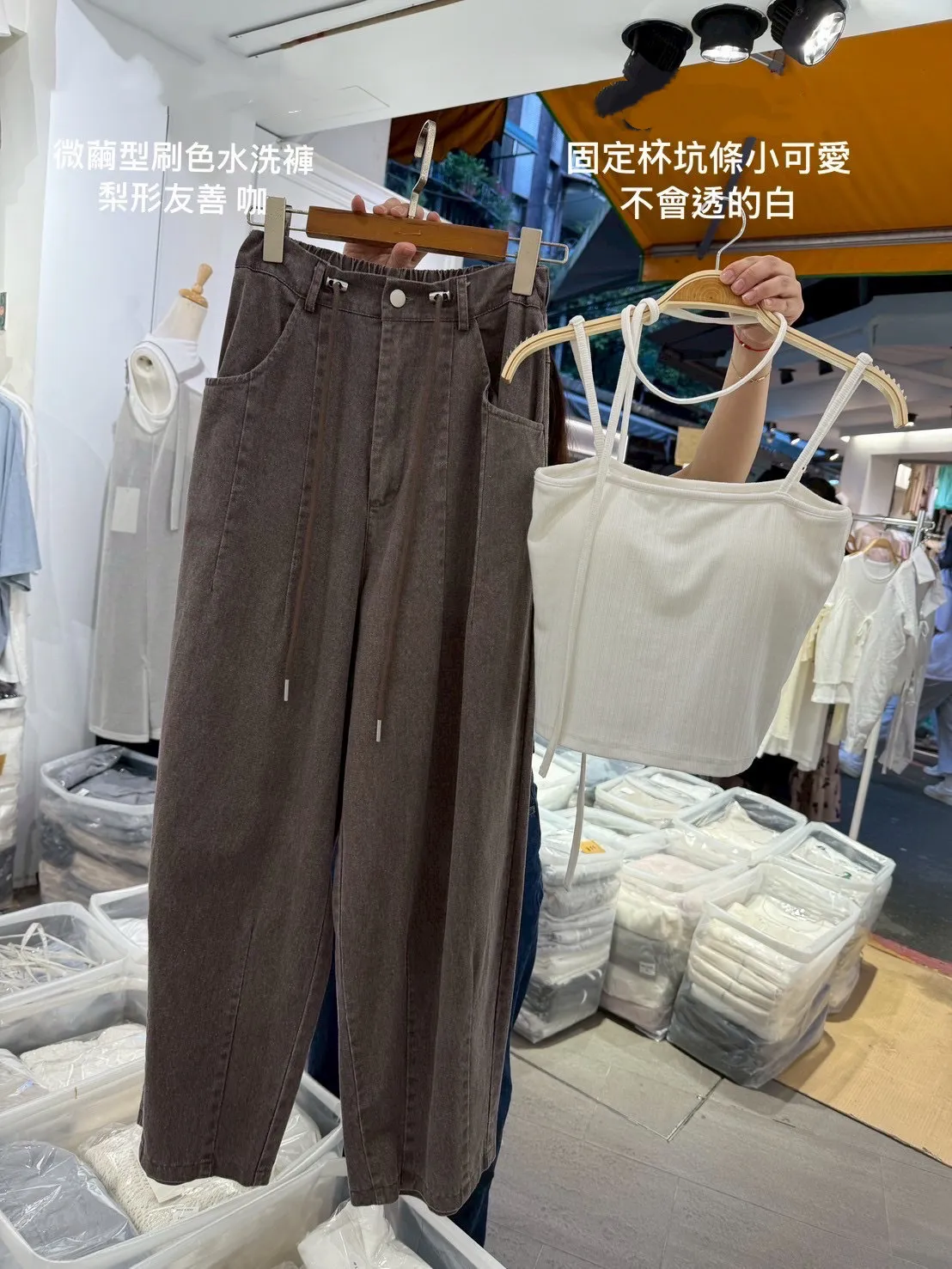 材質是經過水洗的牛仔棉超級舒適,腰頭可以自己控制鬆緊