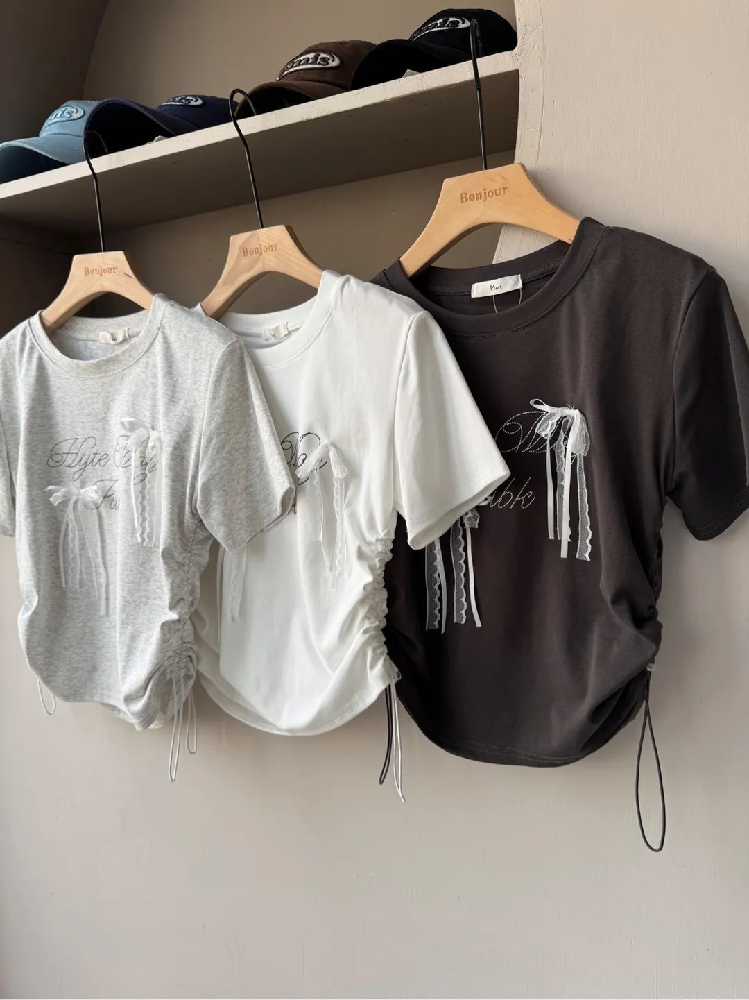 為了讓大家可以參考不同身形穿搭起來的感覺,本站會有實品拍攝及廠商照 如無法接受網路購物皆會有少許色差請自行衡量再做下單謝謝!! ●選擇店取的客人,務必下單後主動截圖訂單到官方LINE聯繫我們,這樣我們才可以到貨通知您來店取貨唷。 下單前須確實詳讀 本文內容 及 訂購須知(請點進去詳閱唷) 可接受者再下單,如下單即為同意以上需知!! 商品特色 大推~~~ 很仙很純欲的一款短T 側抽繩可以自己決定皺度 上身版型很好看耶(也也不會太短)