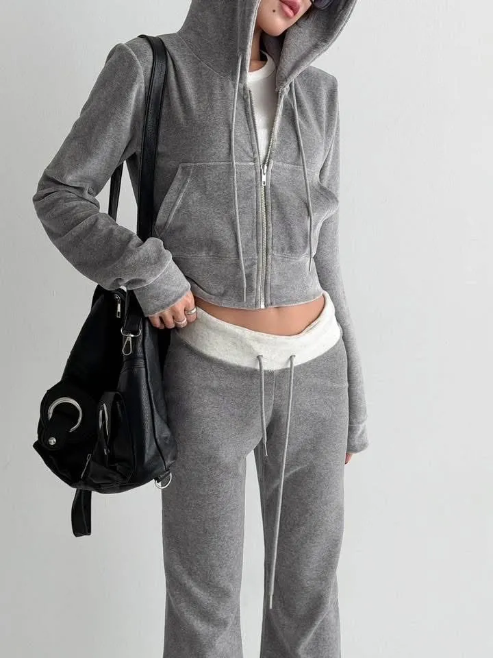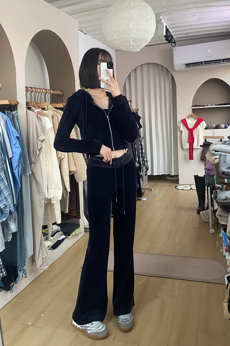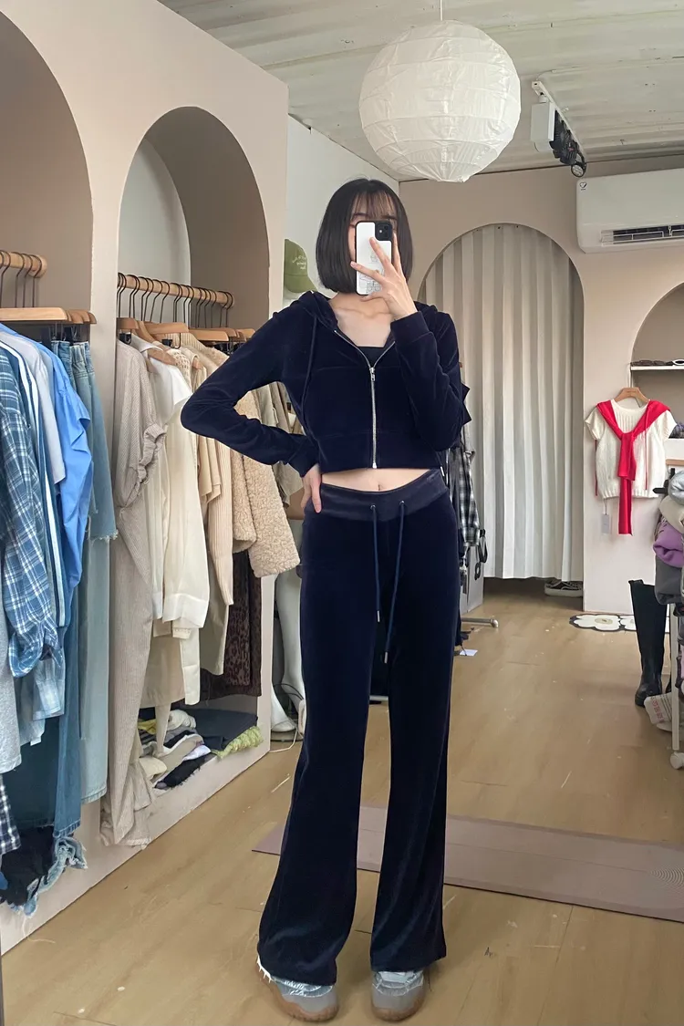 正韓絨布微喇叭褲