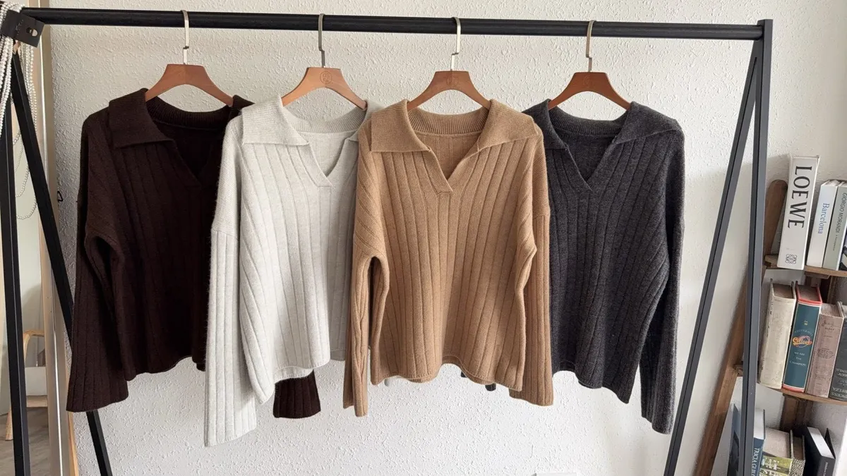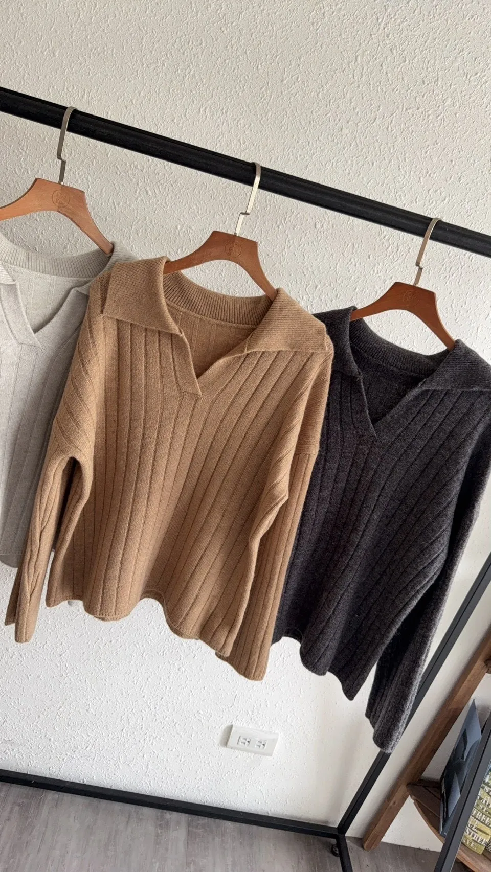 柔軟針織與極簡翻領設計交織出高級感氛圍✨