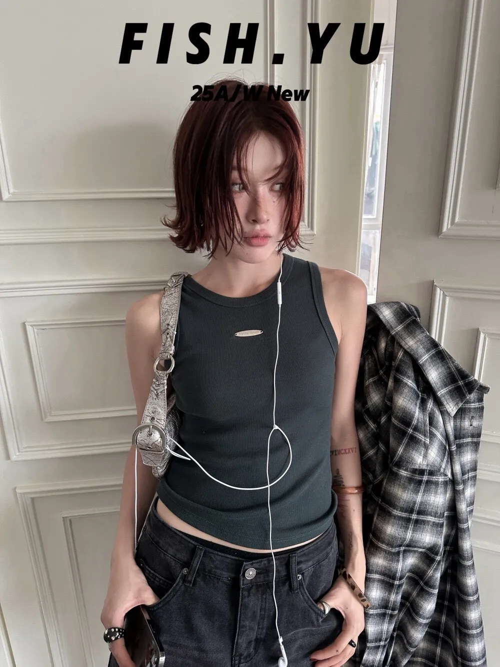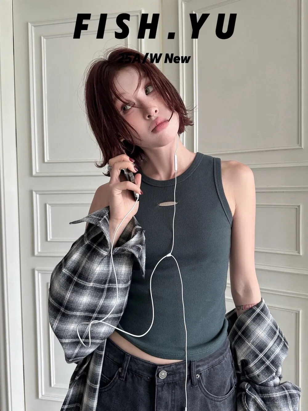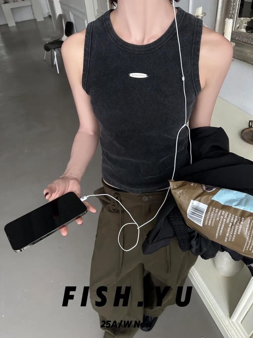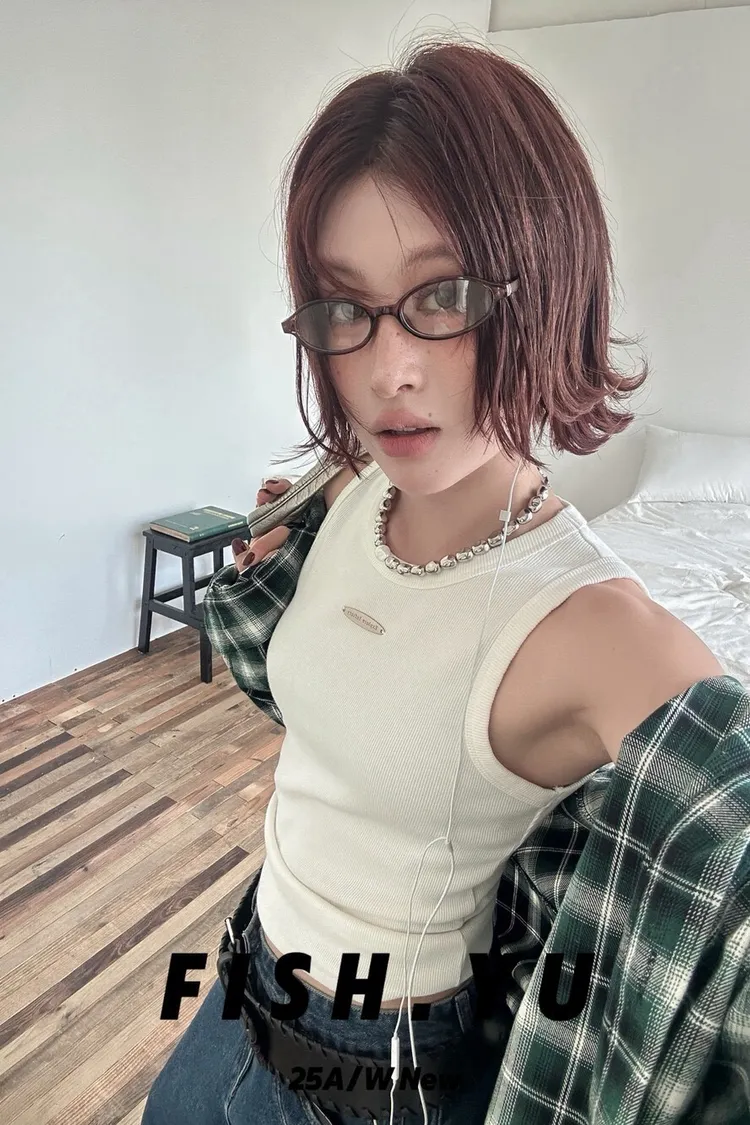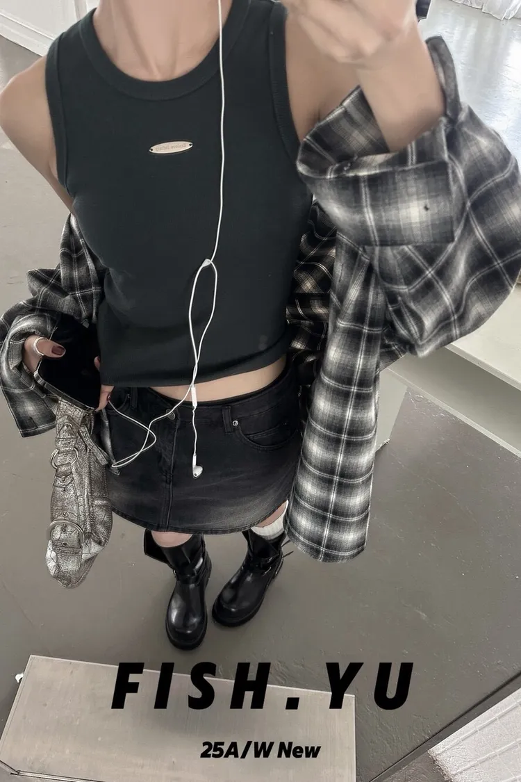 美式字母小貼標水洗炒色彈力緊身背心