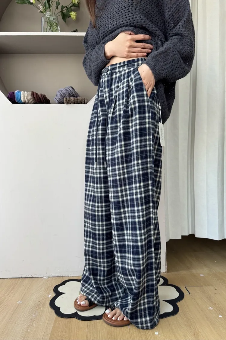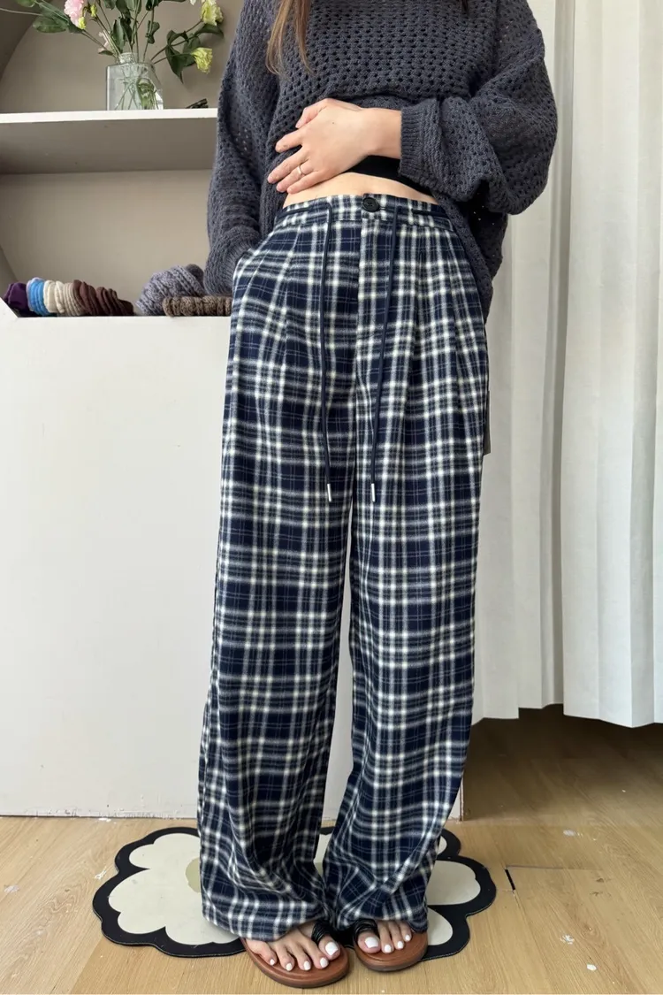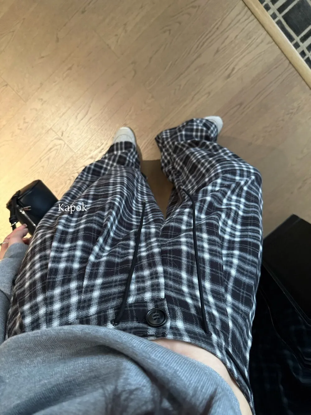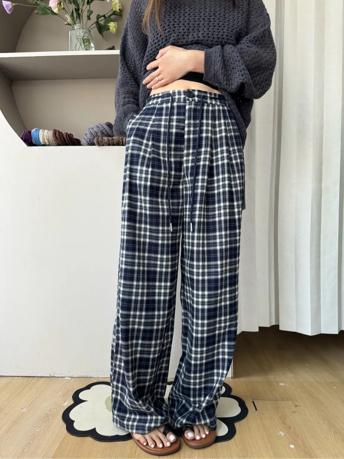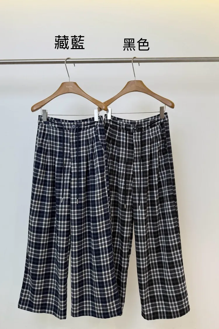 磨毛腰頭抽繩百搭格子休閒長褲休閒褲