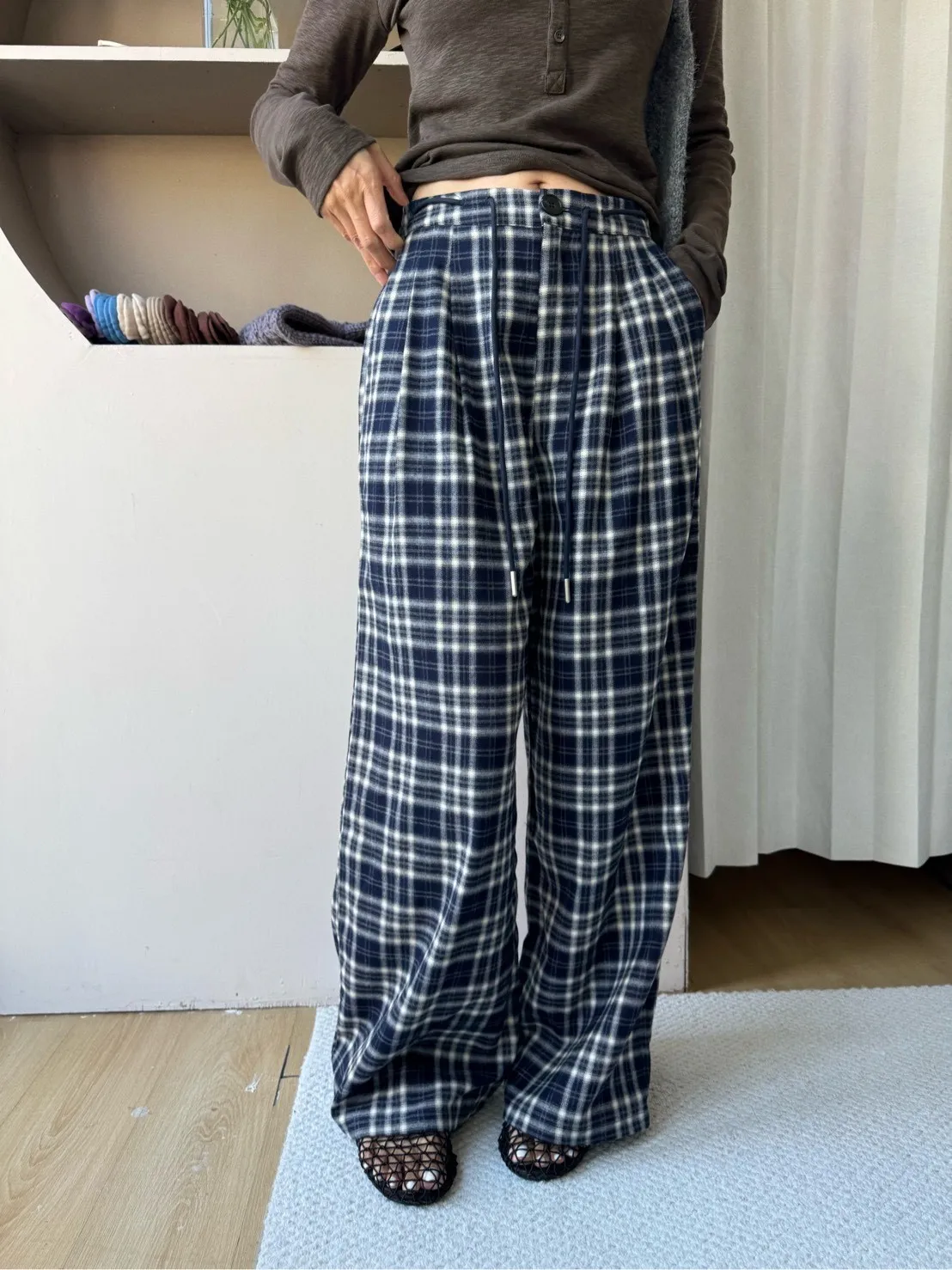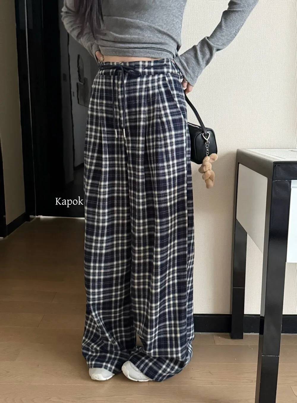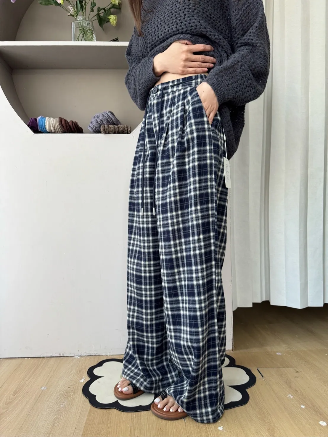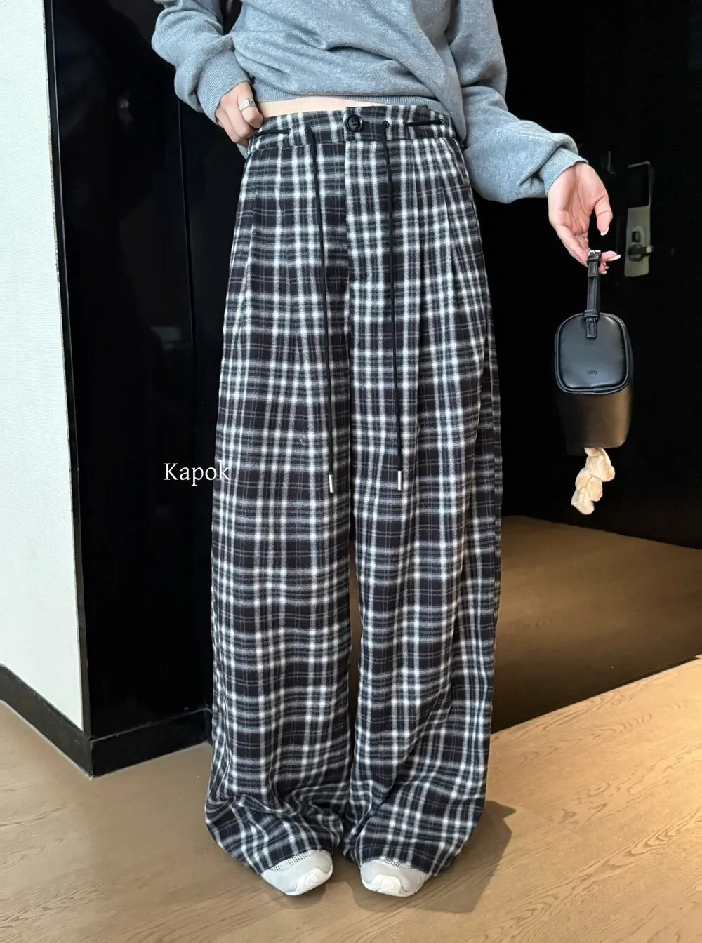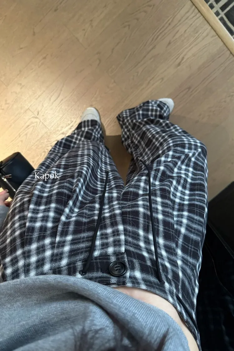 磨毛腰頭抽繩百搭格子休閒長褲休閒褲