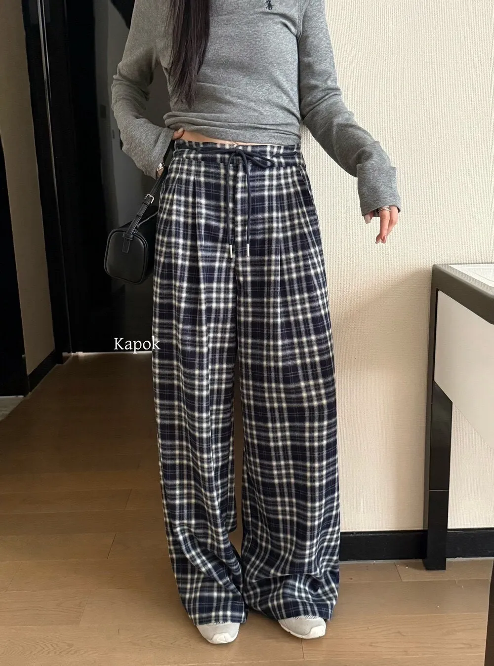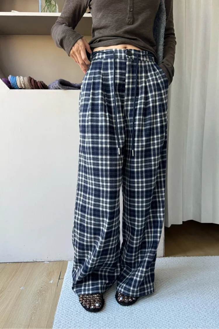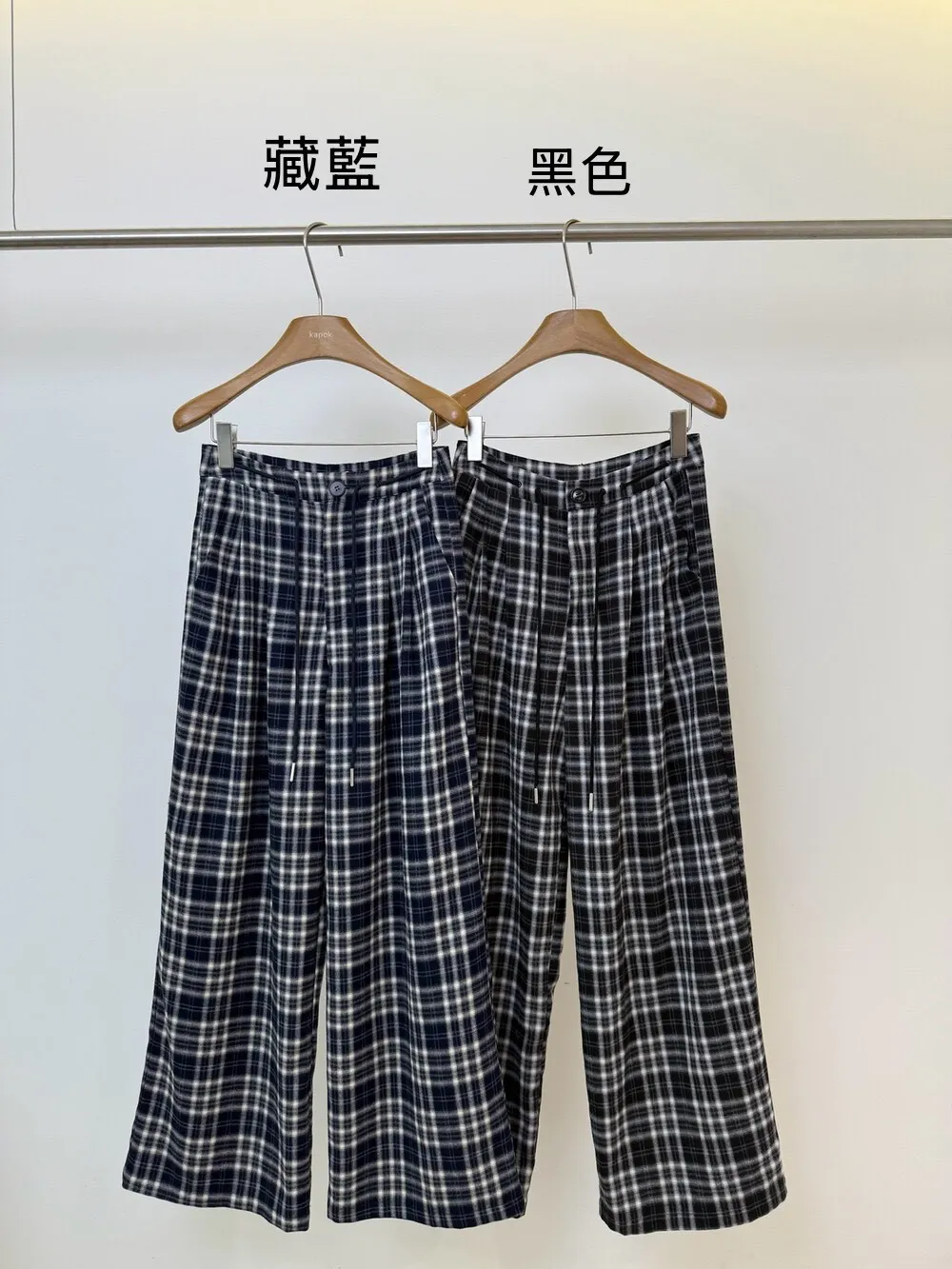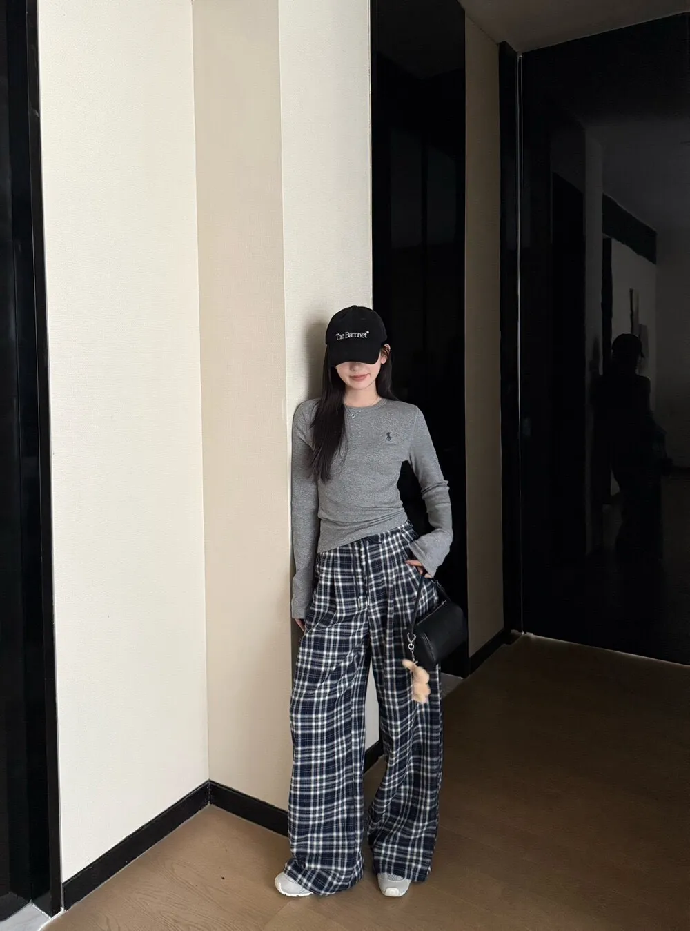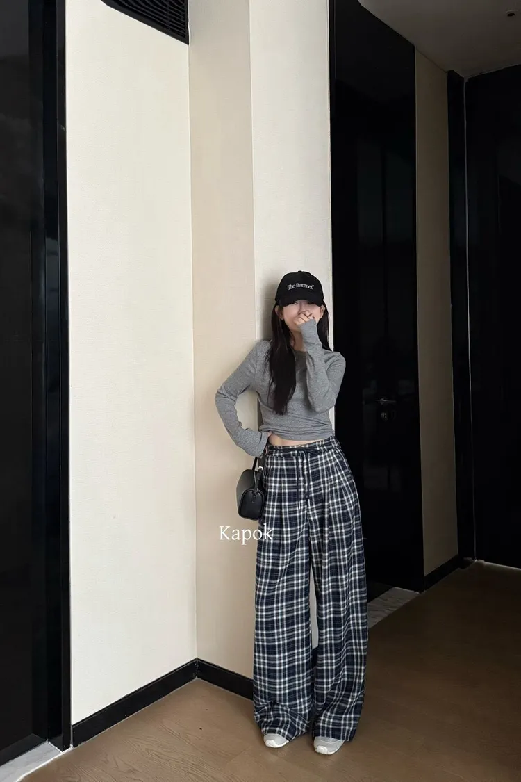 磨毛腰頭抽繩百搭格子休閒長褲休閒褲