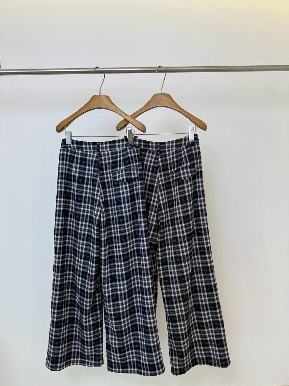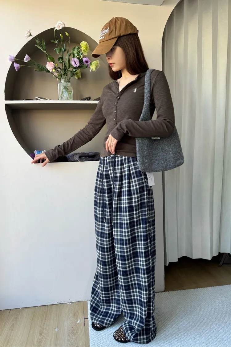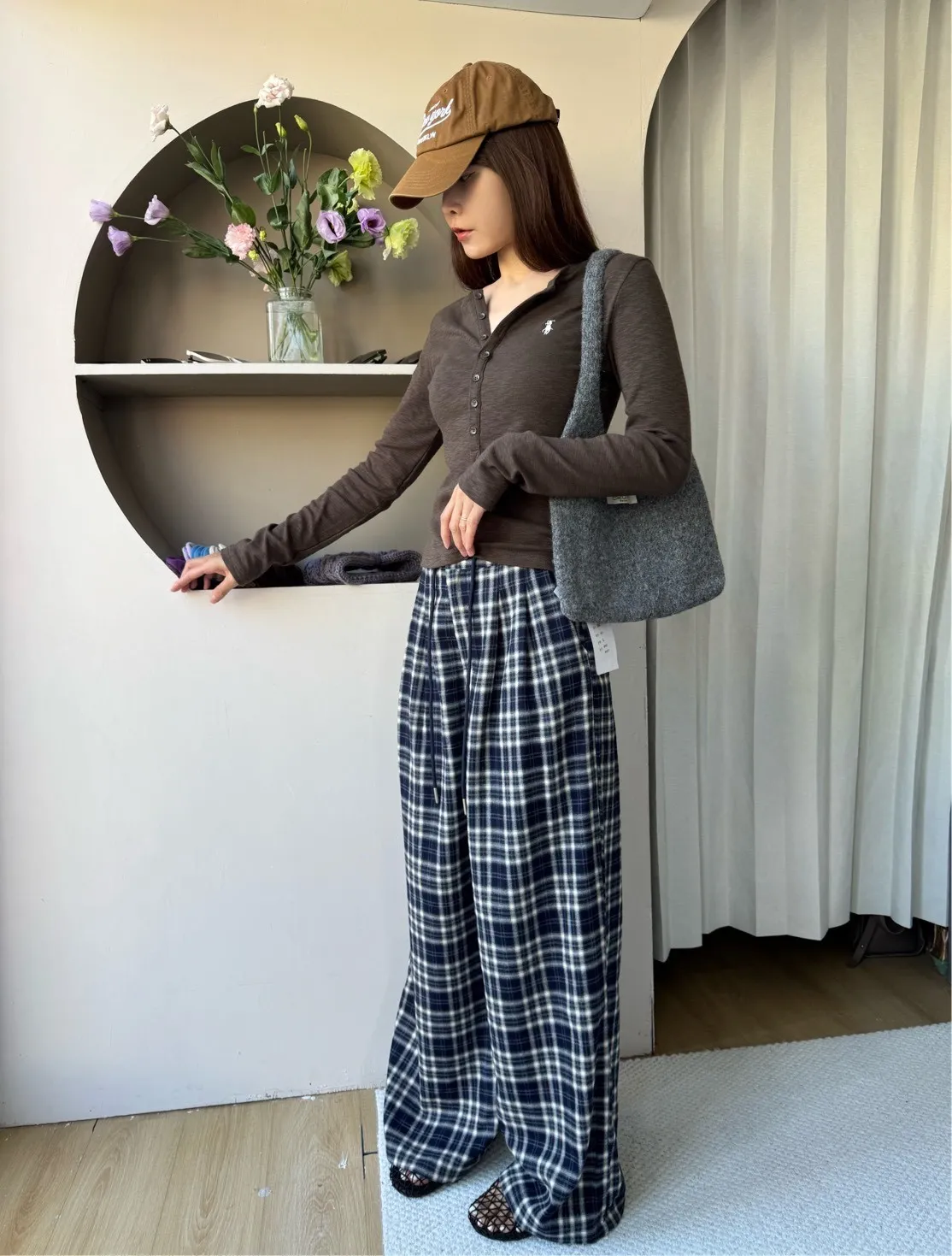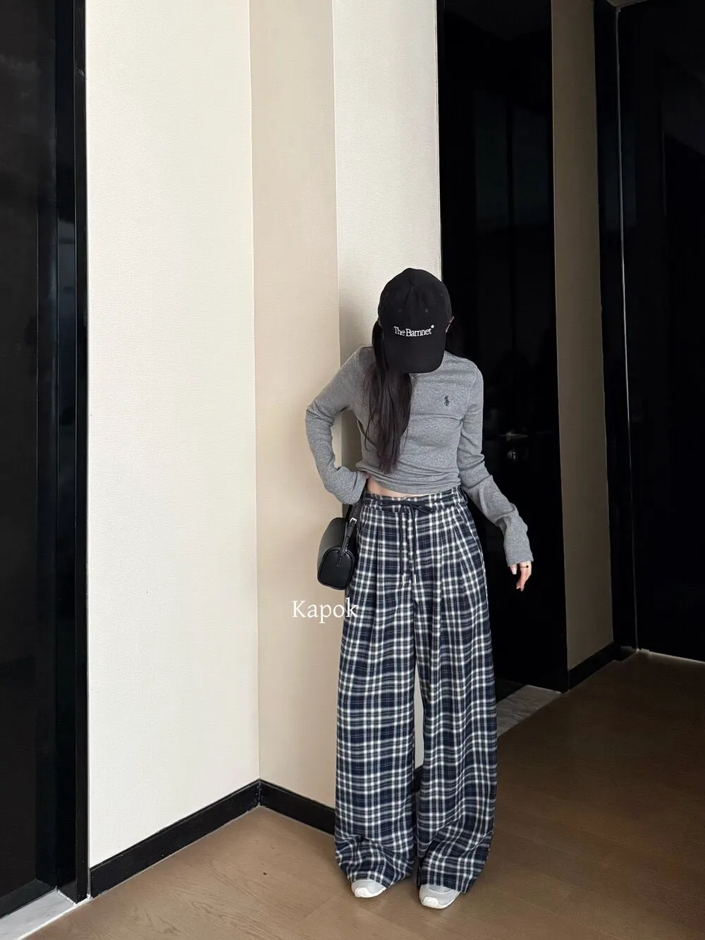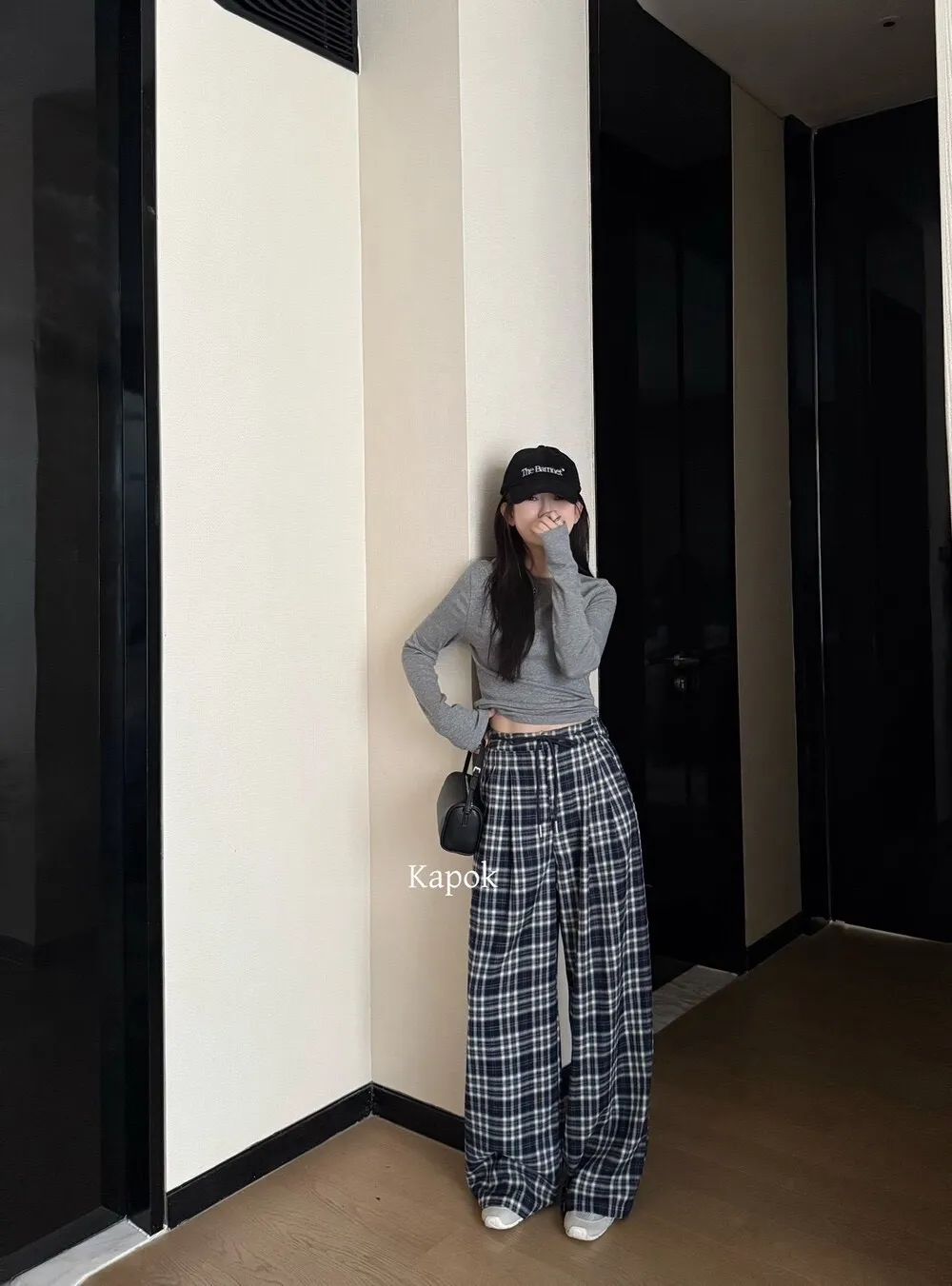 磨毛腰頭抽繩百搭格子休閒長褲休閒褲