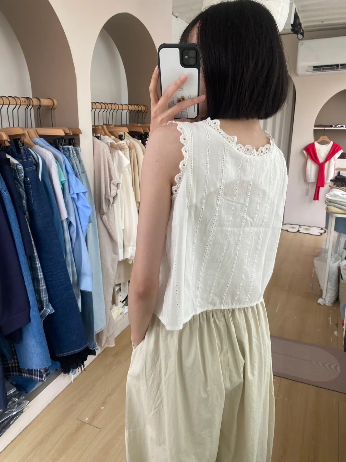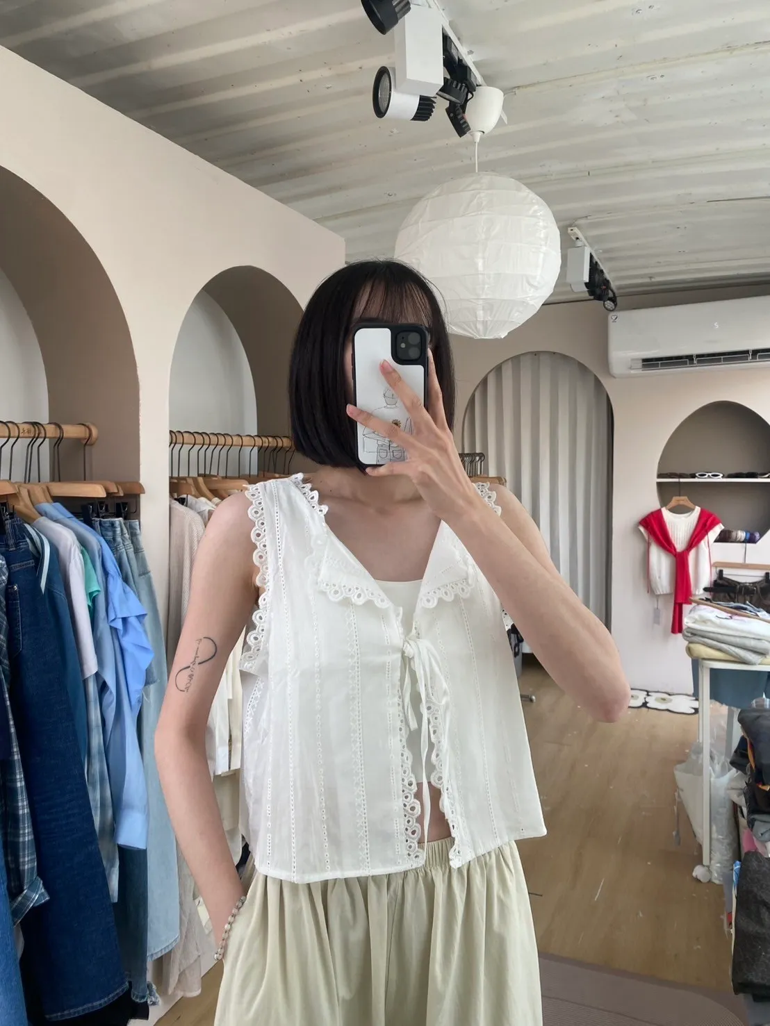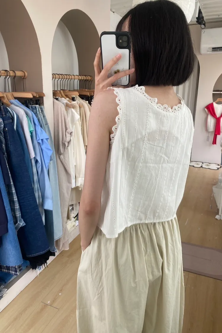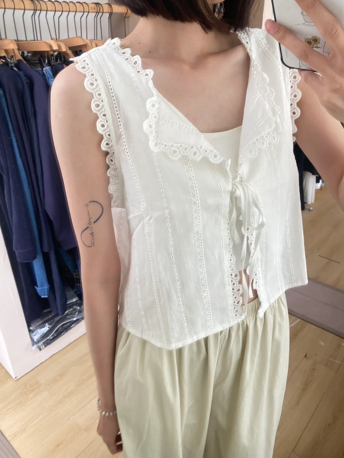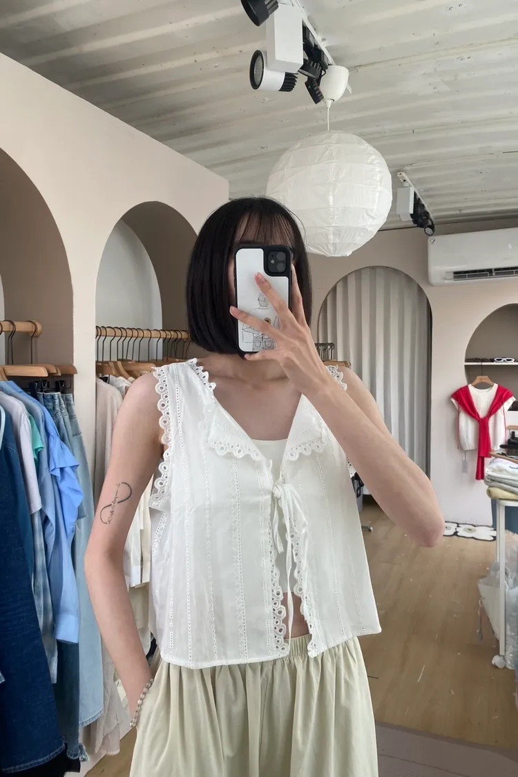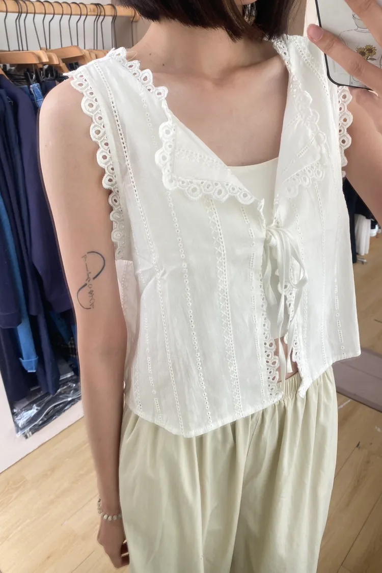 前綁帶鏤空緹花刺繡衫