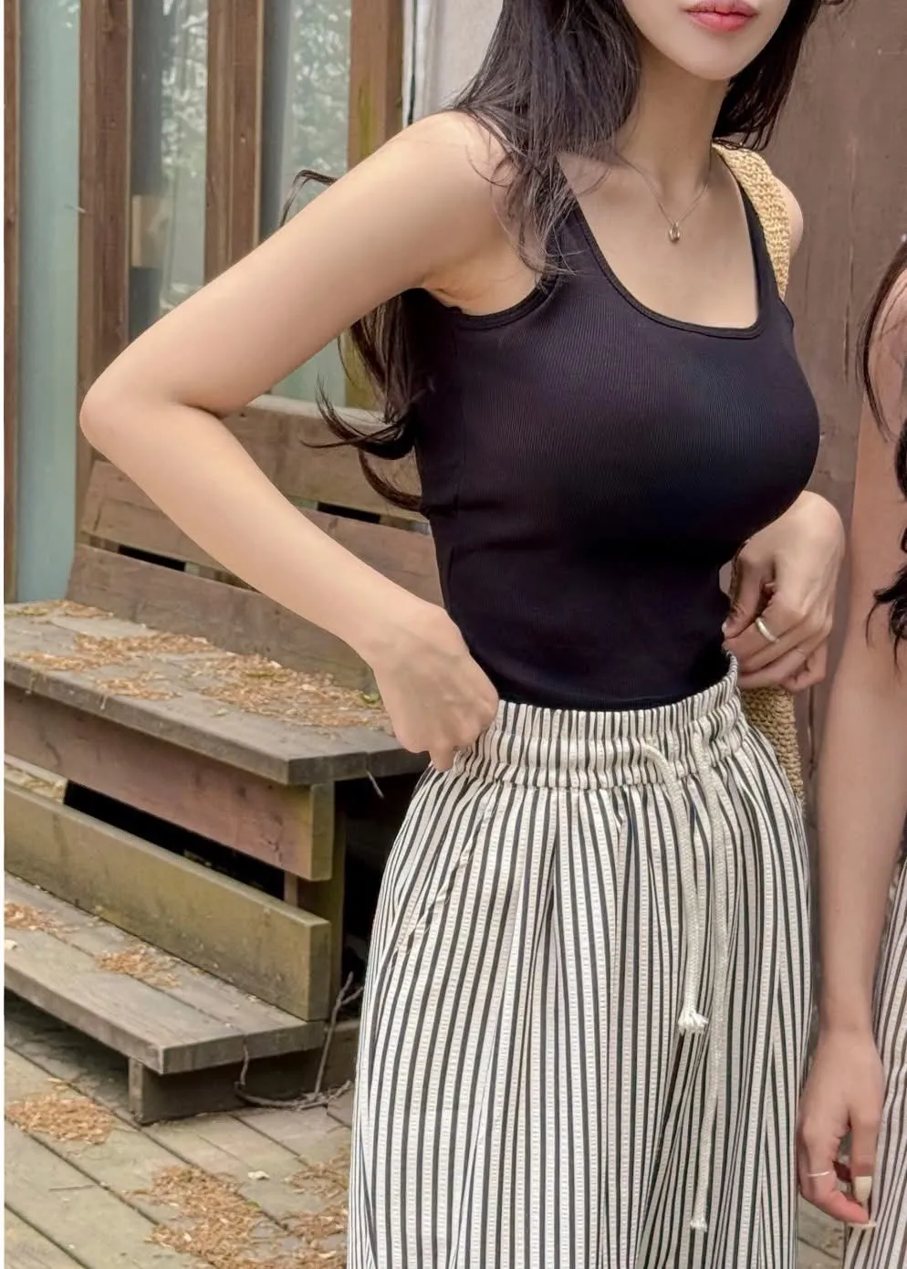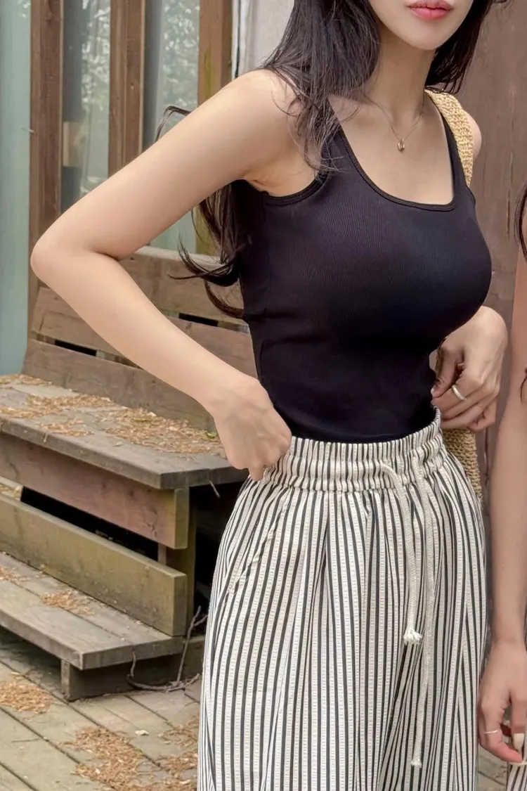 布料有彈性不勒肉,搭高腰褲+小外套也很有女人味,