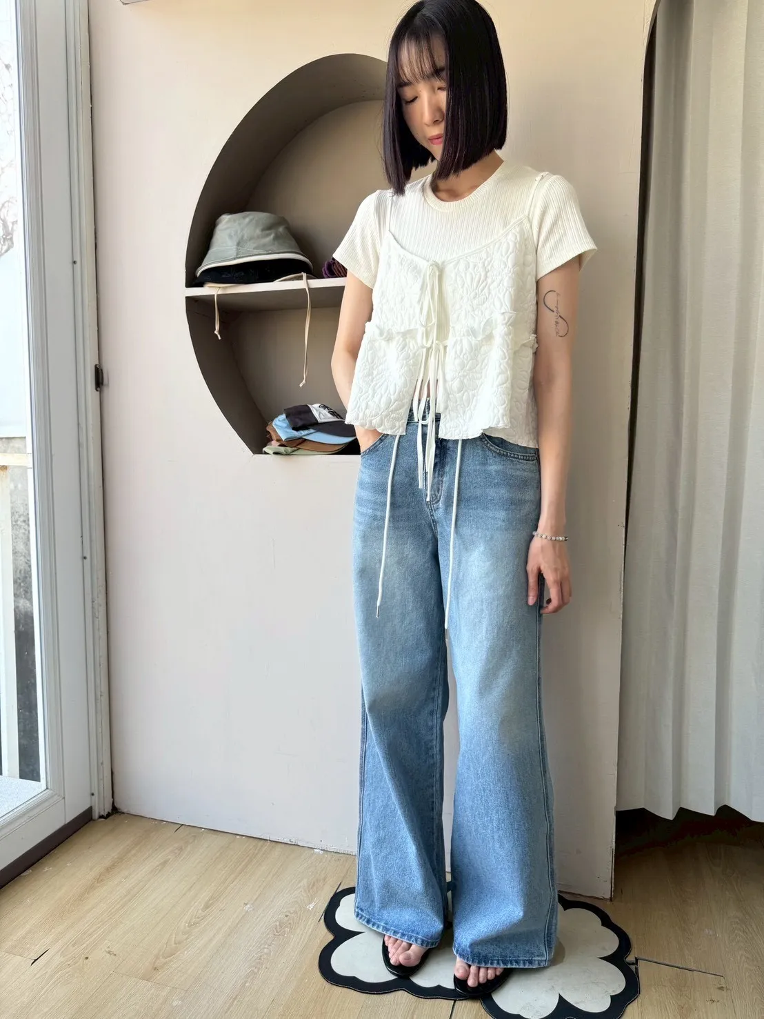 為了讓大家可以參考不同身形穿搭起來的感覺,本站會有實品拍攝及廠商照 如無法接受網路購物皆會有少許色差請自行衡量再做下單謝謝!! ●選擇店取的客人,務必下單後主動截圖訂單到官方LINE聯繫我們,這樣我們才可以到貨通知您來店取貨唷。 下單前須確實詳讀 本文內容 及 訂購須知 可接受者再下單,如下單即為同意以上需知!! 商品特色 前綁帶設計 多了一點鬆弛感 清新日系風 用來疊穿超有層次