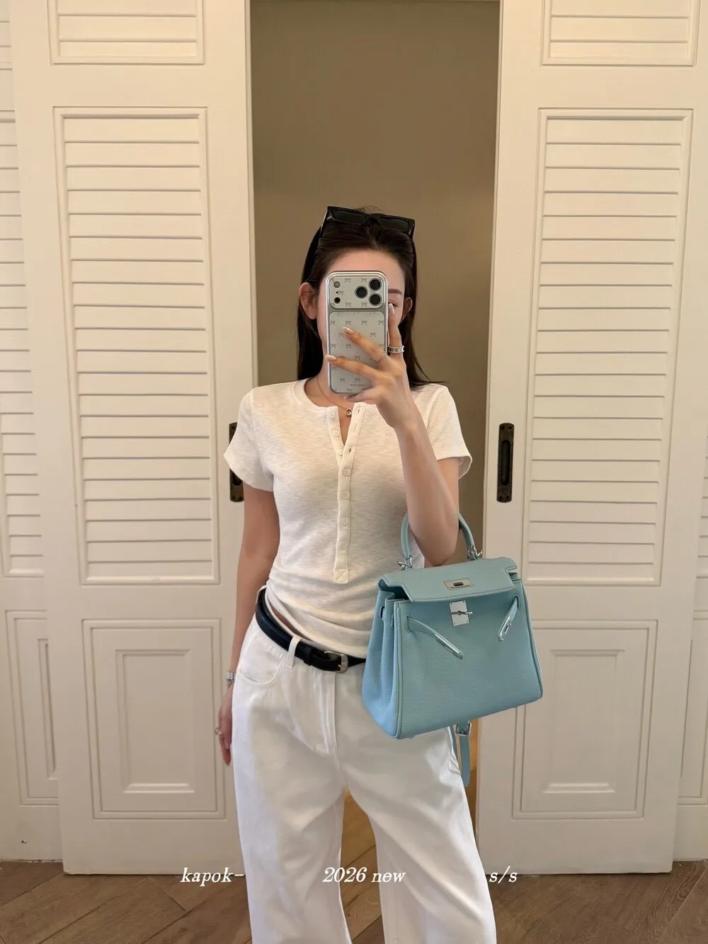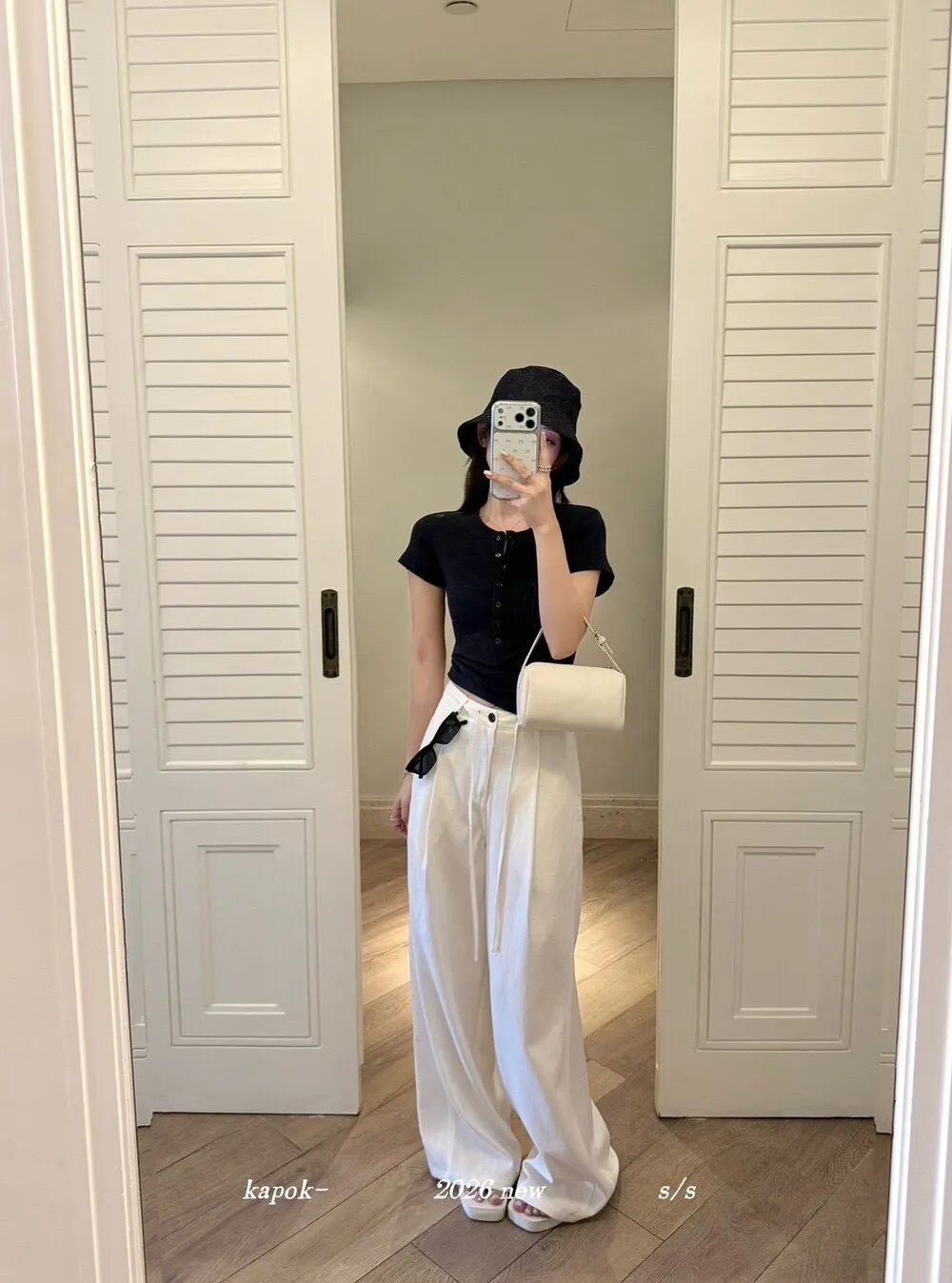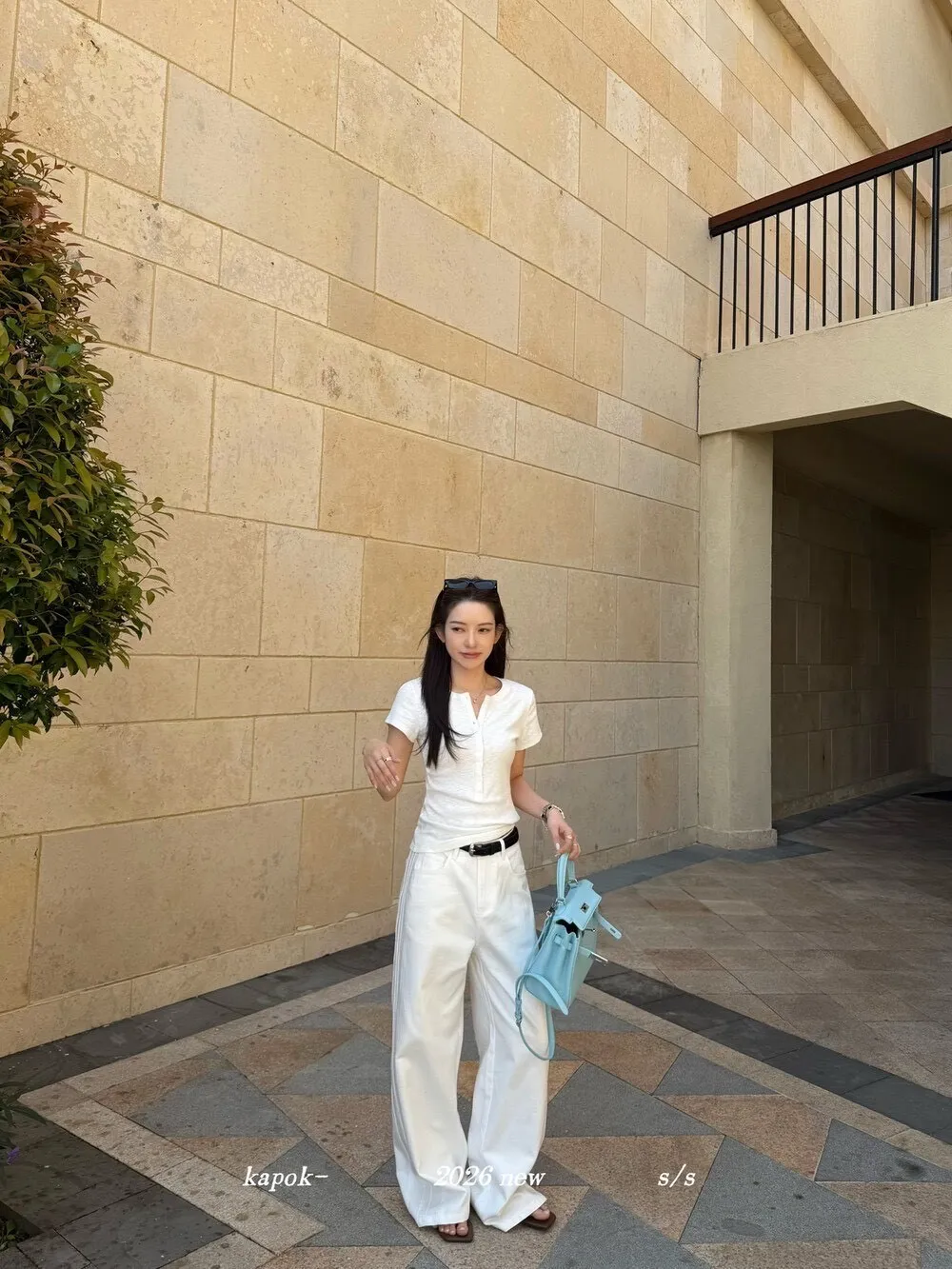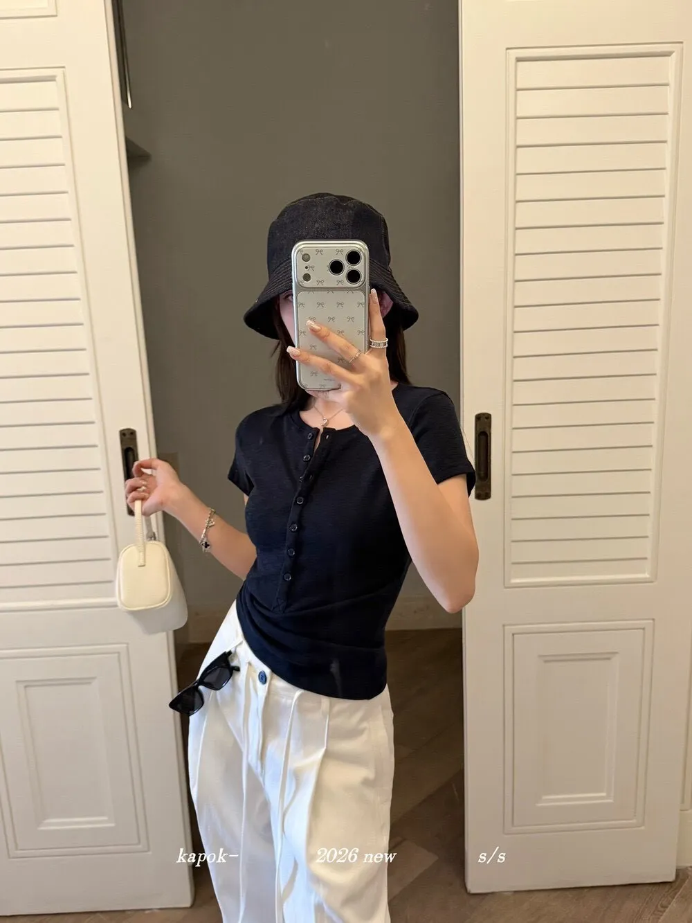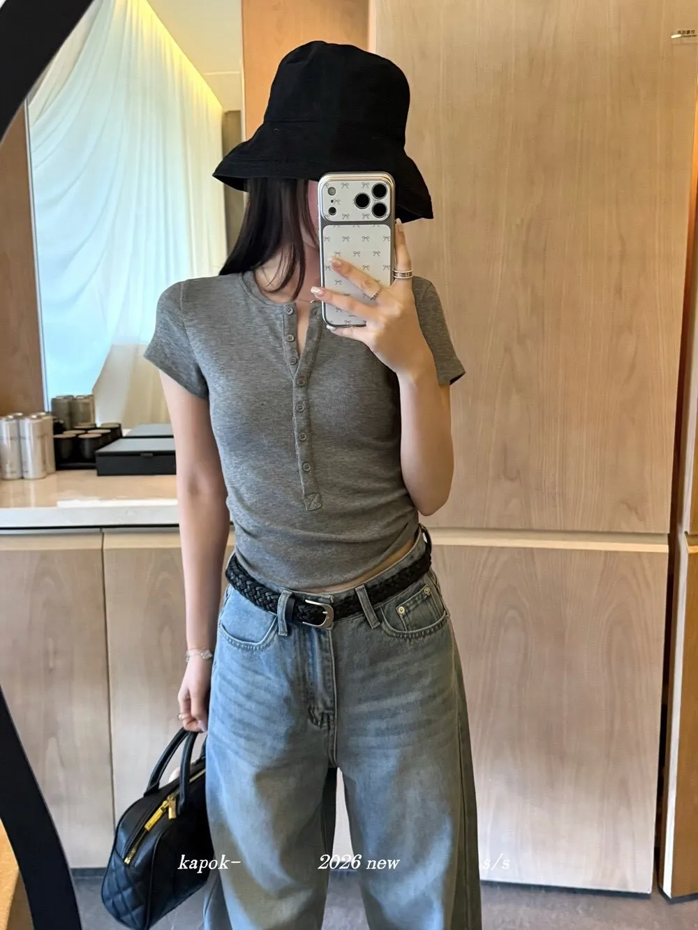 韓系正肩百搭修身半開扣短袖T恤