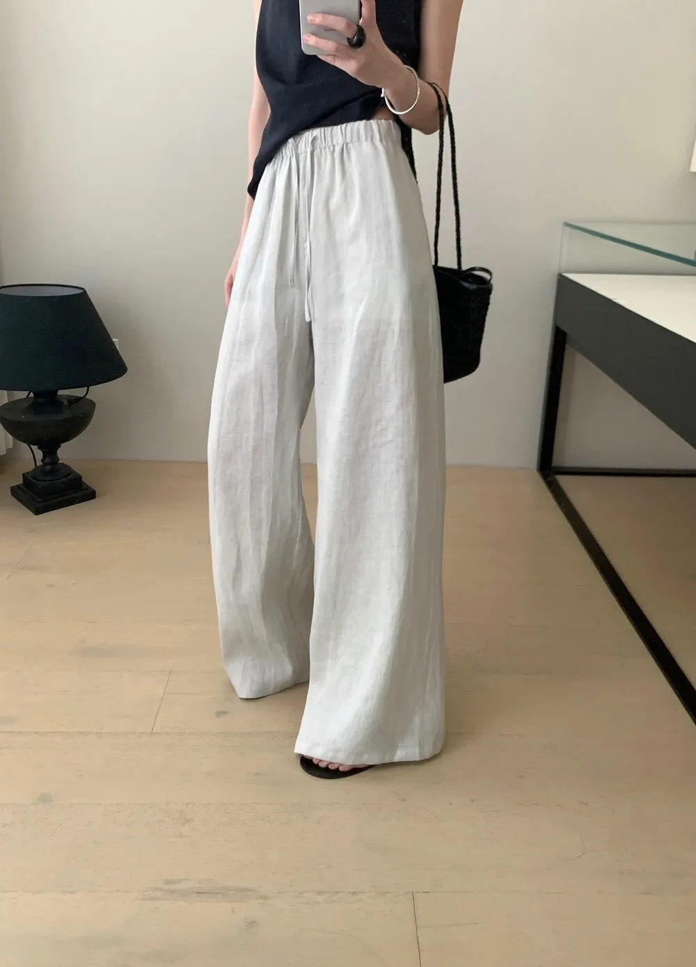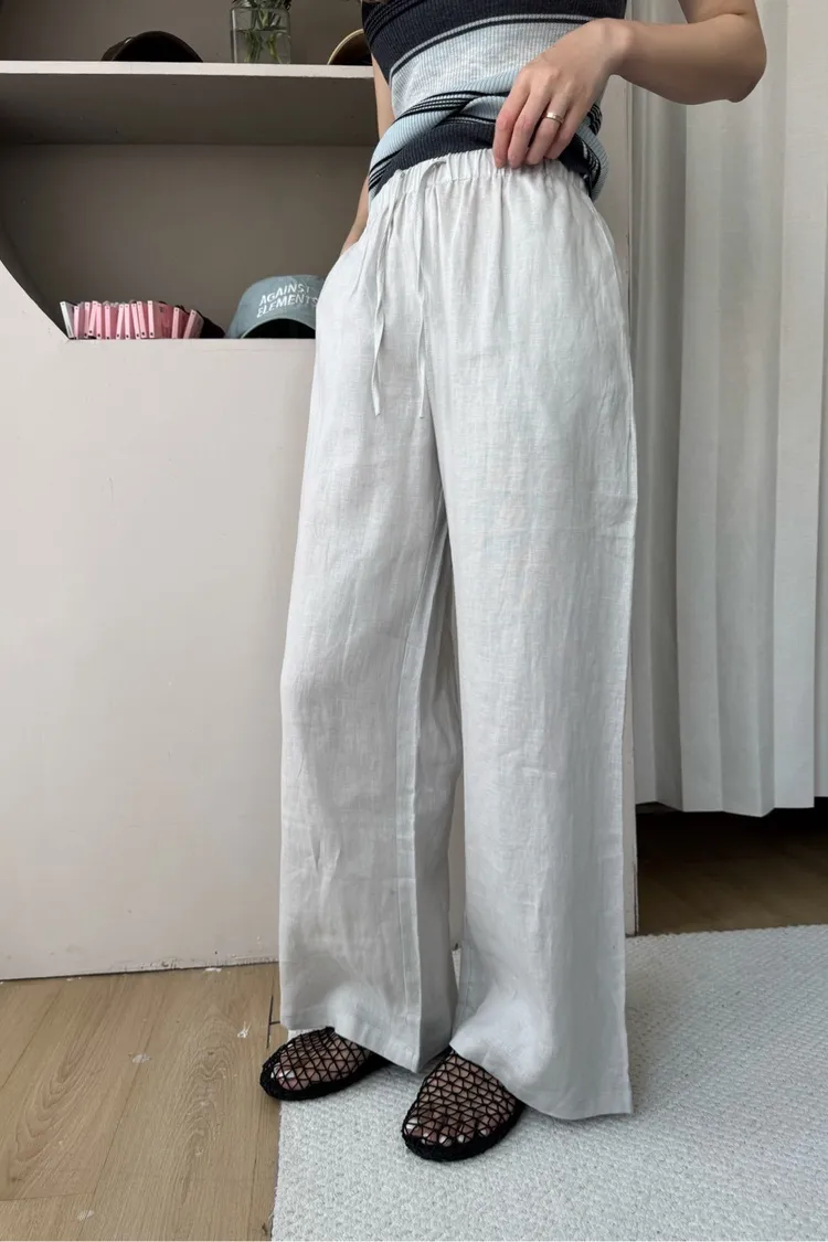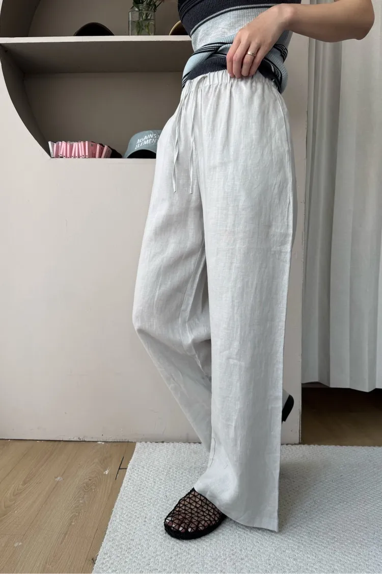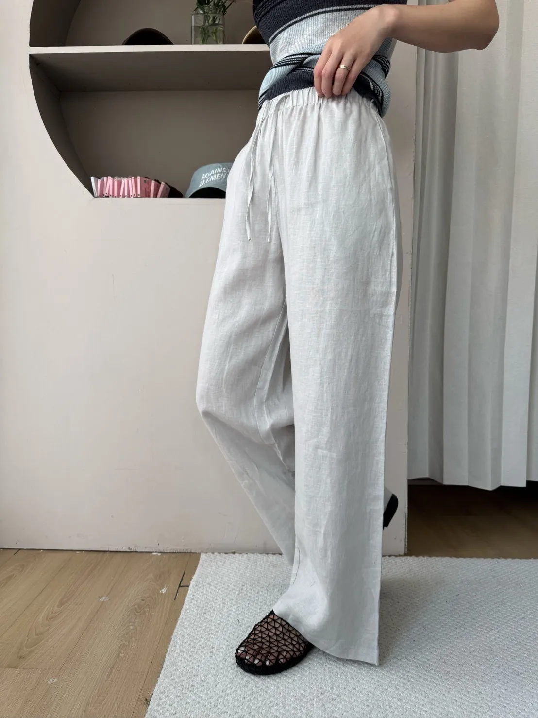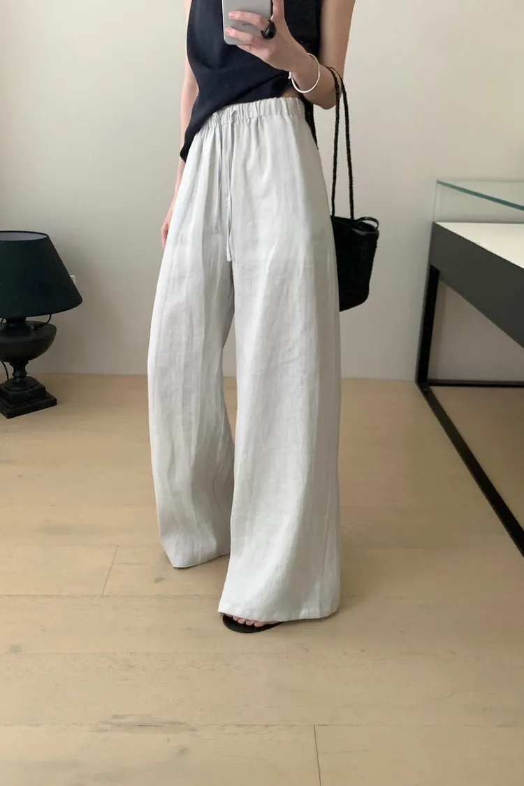薄款亞麻休閒百搭顯瘦氣質直筒闊腿慵懶鬆弛休閒褲