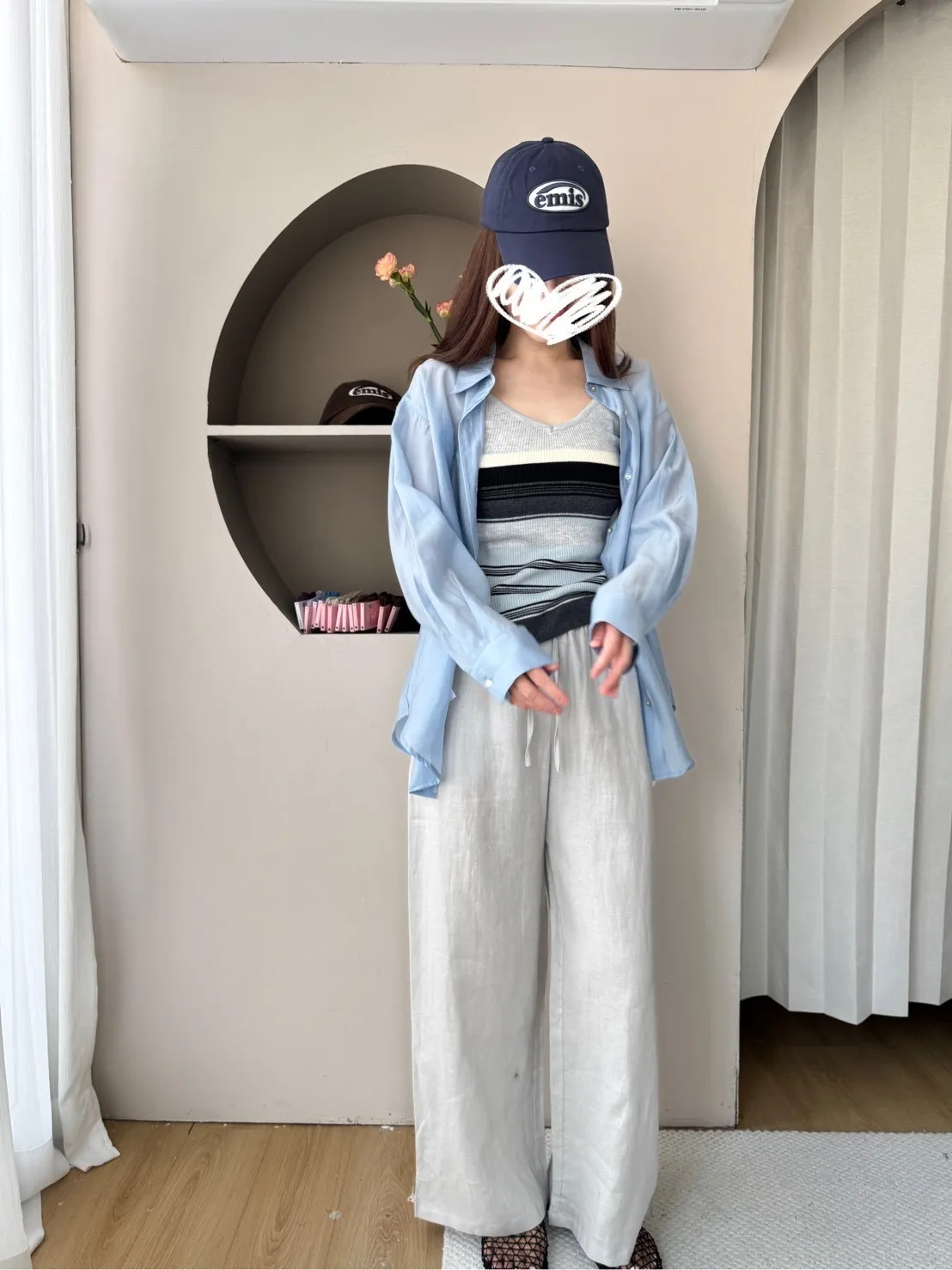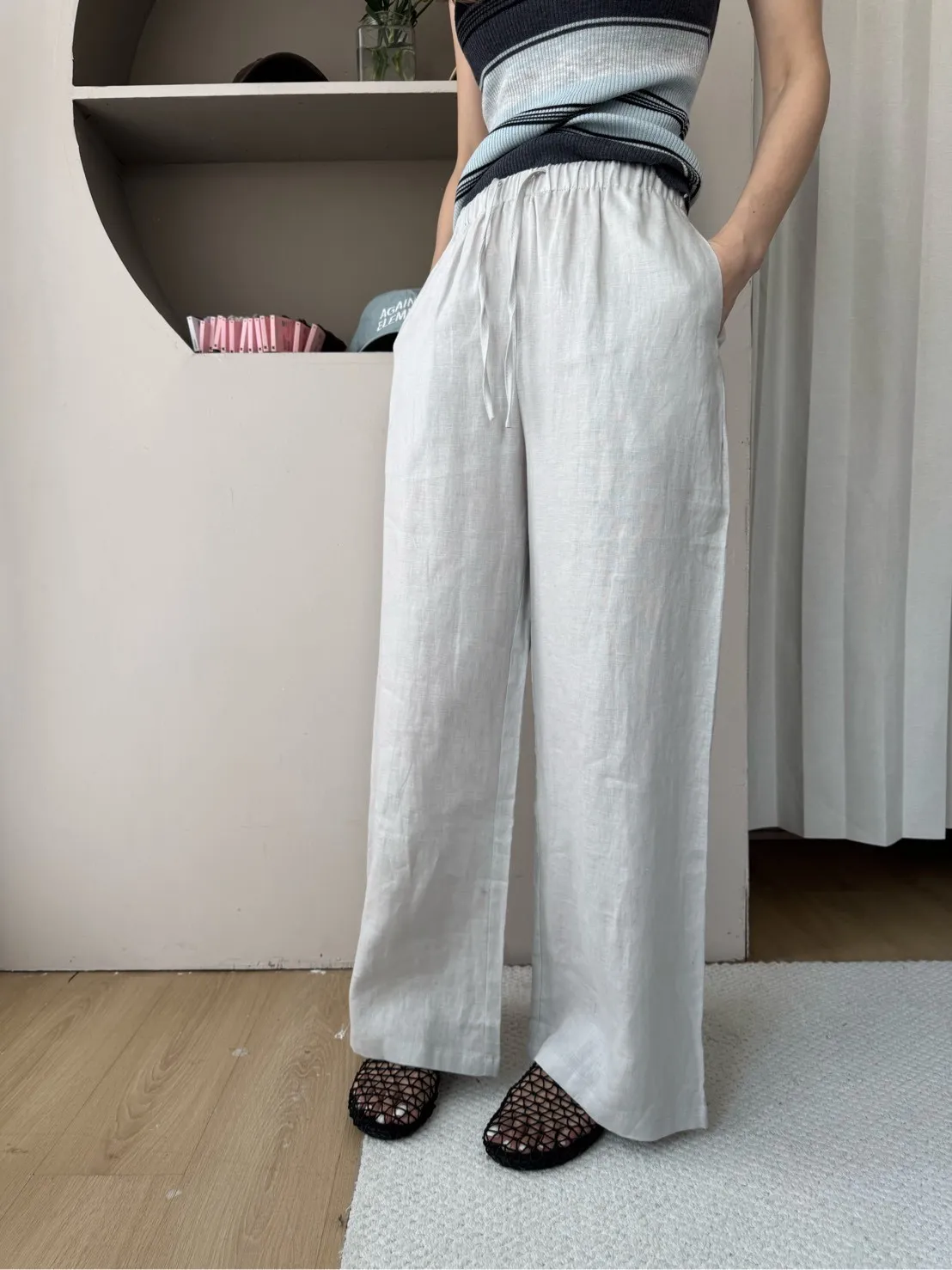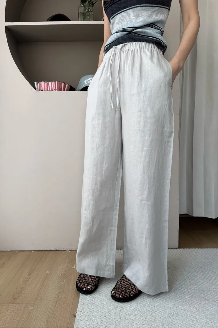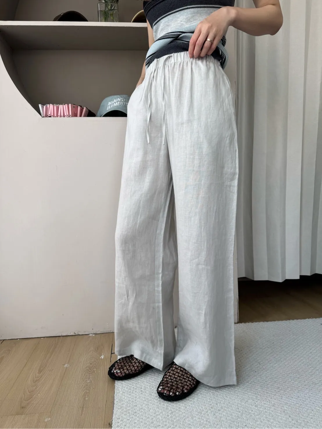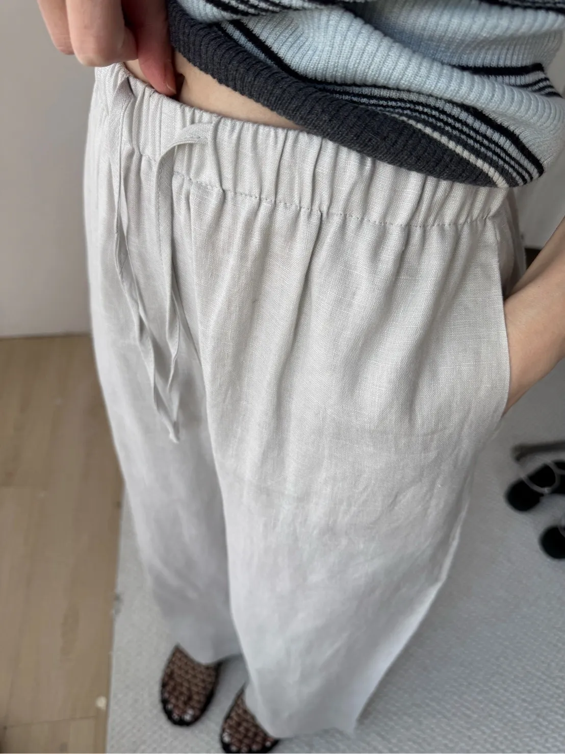 薄款亞麻休閒百搭顯瘦氣質直筒闊腿慵懶鬆弛休閒褲