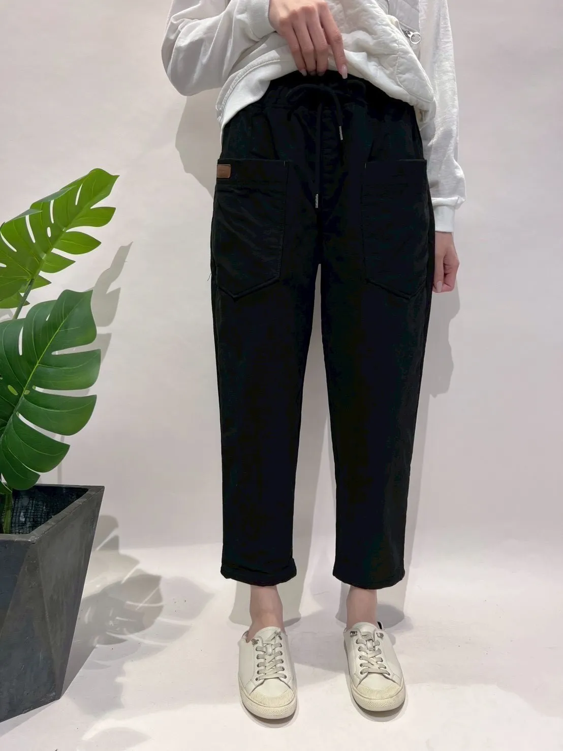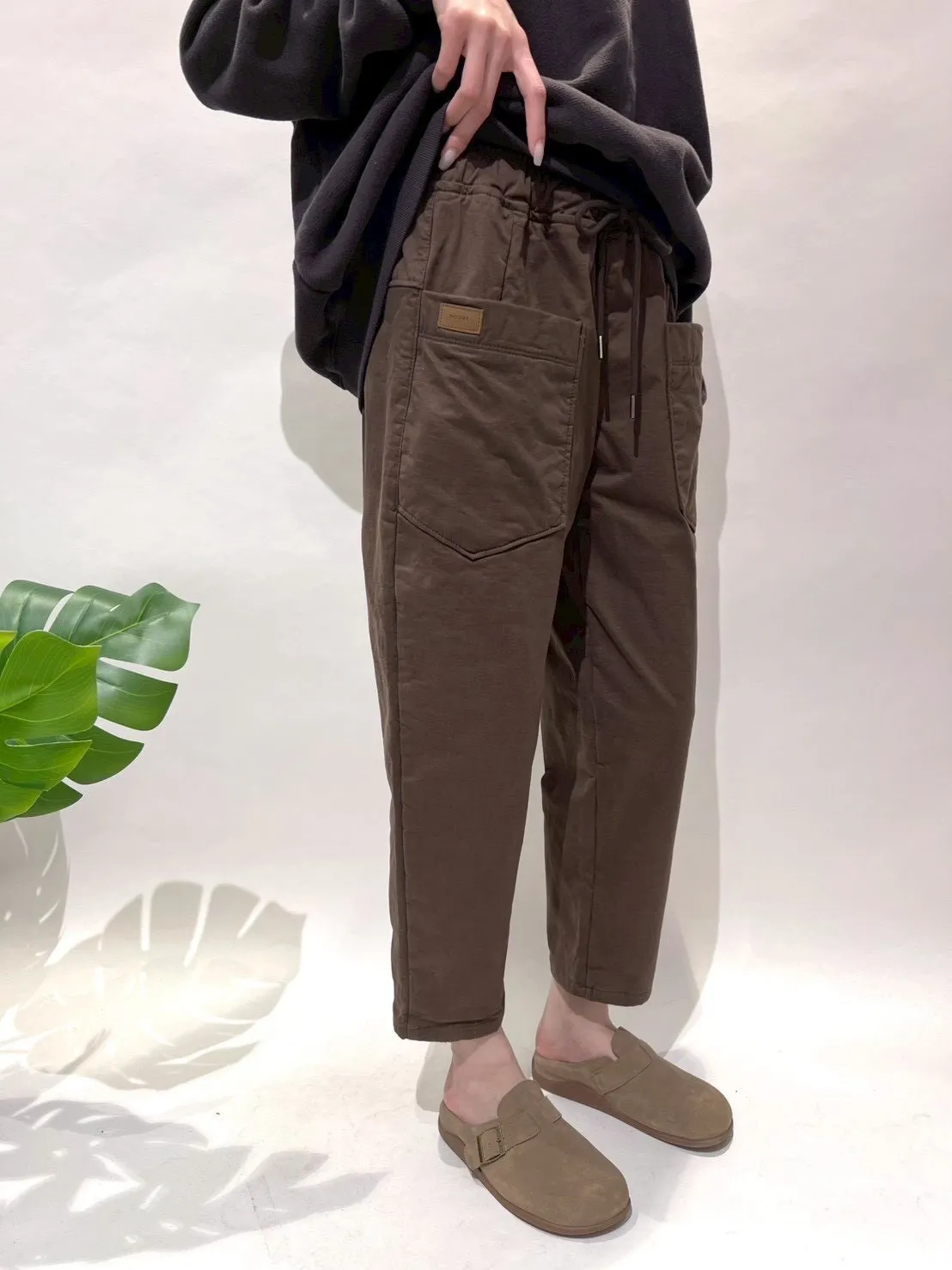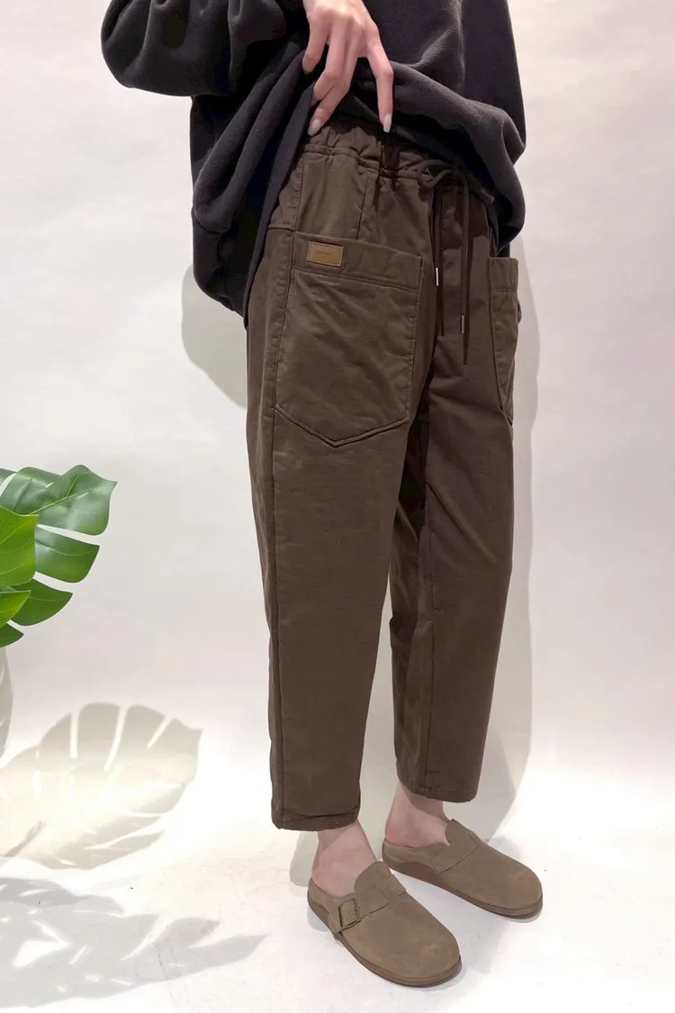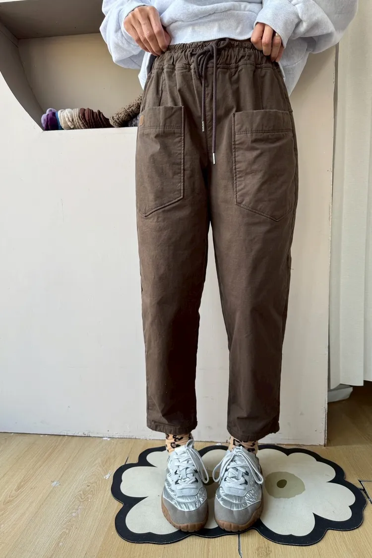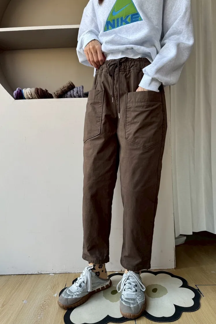 正韓圓牌個性前口袋抽繩休閒褲