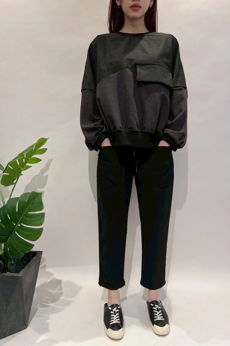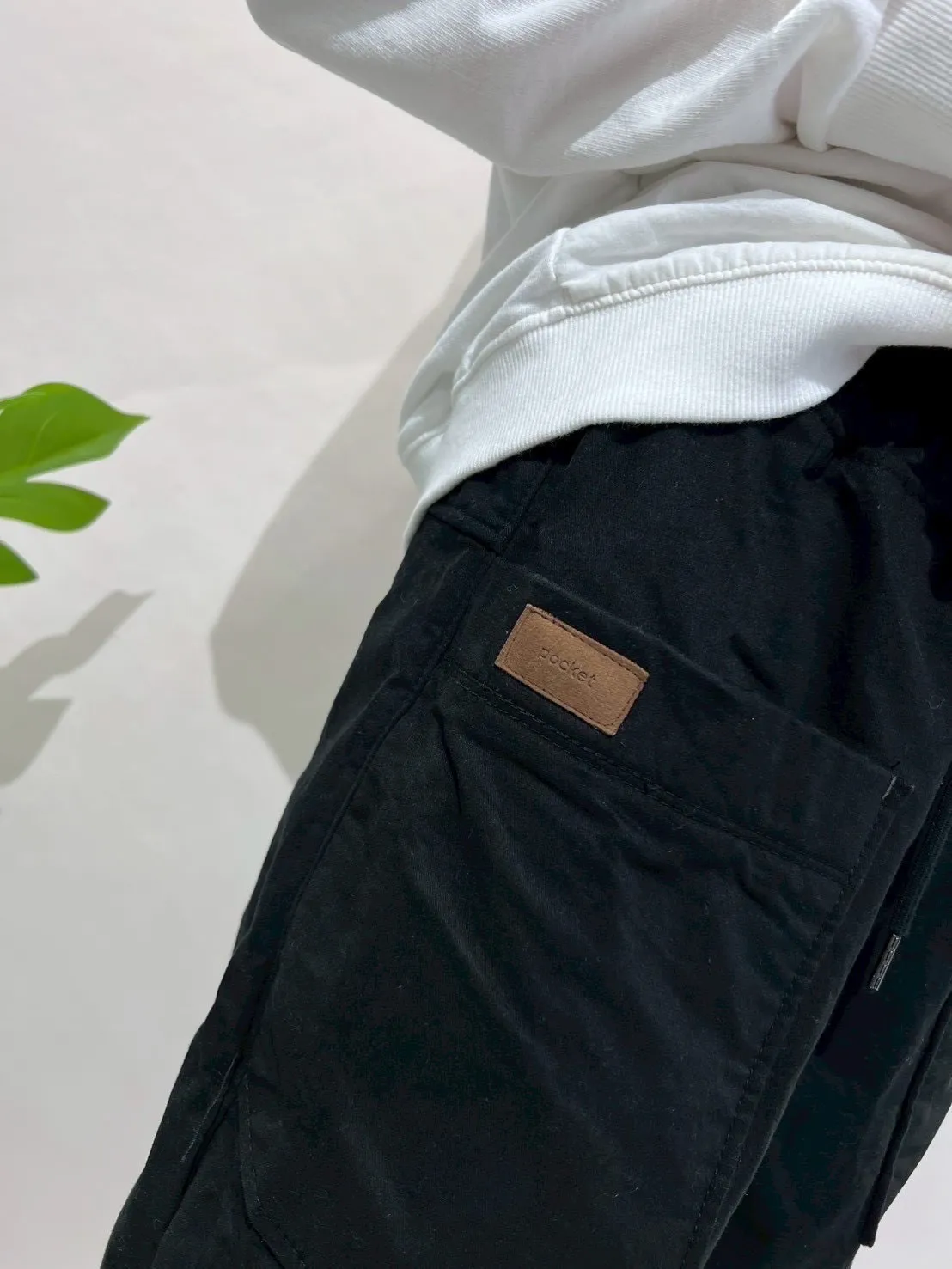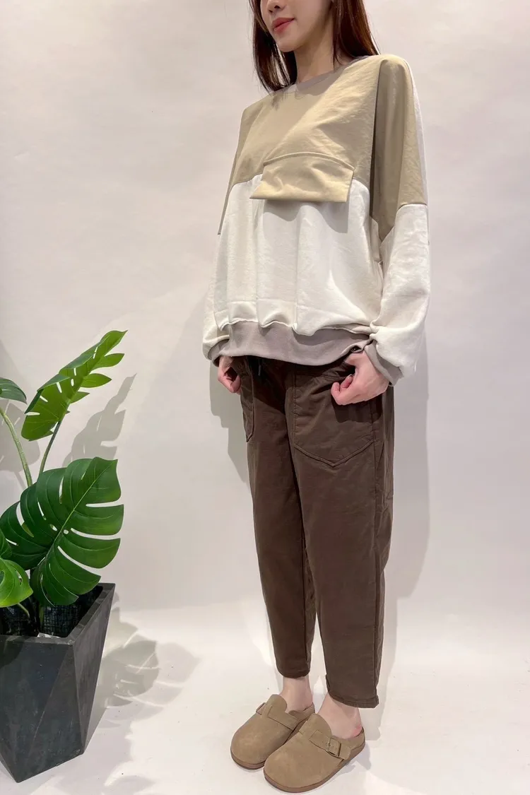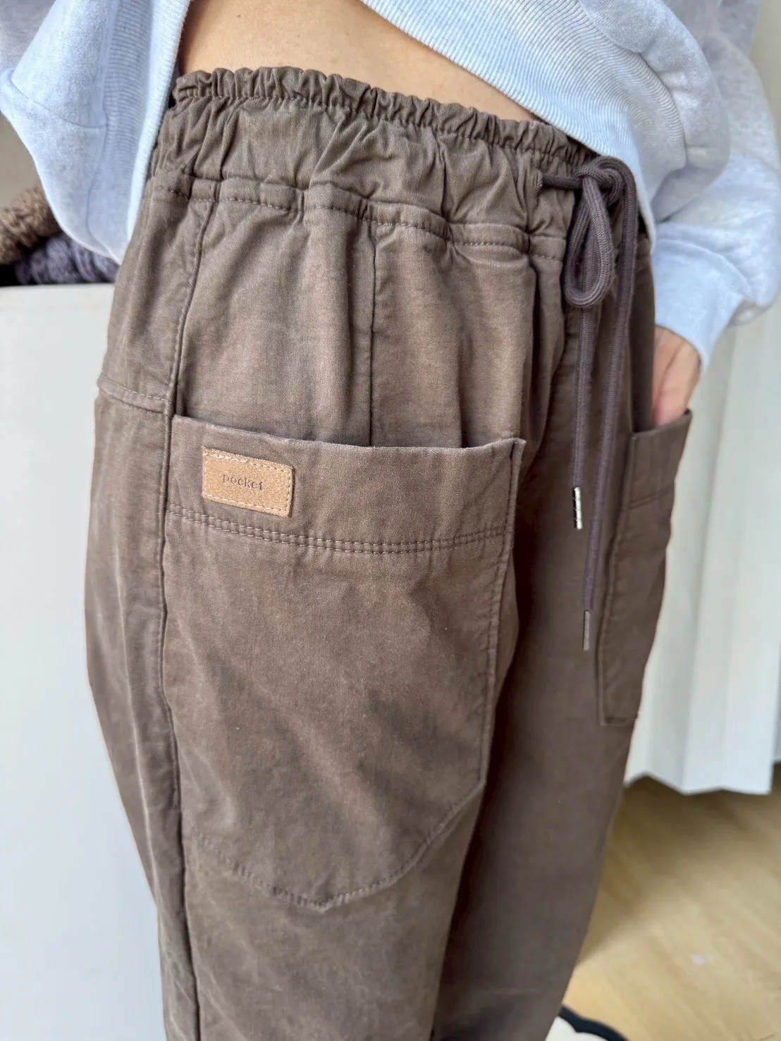 正韓圓牌個性前口袋抽繩休閒褲