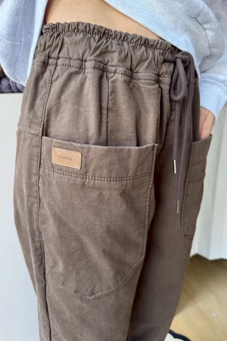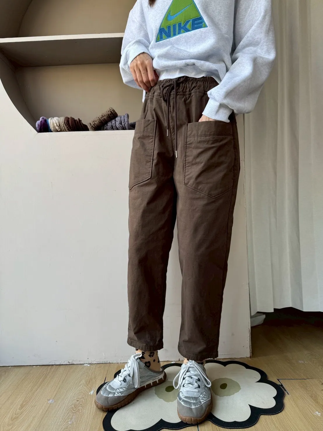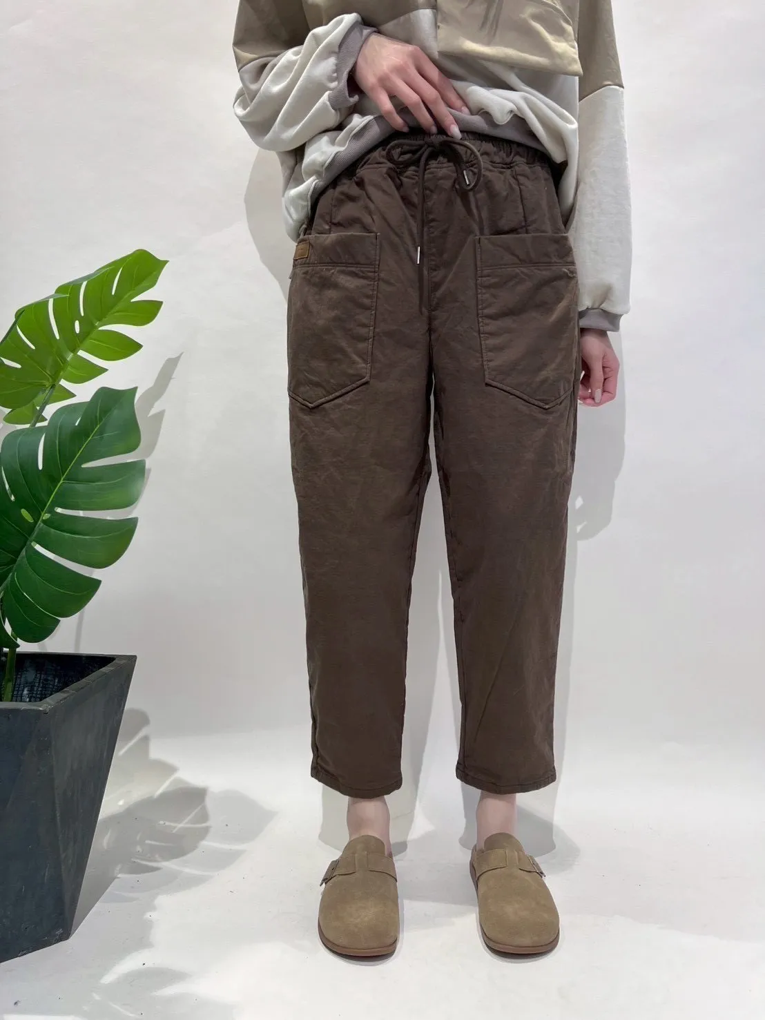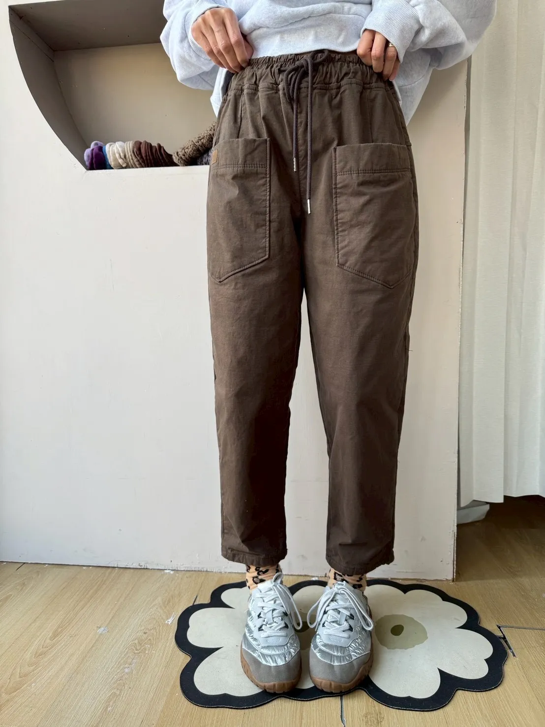 正韓圓牌個性前口袋抽繩休閒褲