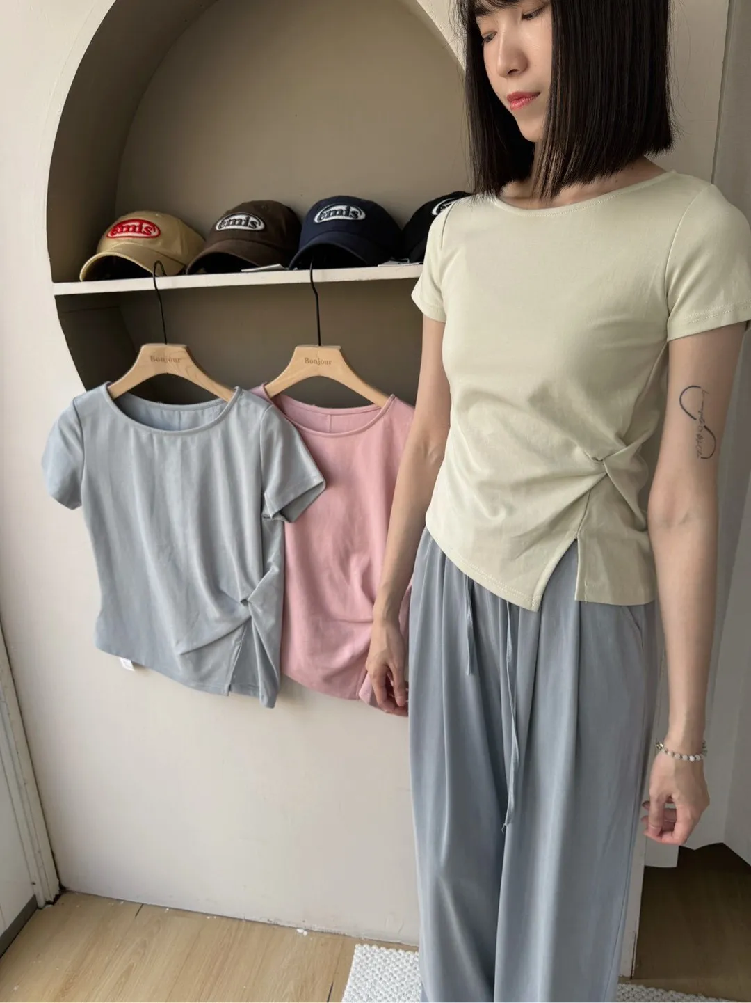 為了讓大家可以參考不同身形穿搭起來的感覺,本站會有實品拍攝及廠商照 如無法接受網路購物皆會有少許色差請自行衡量再做下單謝謝!! ●選擇店取的客人,務必下單後主動截圖訂單到官方LINE聯繫我們,這樣我們才可以到貨通知您來店取貨唷。 下單前須確實詳讀 本文內容 及 訂購須知(請點進去詳閱唷) 可接受者再下單,如下單即為同意以上需知!! 商品特色 『讓好看變成生活的一種習慣』 造型款也是店裡賣超好的單品唷~~ #店妞圖片穿搭的是S #這款版型偏小,建議大一碼來拿