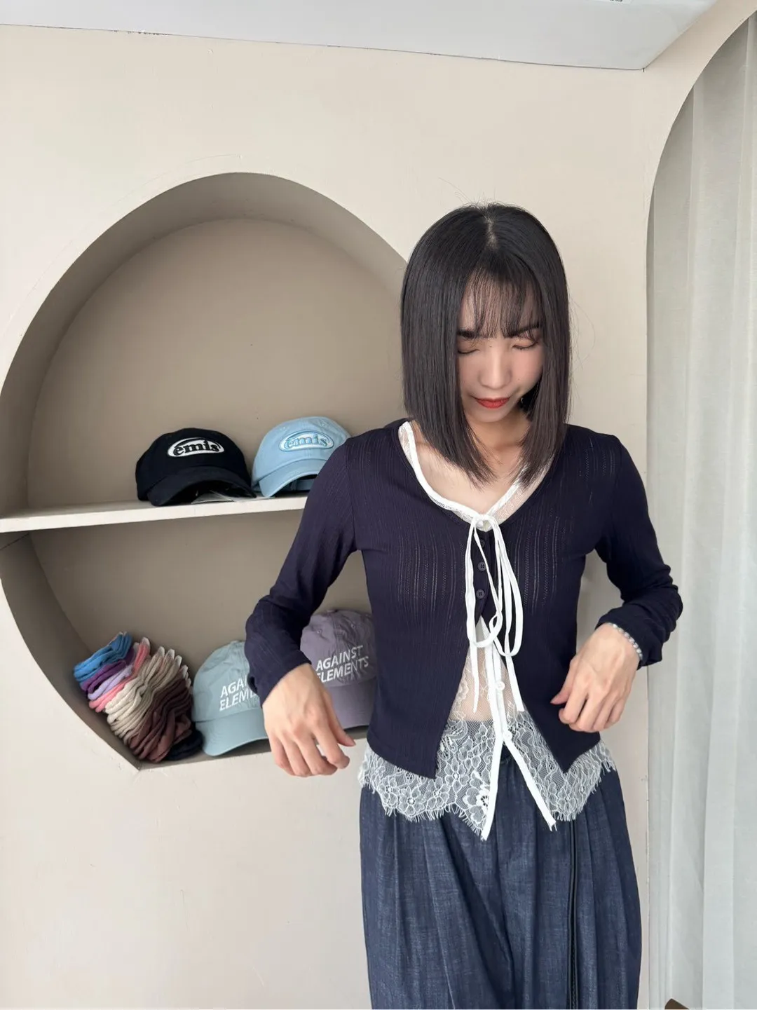 為了讓大家可以參考不同身形穿搭起來的感覺,本站會有實品拍攝及廠商照 如無法接受網路購物皆會有少許色差請自行衡量再做下單謝謝!! ●選擇店取的客人,務必下單後主動截圖訂單到官方LINE聯繫我們,這樣我們才可以到貨通知您來店取貨唷。 下單前須確實詳讀 本文內容 及 訂購須知(請點進去詳閱唷) 可接受者再下單,如下單即為同意以上需知!! 商品特色純慾風滿滿的一套上衣蕾絲的細節也做的超好唷~ #店妞圖片穿搭的是藍色M尺寸表在最後一張唷