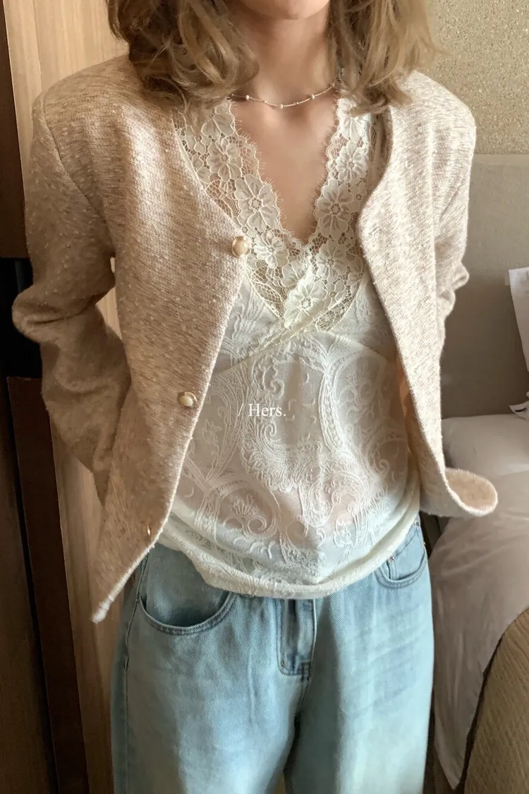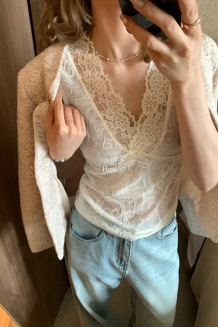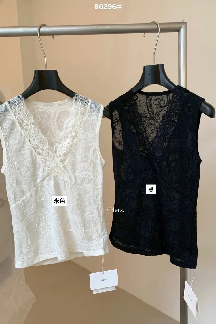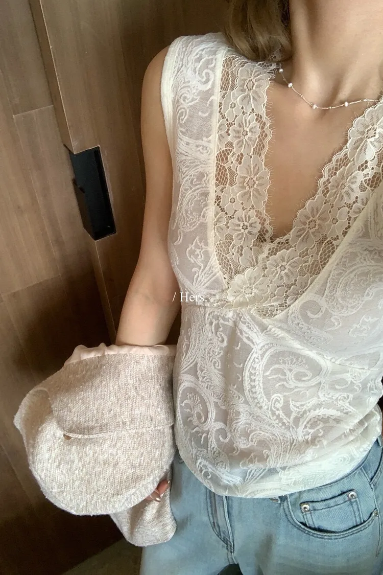 簡約氣質日常疊疊穿超美內搭蕾絲V領背心