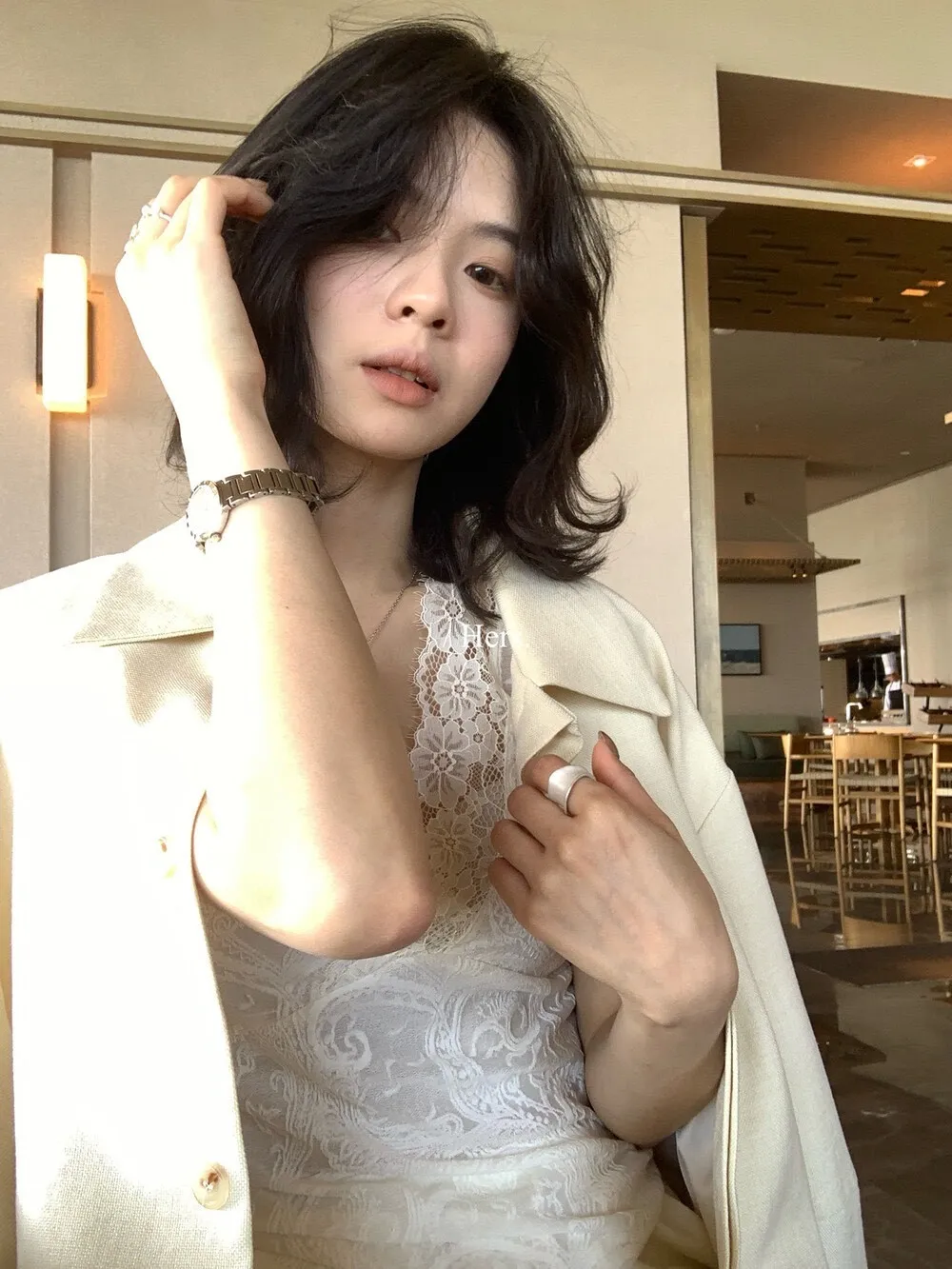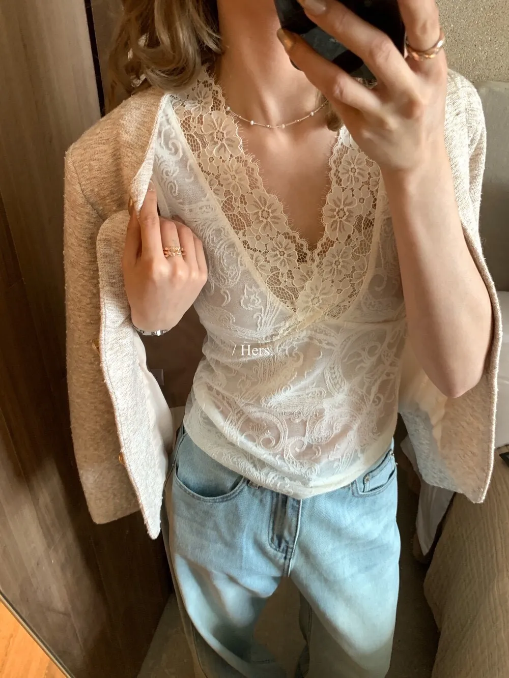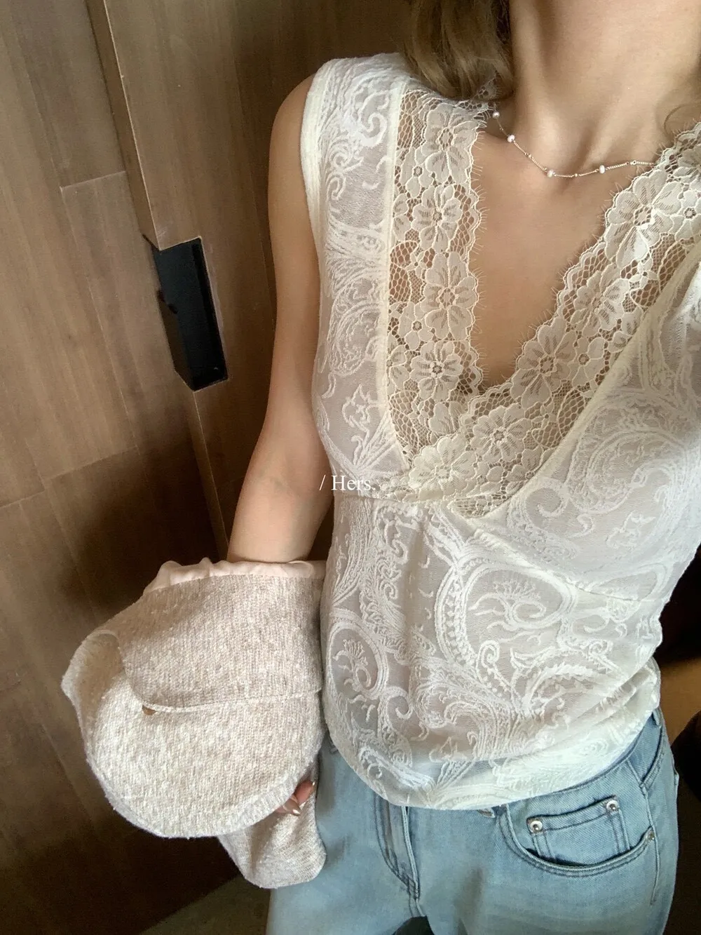 簡約氣質日常疊疊穿超美內搭蕾絲V領背心
