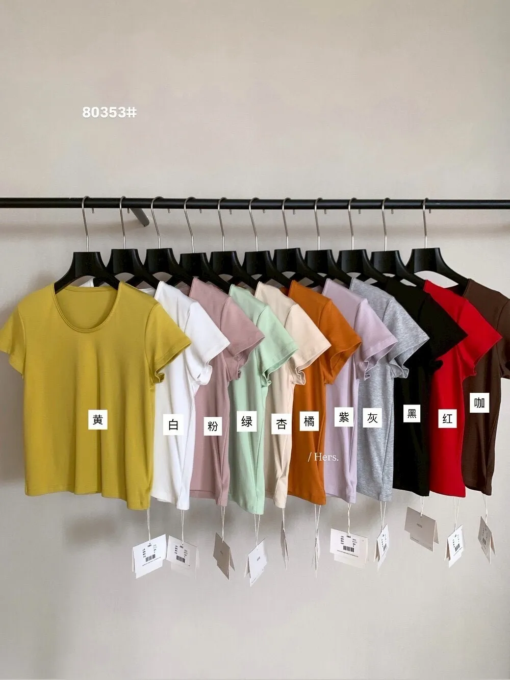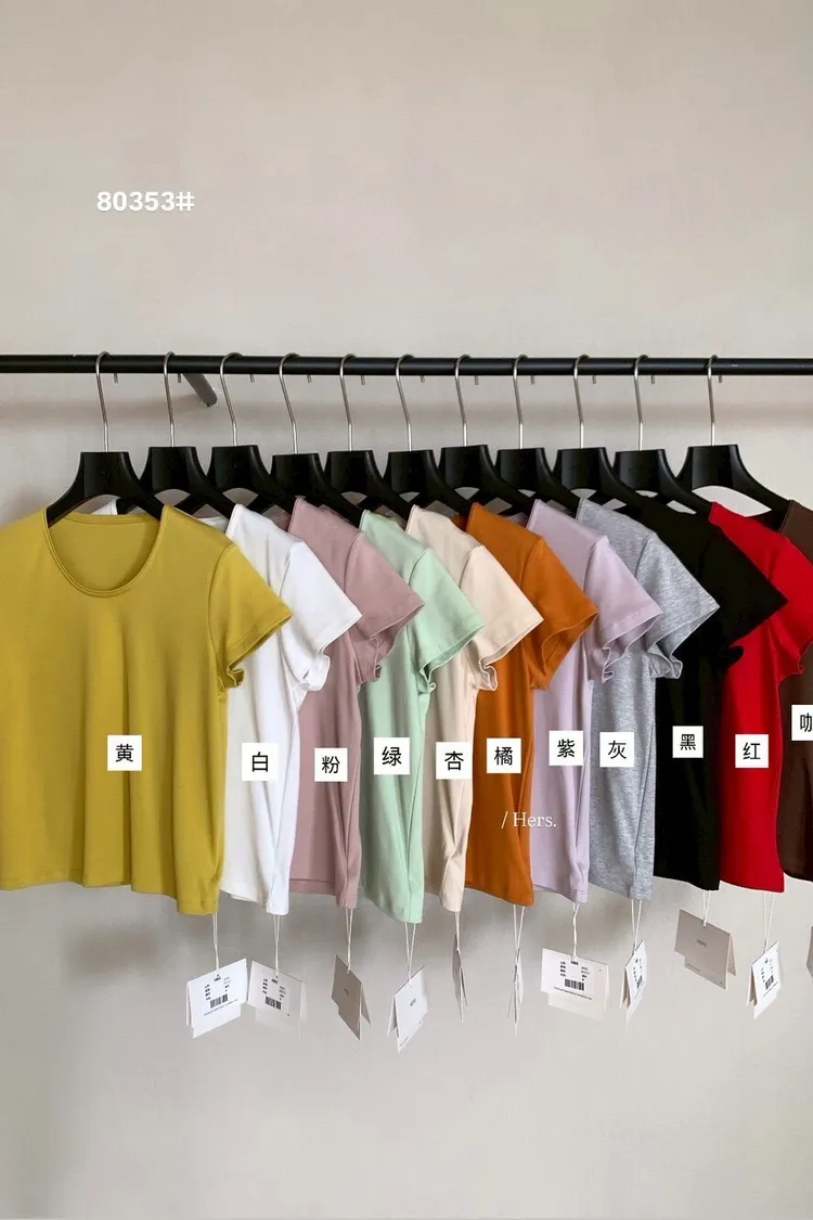 必带跑量引流款!簡約日常基礎百搭純色圓領短袖T恤