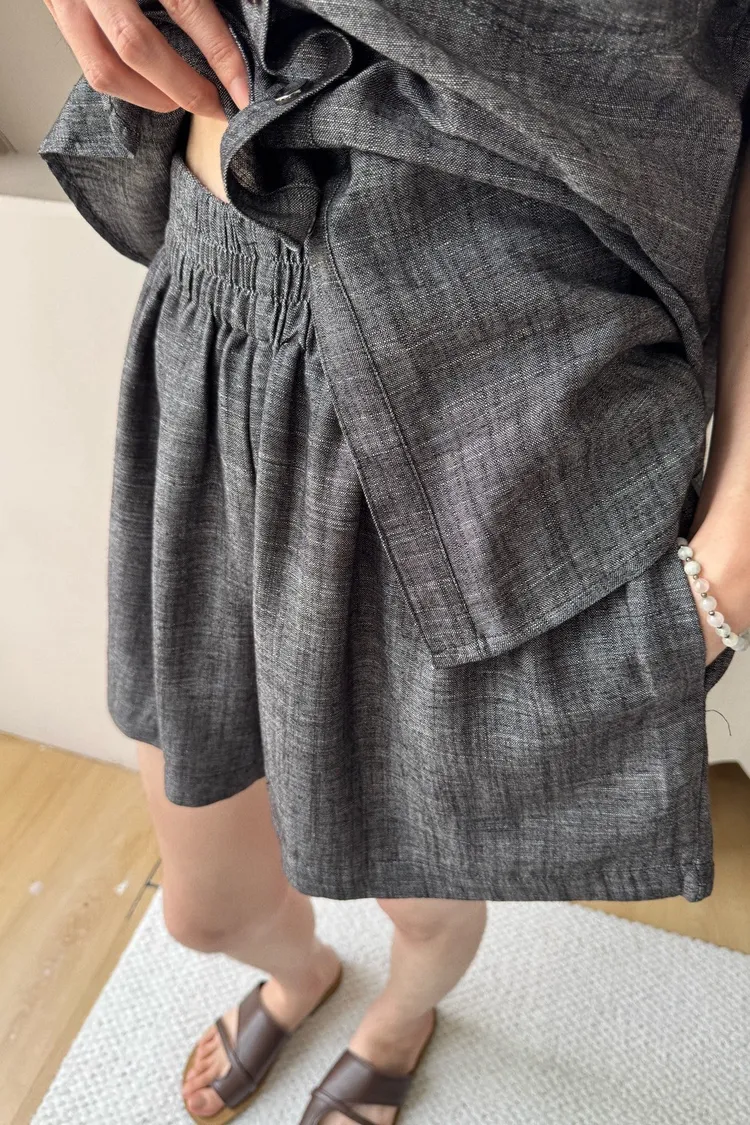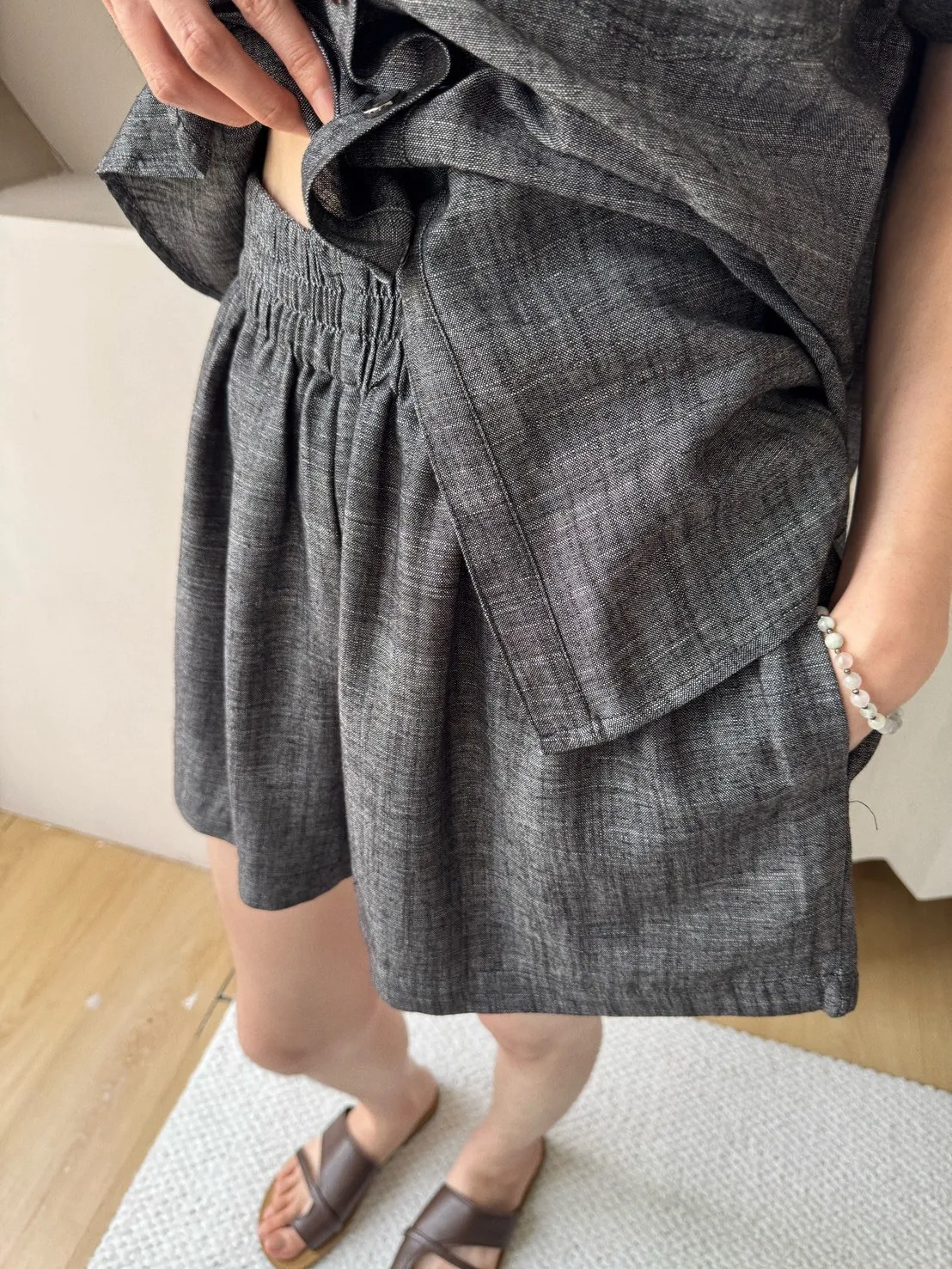 ✔ 下身是鬆緊短褲設計,活動自在不勒肚