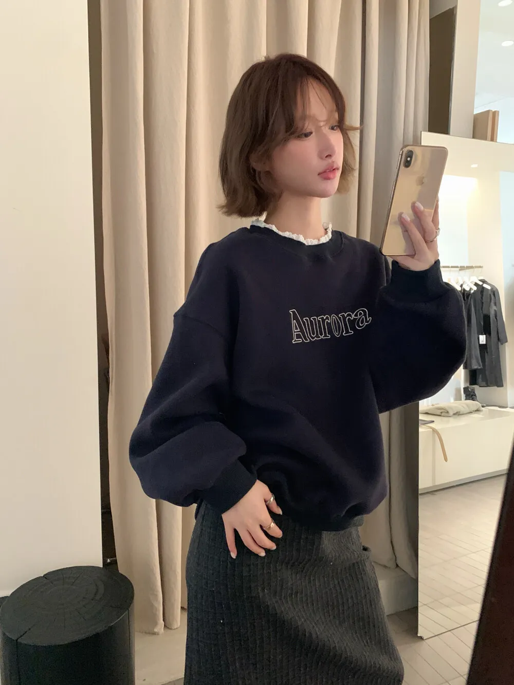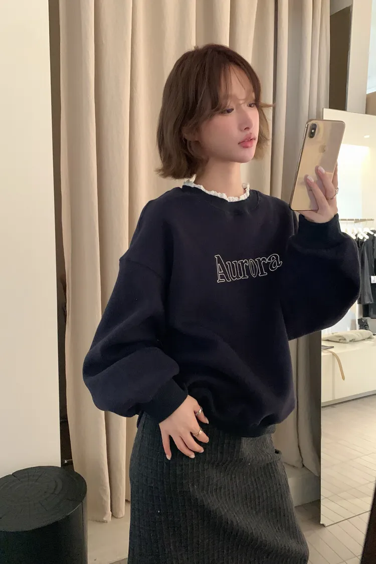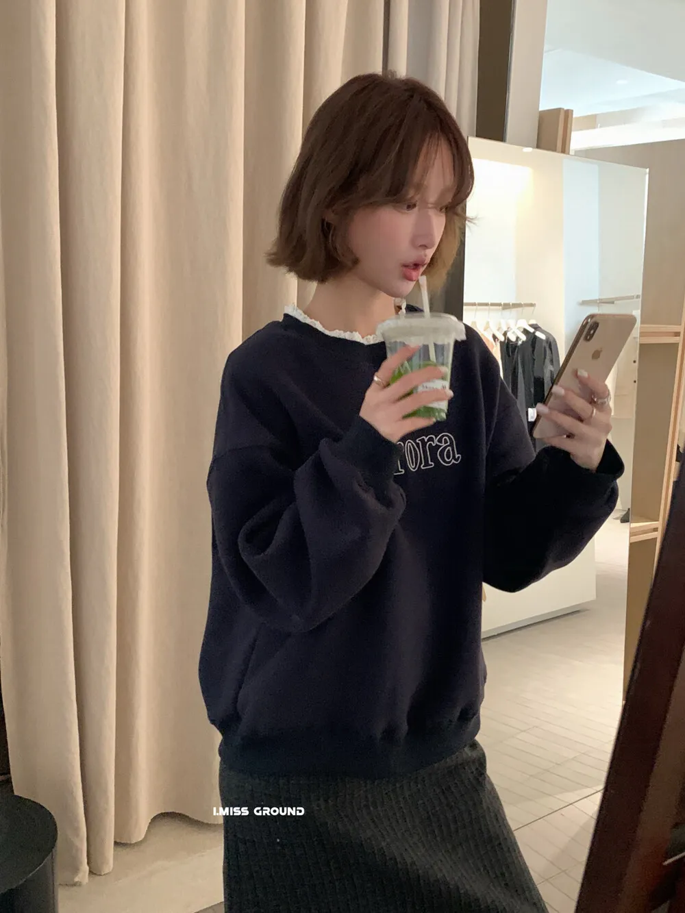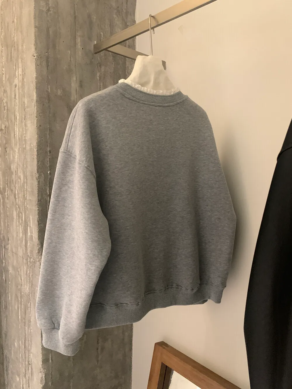 冬上新!爆款!加絨加厚蕾絲花邊拼接假兩件衛衣
