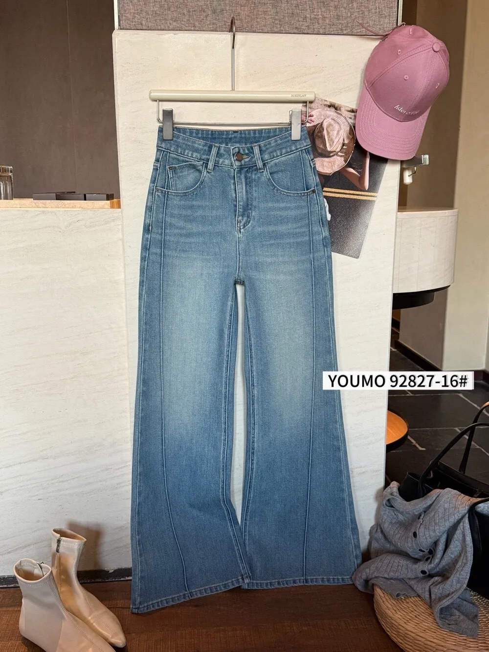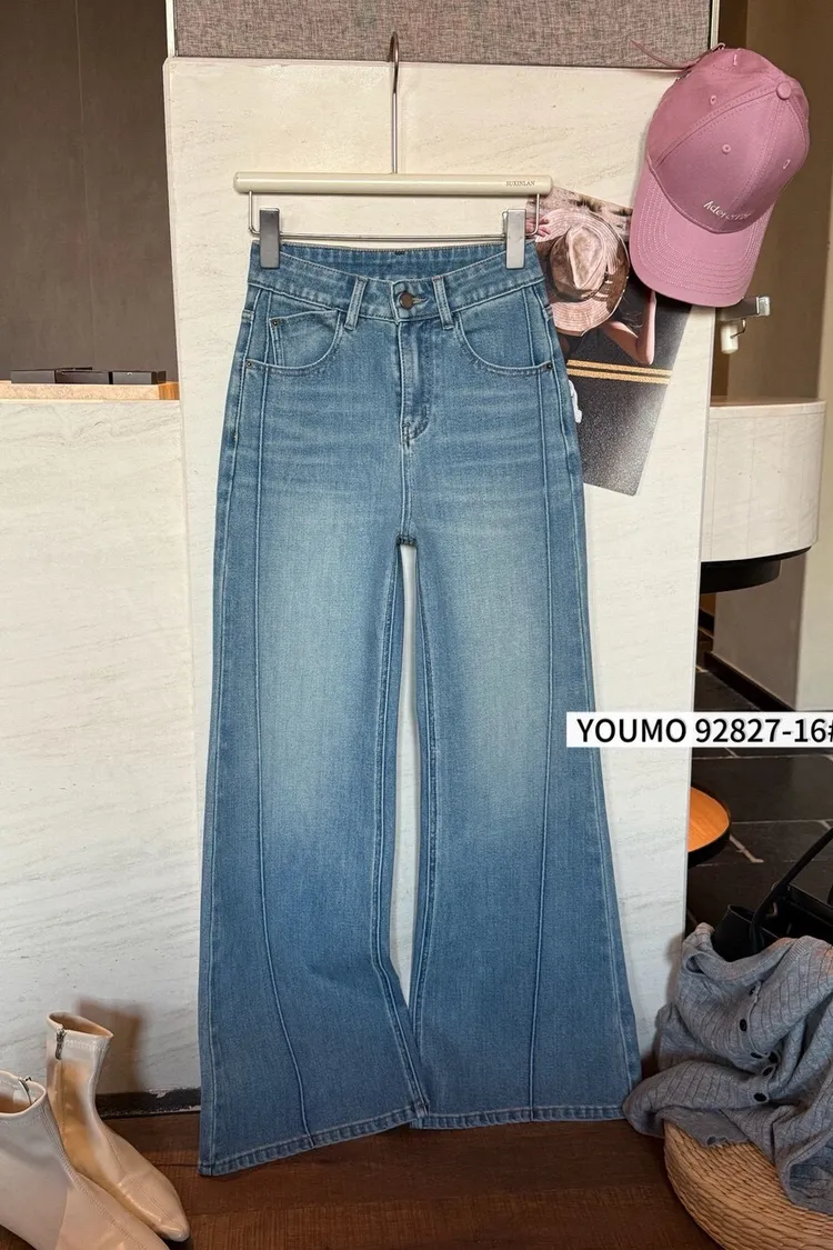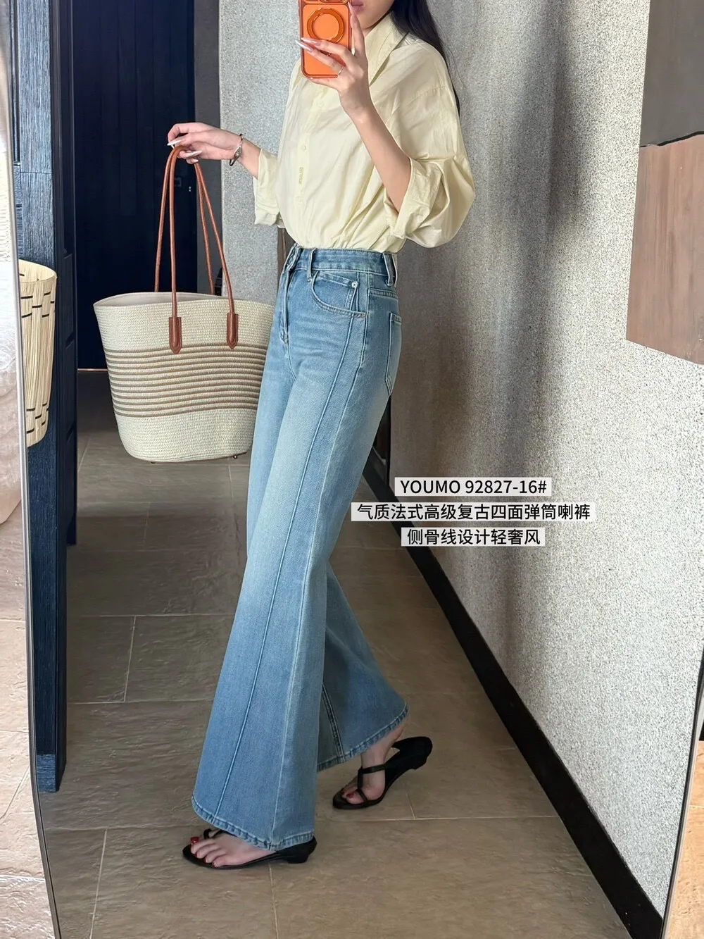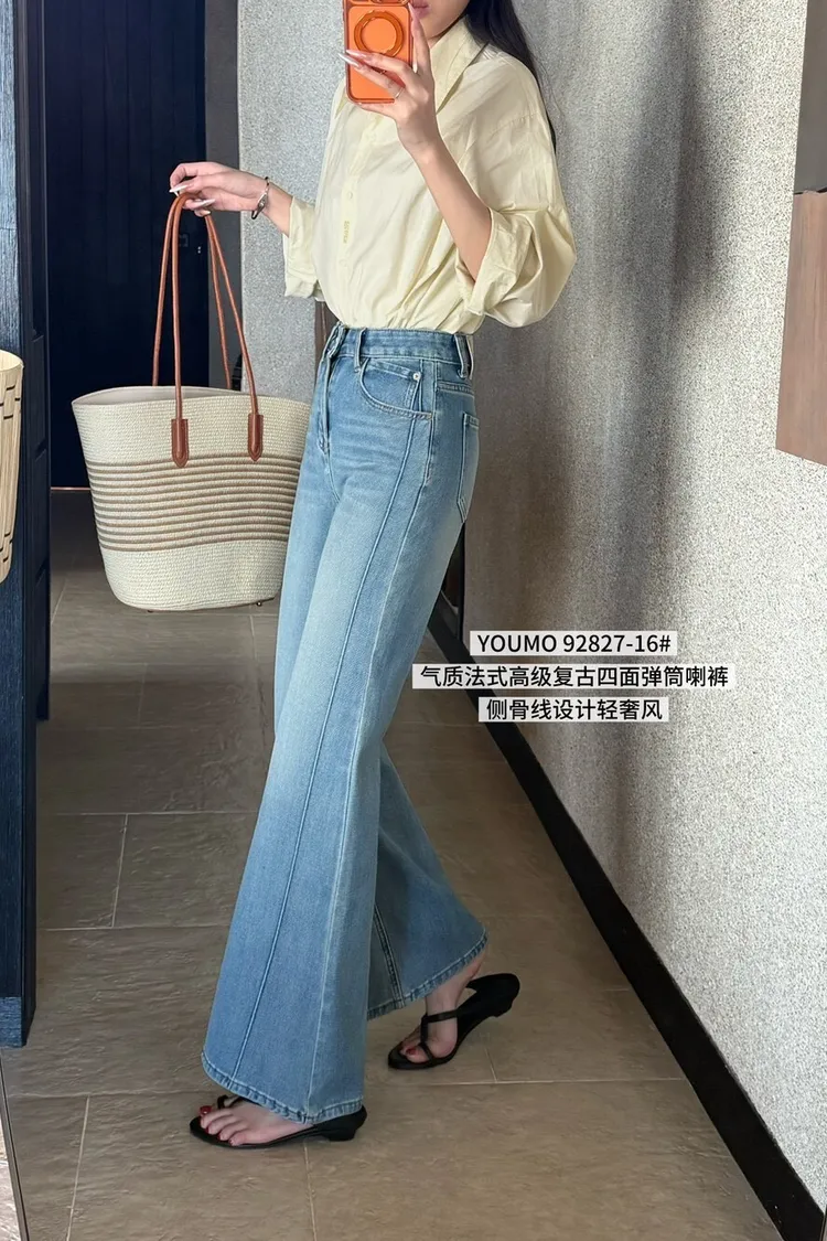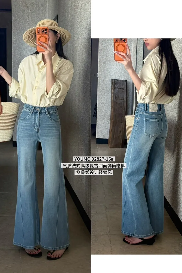 26年早春輕奢側筒喇法式復古高級感側骨線微喇牛仔褲