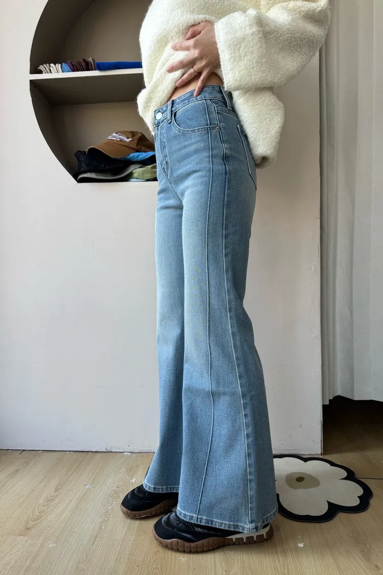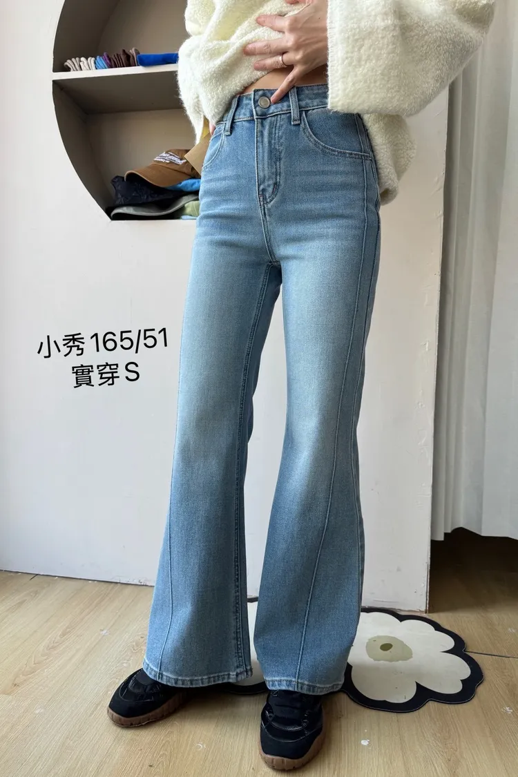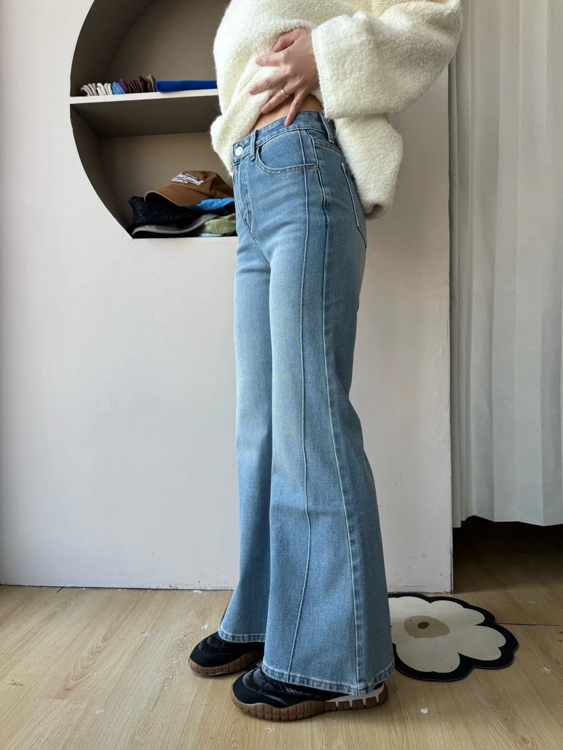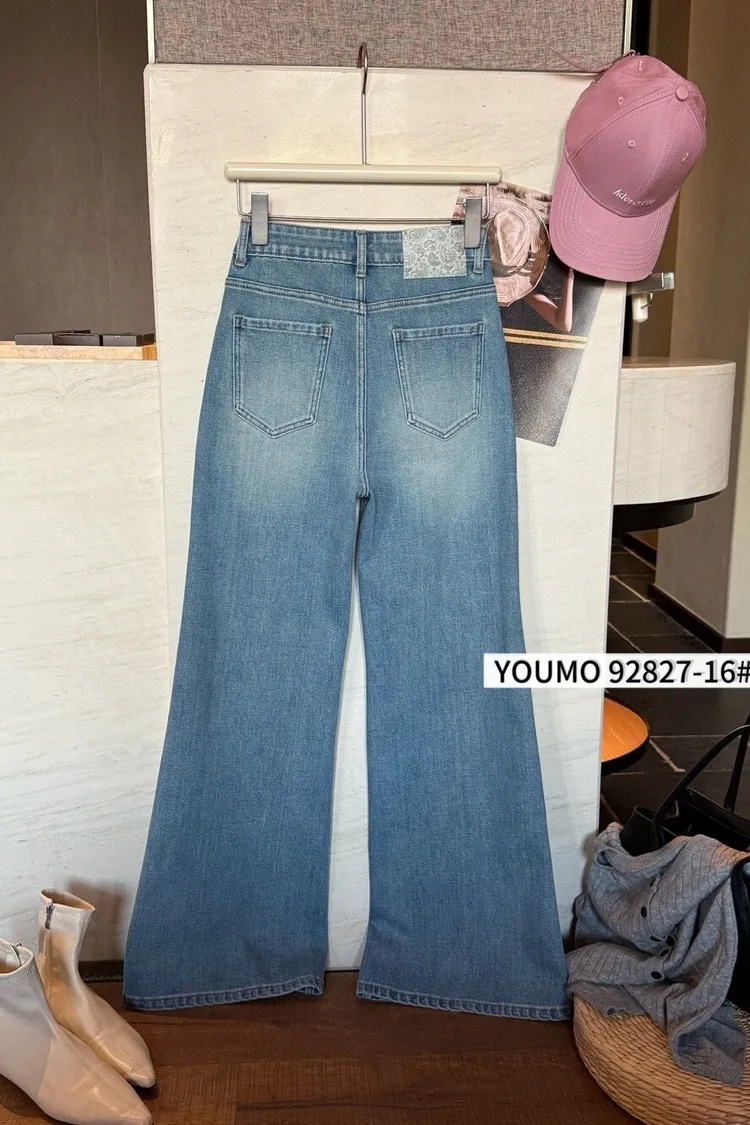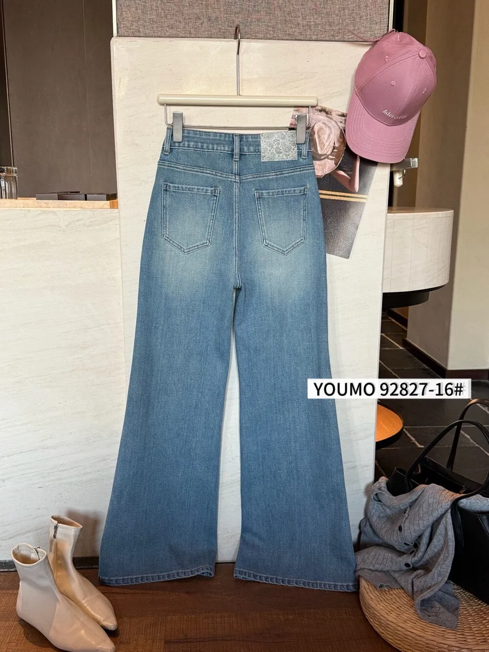 26年早春輕奢側筒喇法式復古高級感側骨線微喇牛仔褲
