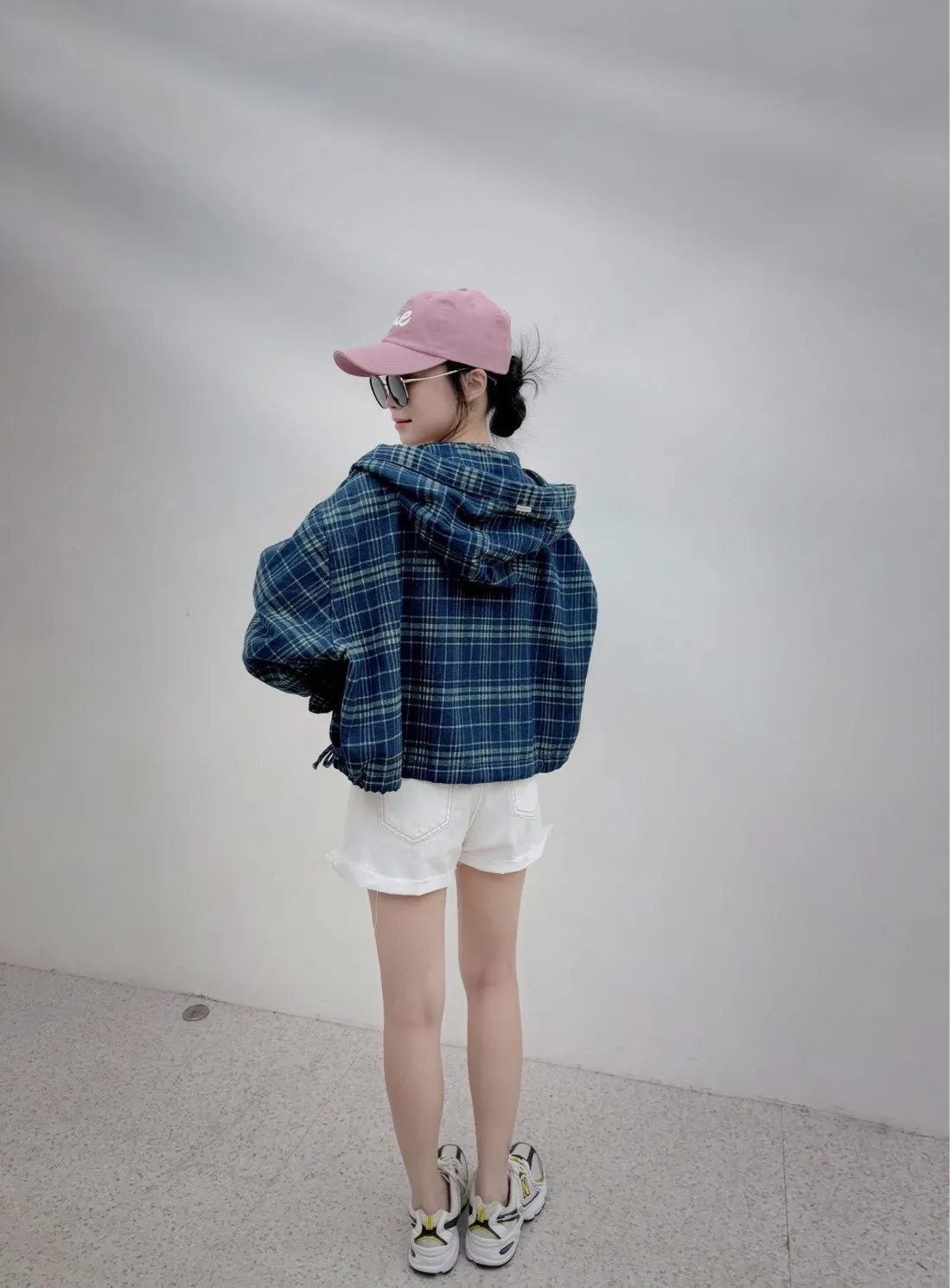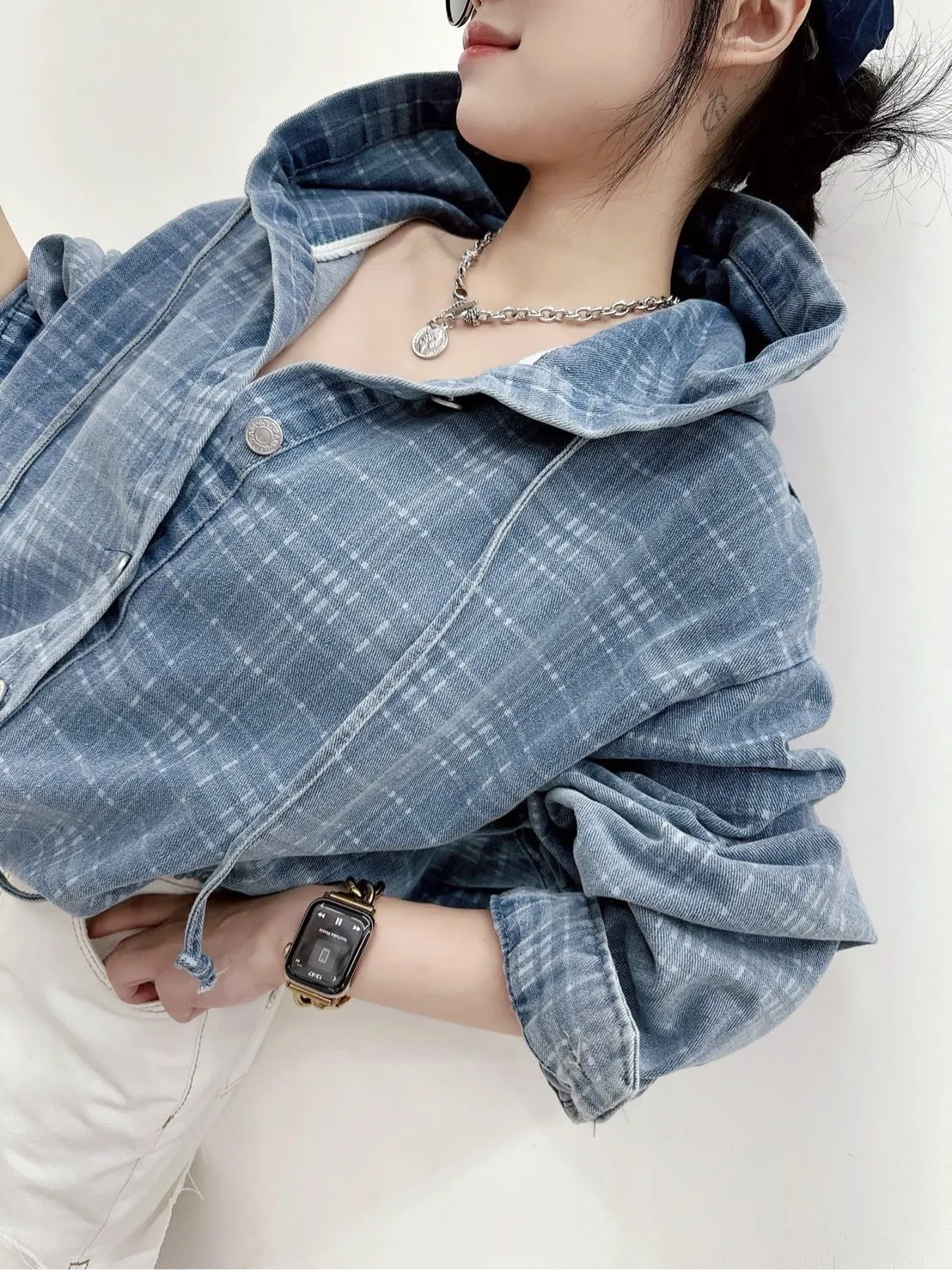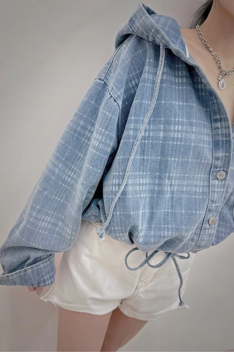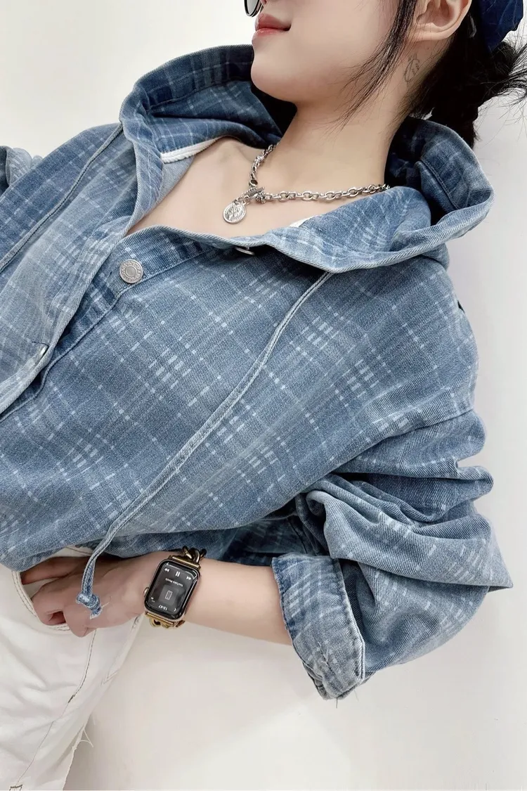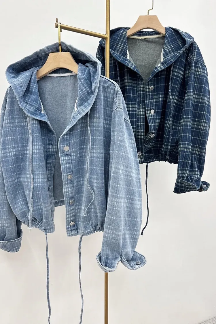 ♥ 率性與休閒完美融合的牛仔格紋連帽外套