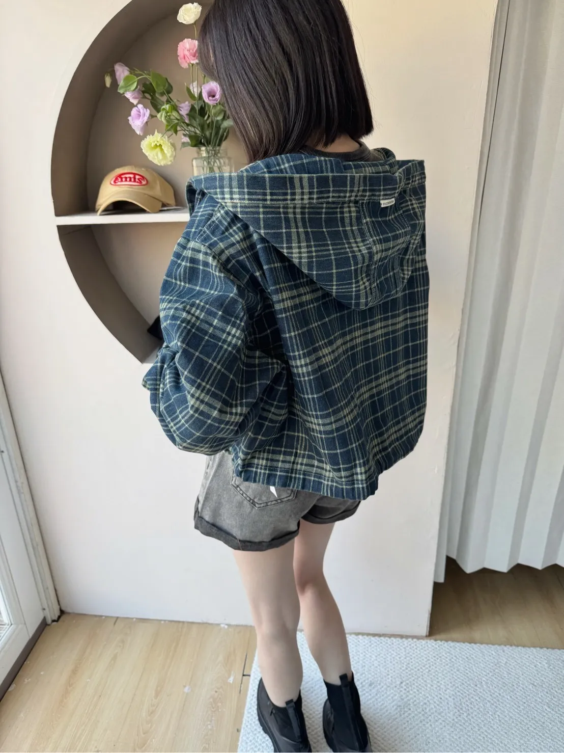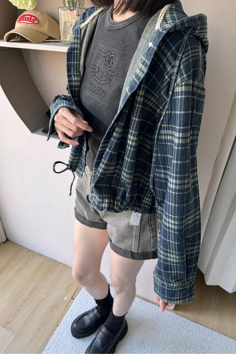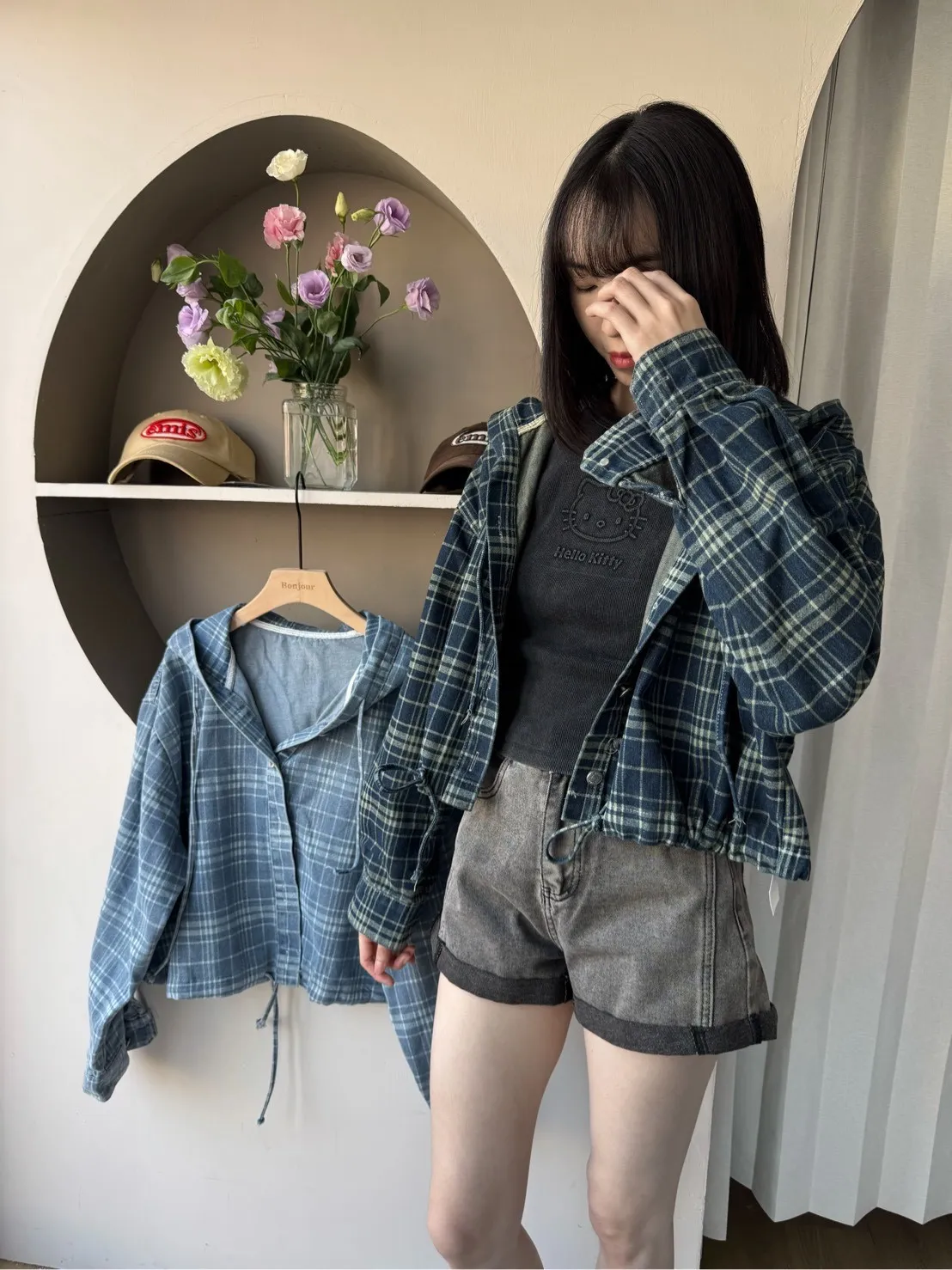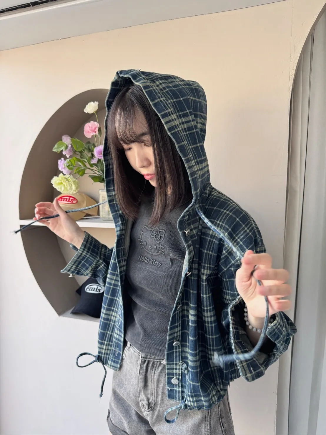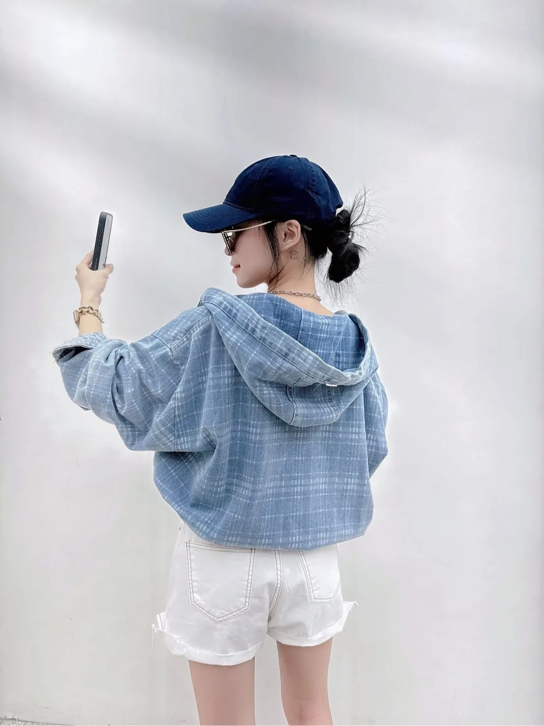 ♥ 率性與休閒完美融合的牛仔格紋連帽外套