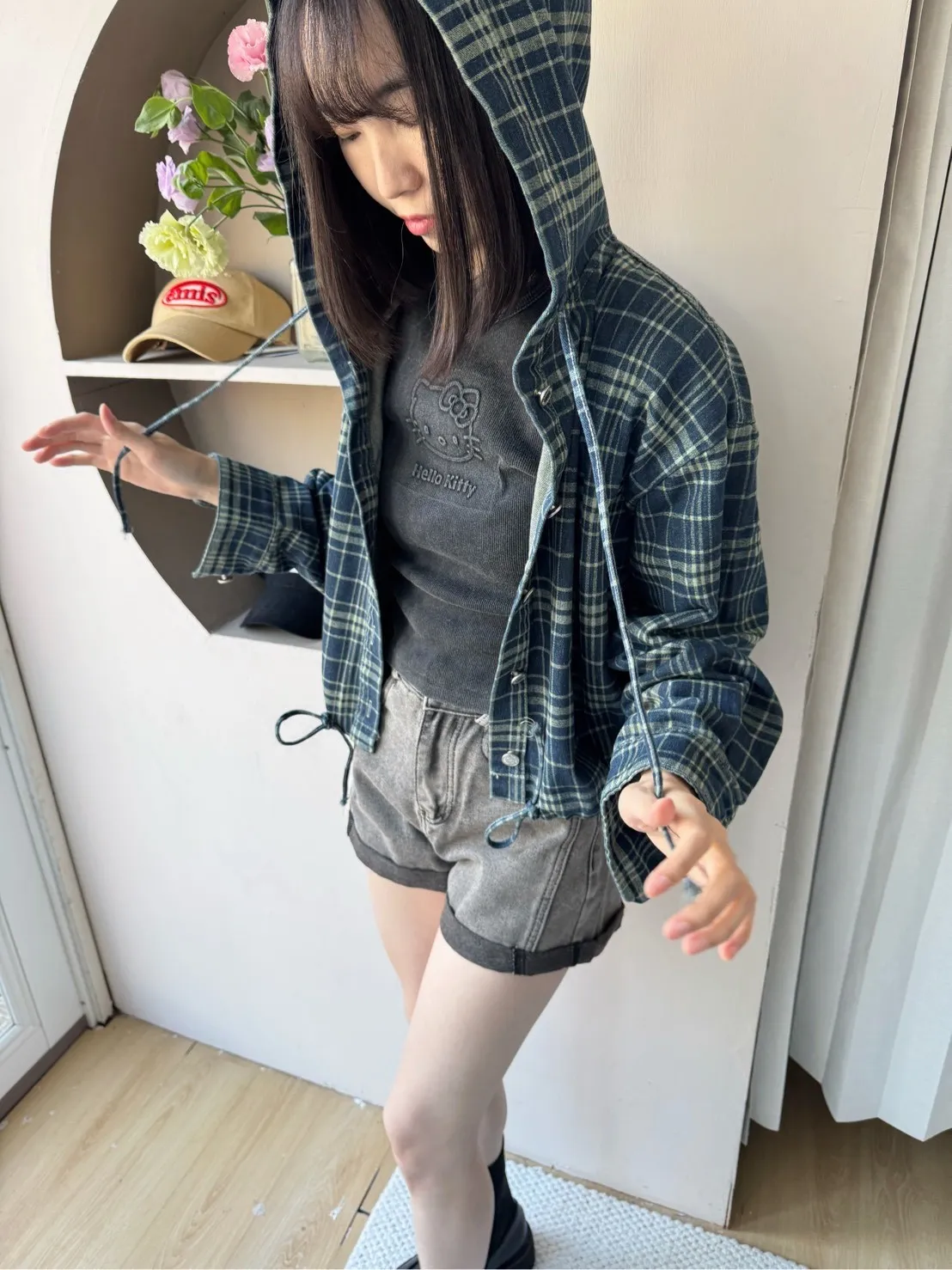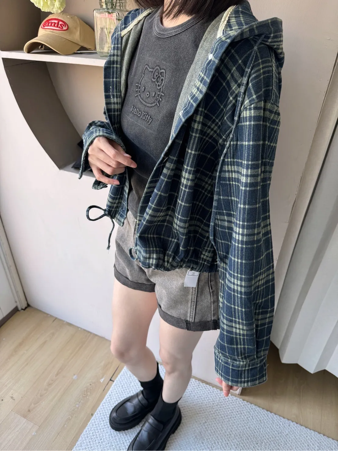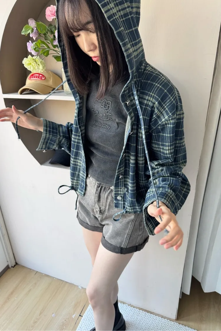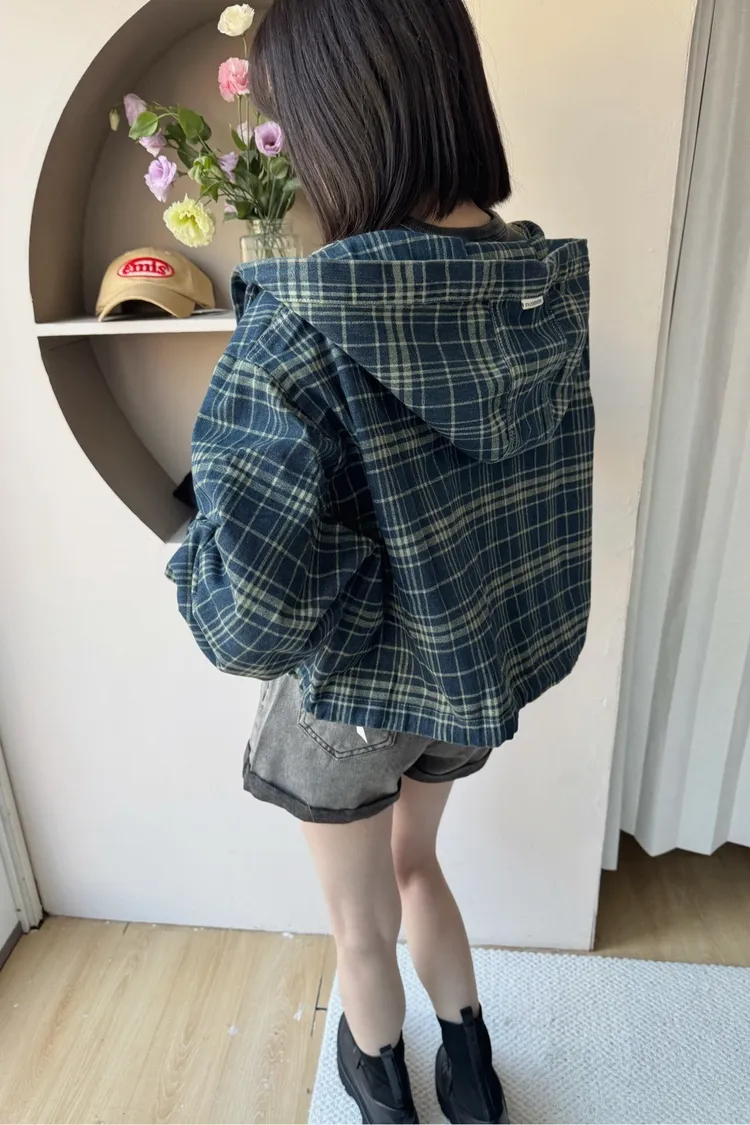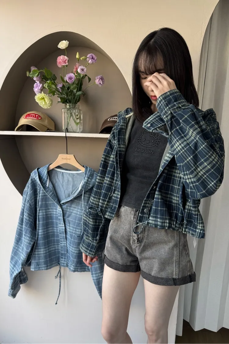 ♥ 率性與休閒完美融合的牛仔格紋連帽外套