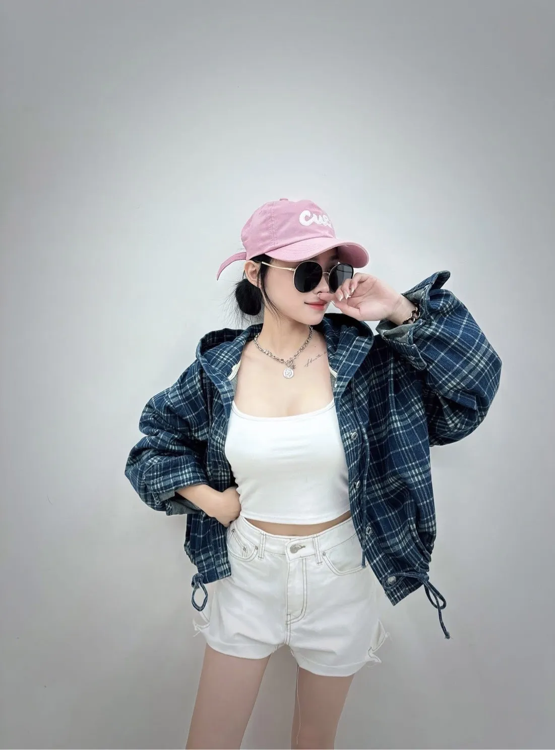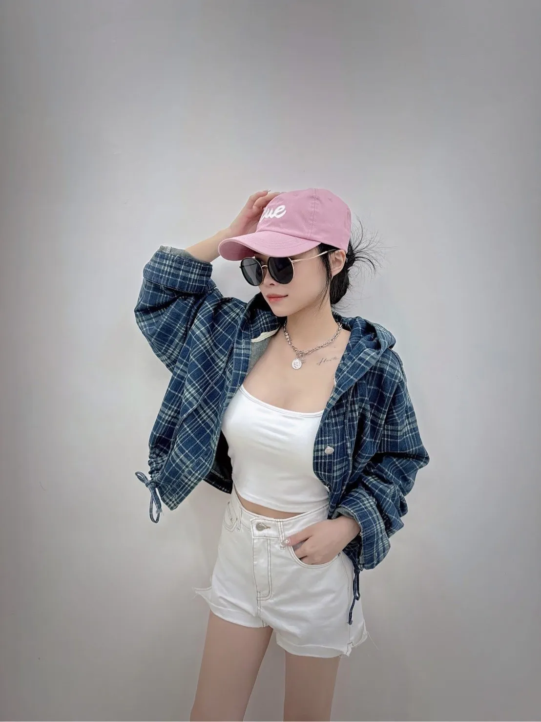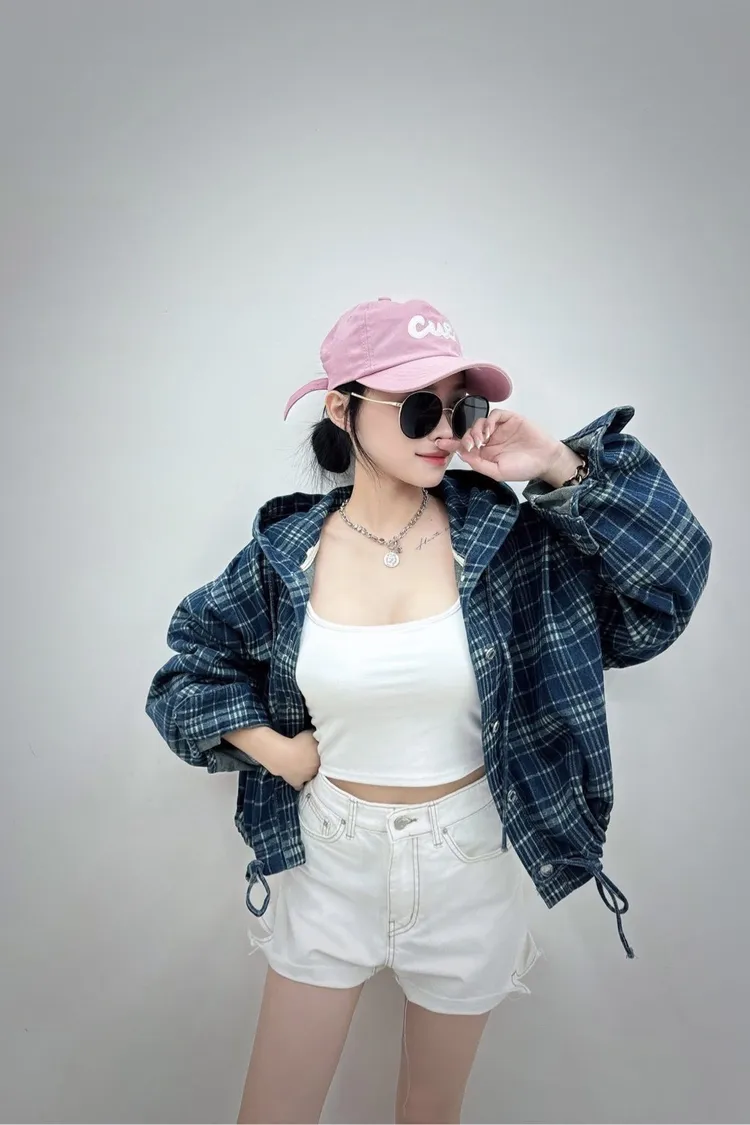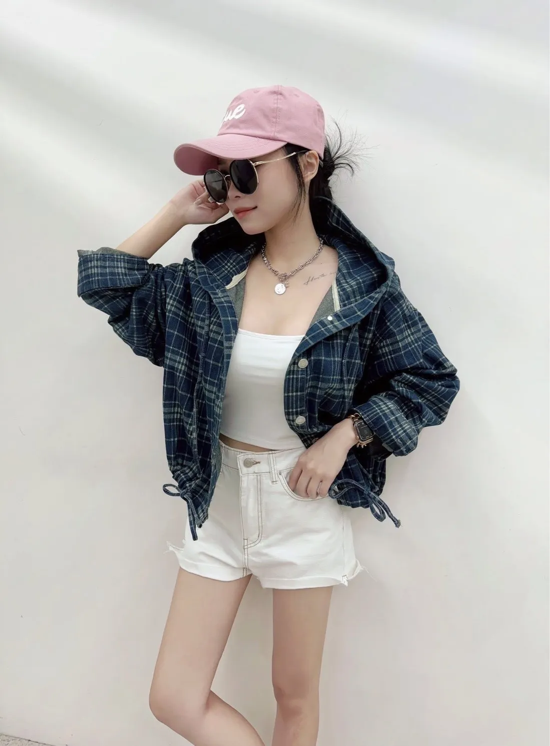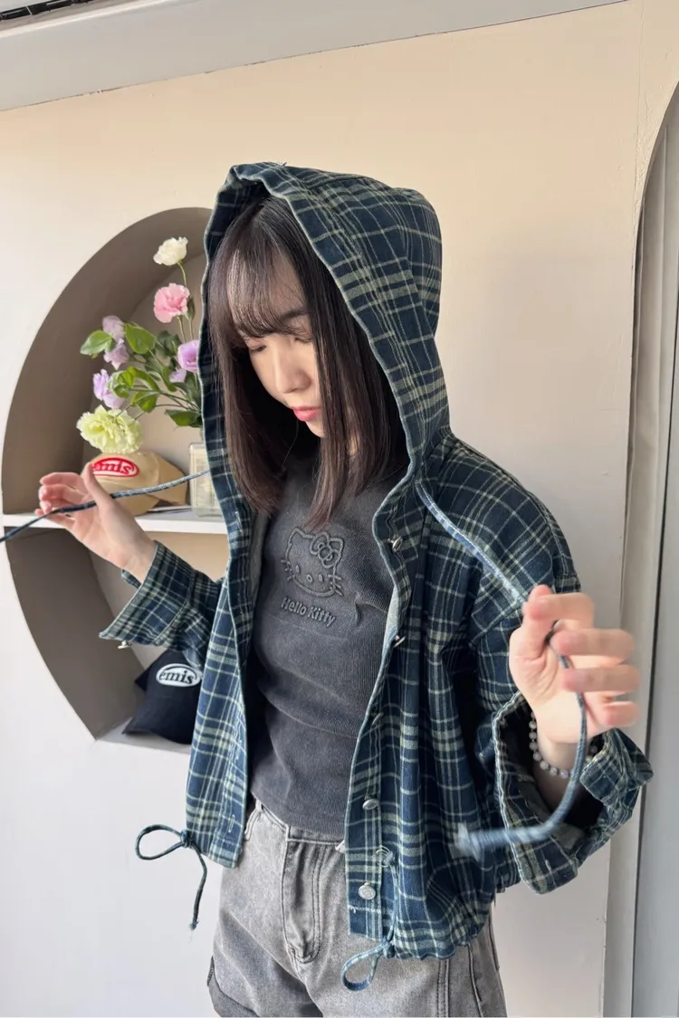 ♥ 率性與休閒完美融合的牛仔格紋連帽外套