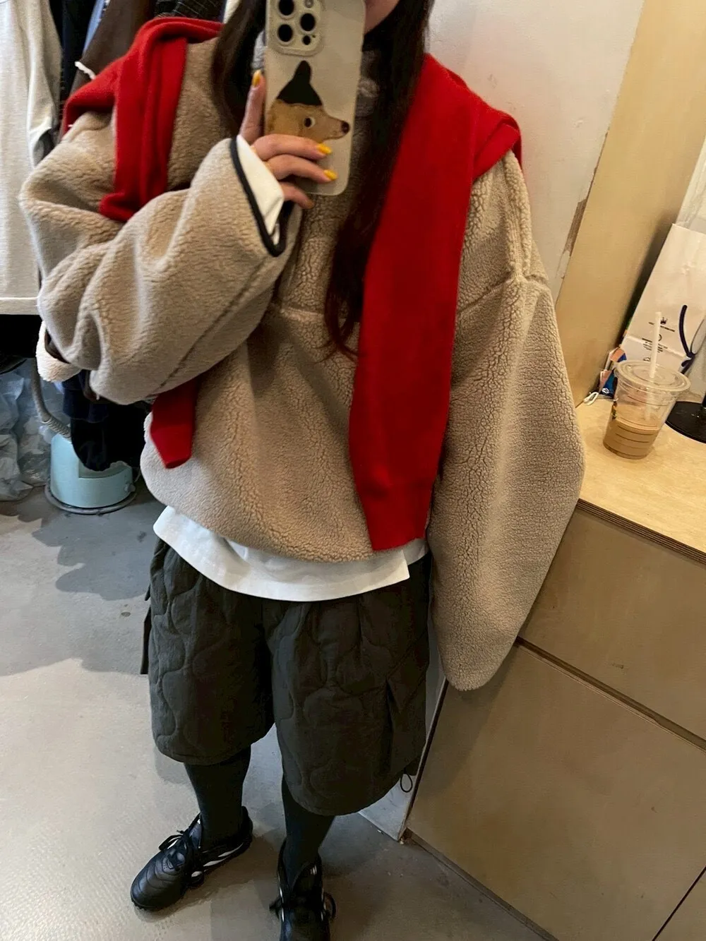 為了讓大家可以參考不同身形穿搭起來的感覺,本站會有實品拍攝及廠商照 如無法接受網路購物皆會有少許色差請自行衡量再做下單謝謝!! ●選擇店取的客人,務必下單後主動截圖訂單到官方LINE聯繫我們,這樣我們才可以到貨通知您來店取貨唷。 下單前須確實詳讀 本文內容 及 訂購須知 可接受者再下單,如下單即為同意以上需知!! 商品特色 奶茶人必備! 奶茶色系再搭配搖粒絨 真的整件看起來都軟萌萌的~~ 秋冬真的不能沒有奶茶色🤎